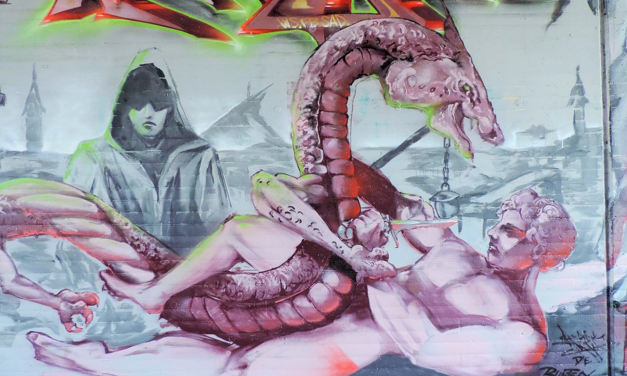 This great myth and legends concept wall was created on the southern bridge at the upper bridge. The artworks were made from left to right by IMOR, BASD, PLAS, RESEK, KULT, KÖBES and ZWIST