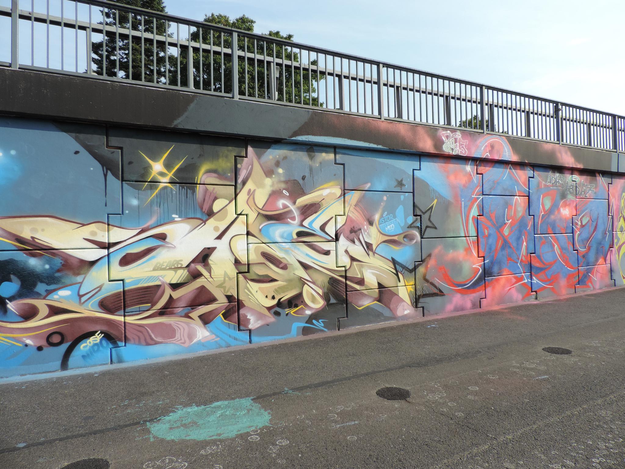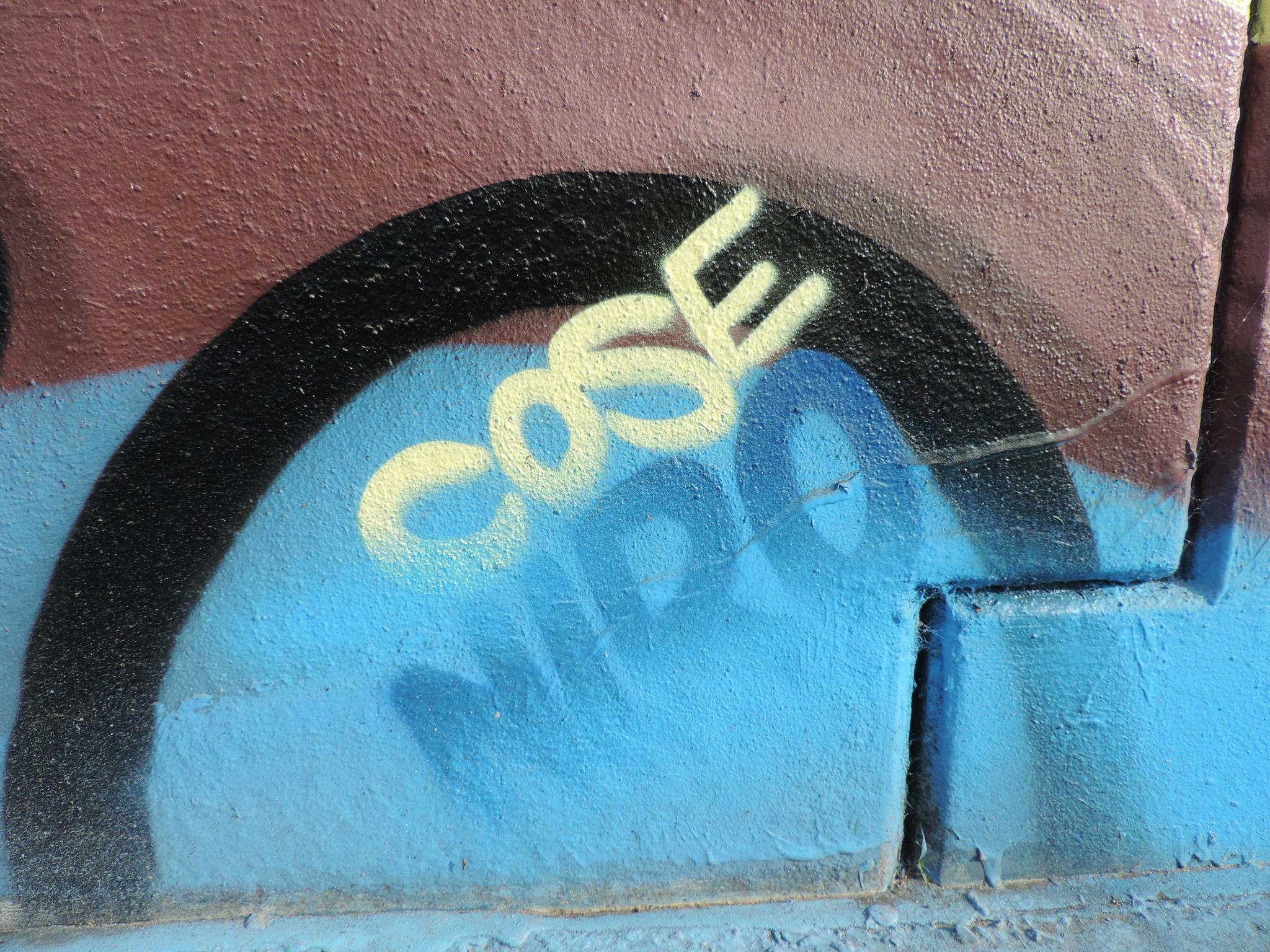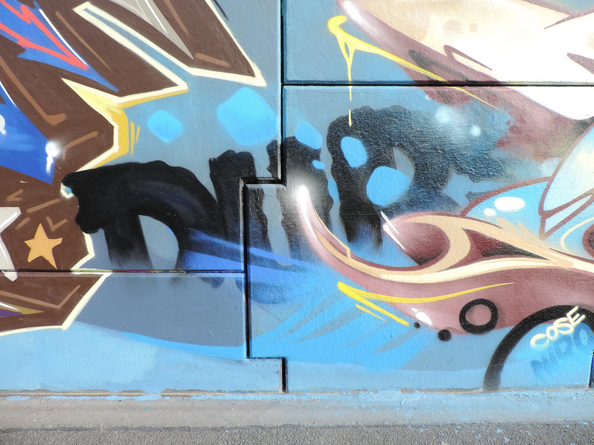 The graffiti on the left are from CREK and MODEM, and the graffiti on the right is from SAKO