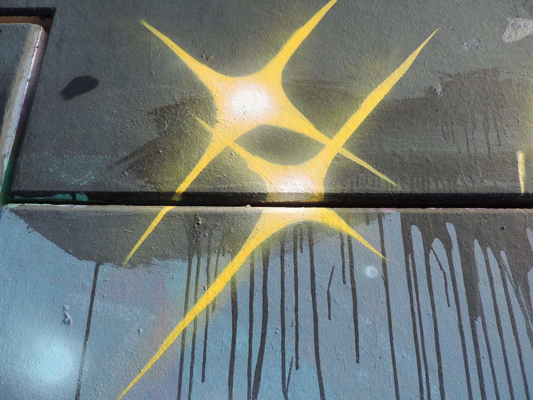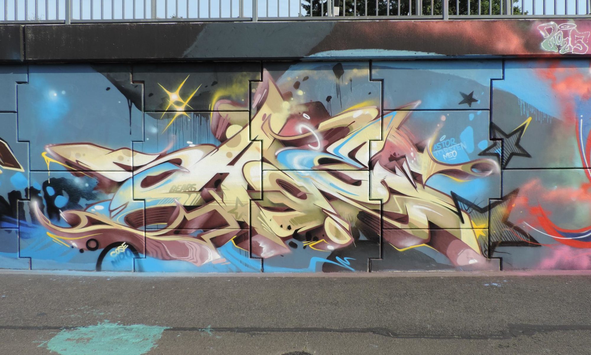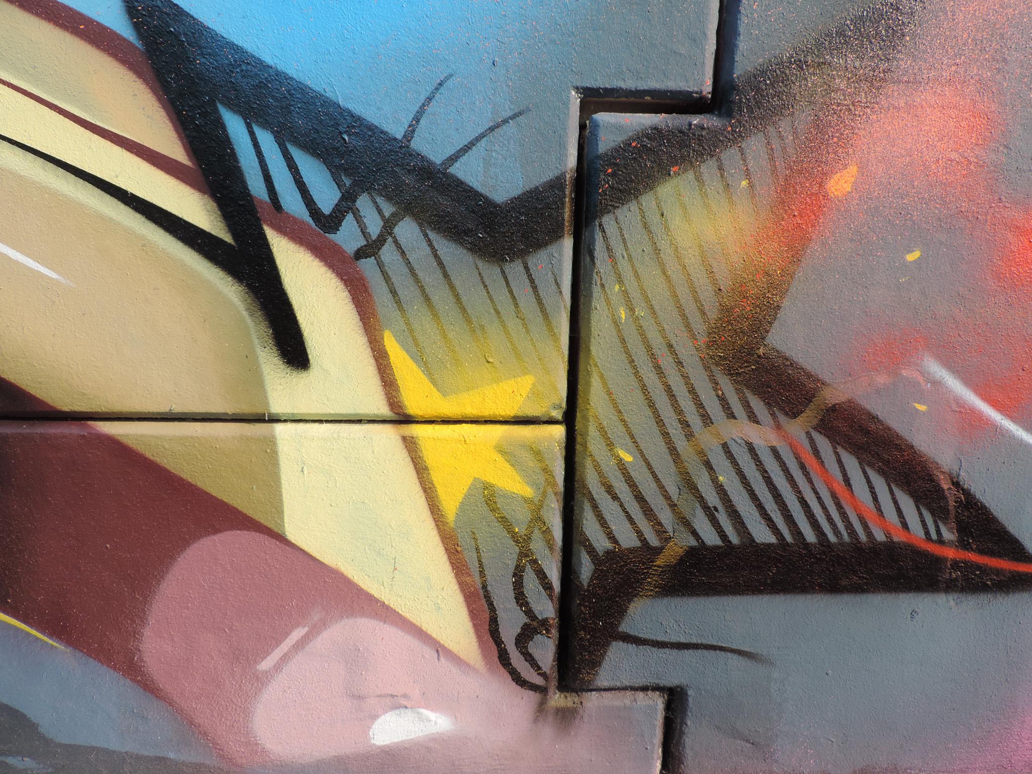 The graffiti on the left are from CREK and MODEM, and the graffiti on the right is from SAKO