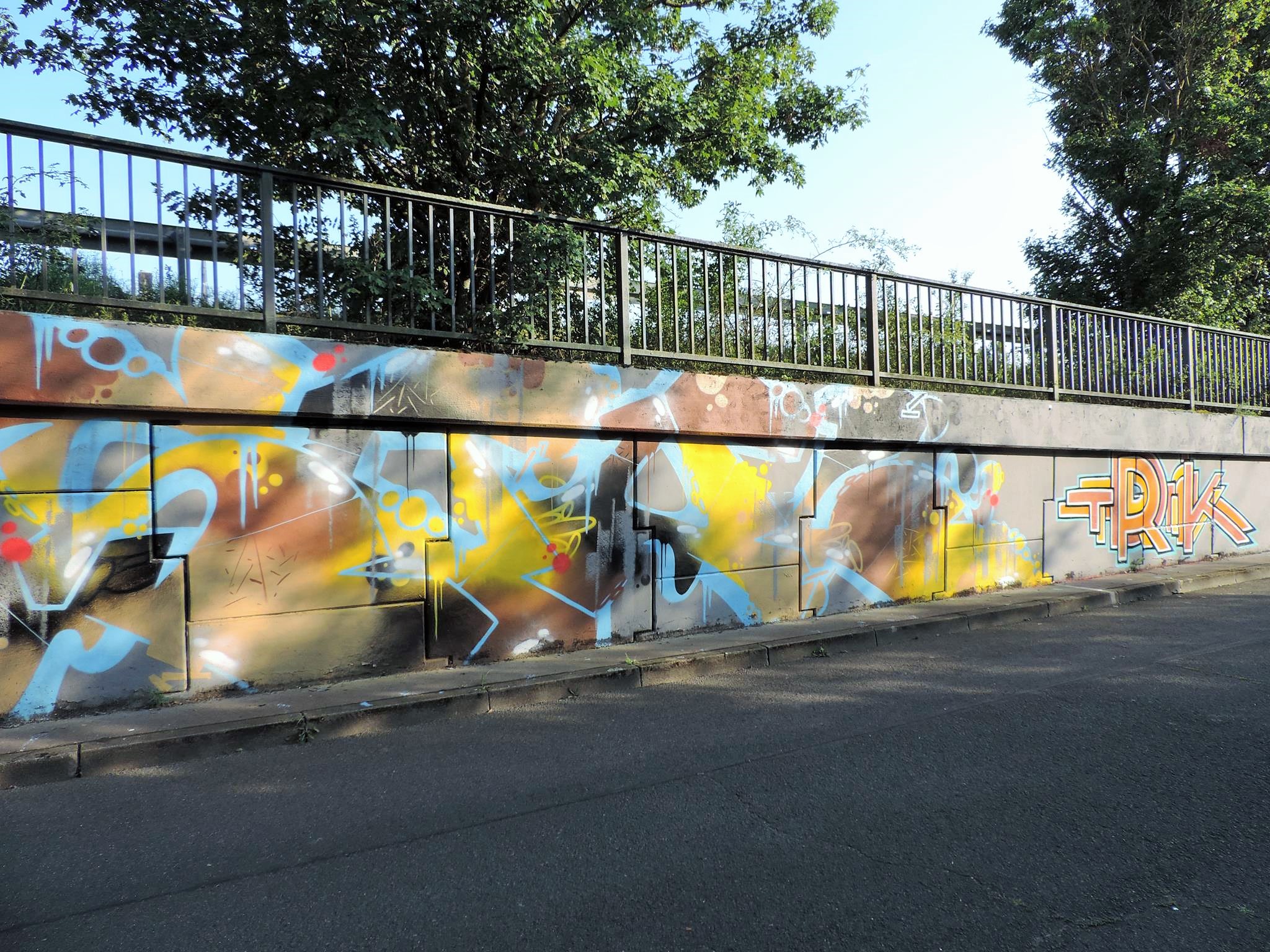 The graffiti on the left is from BARES and the graffiti on the right was made by TRIK 17