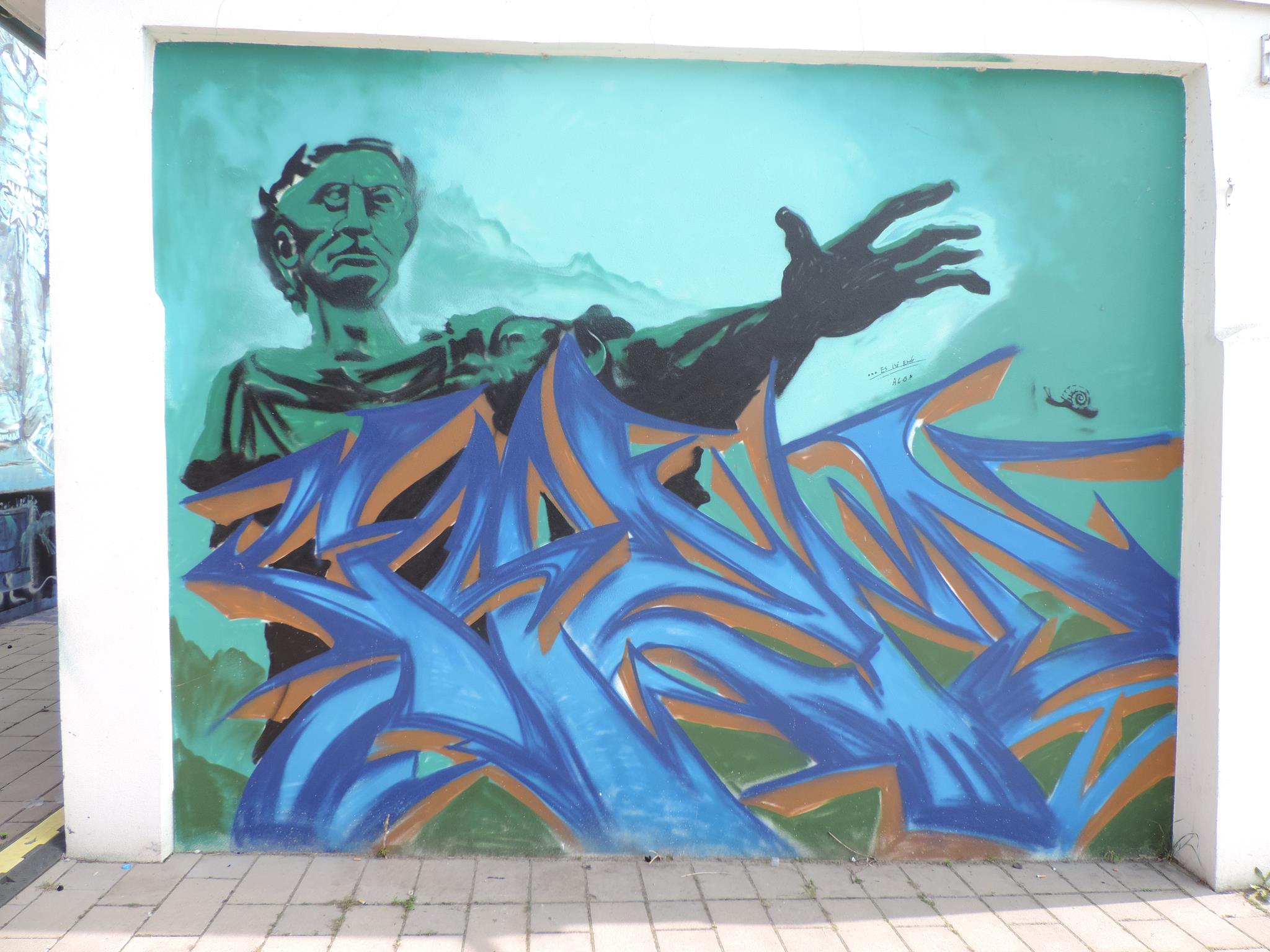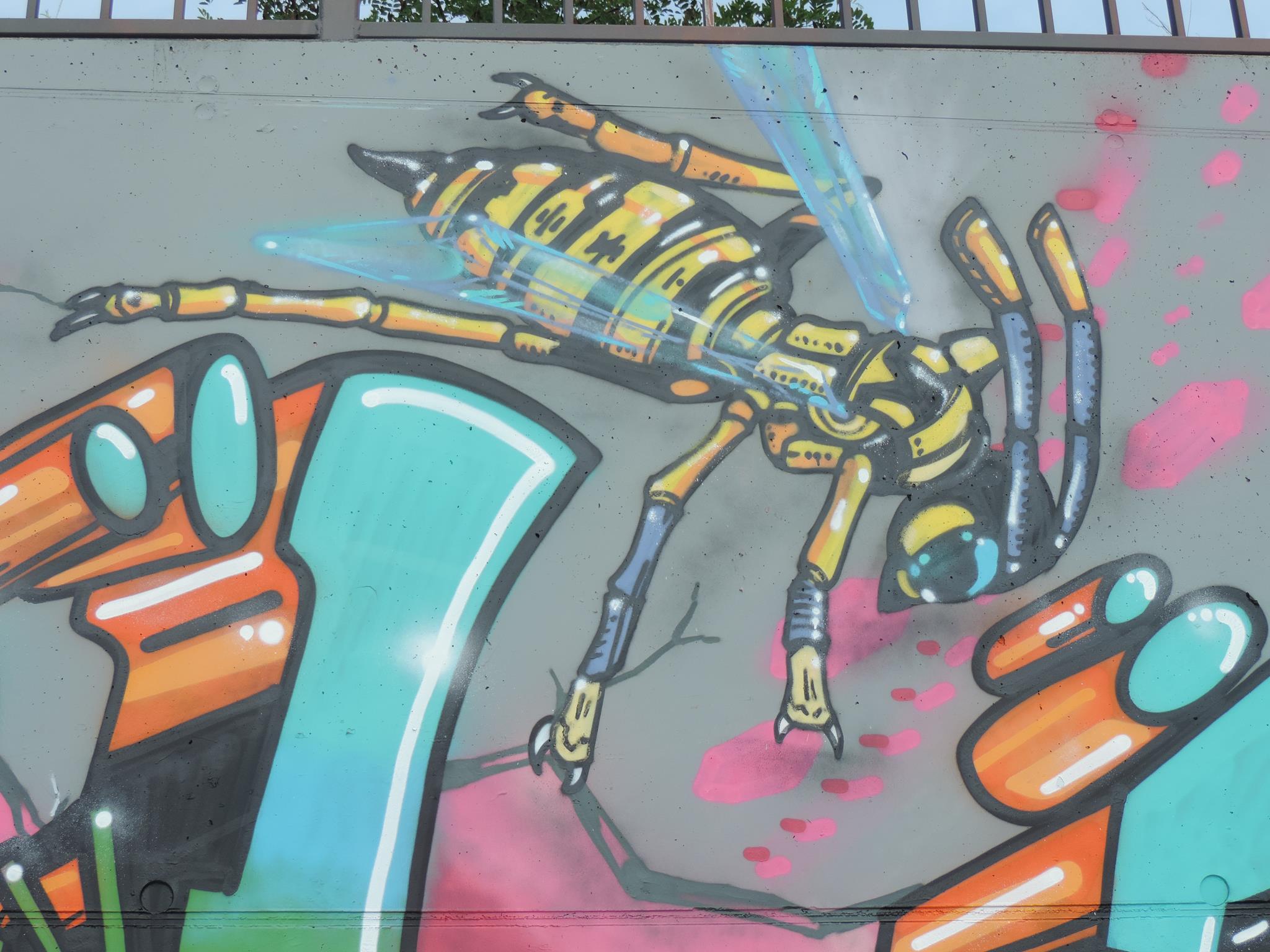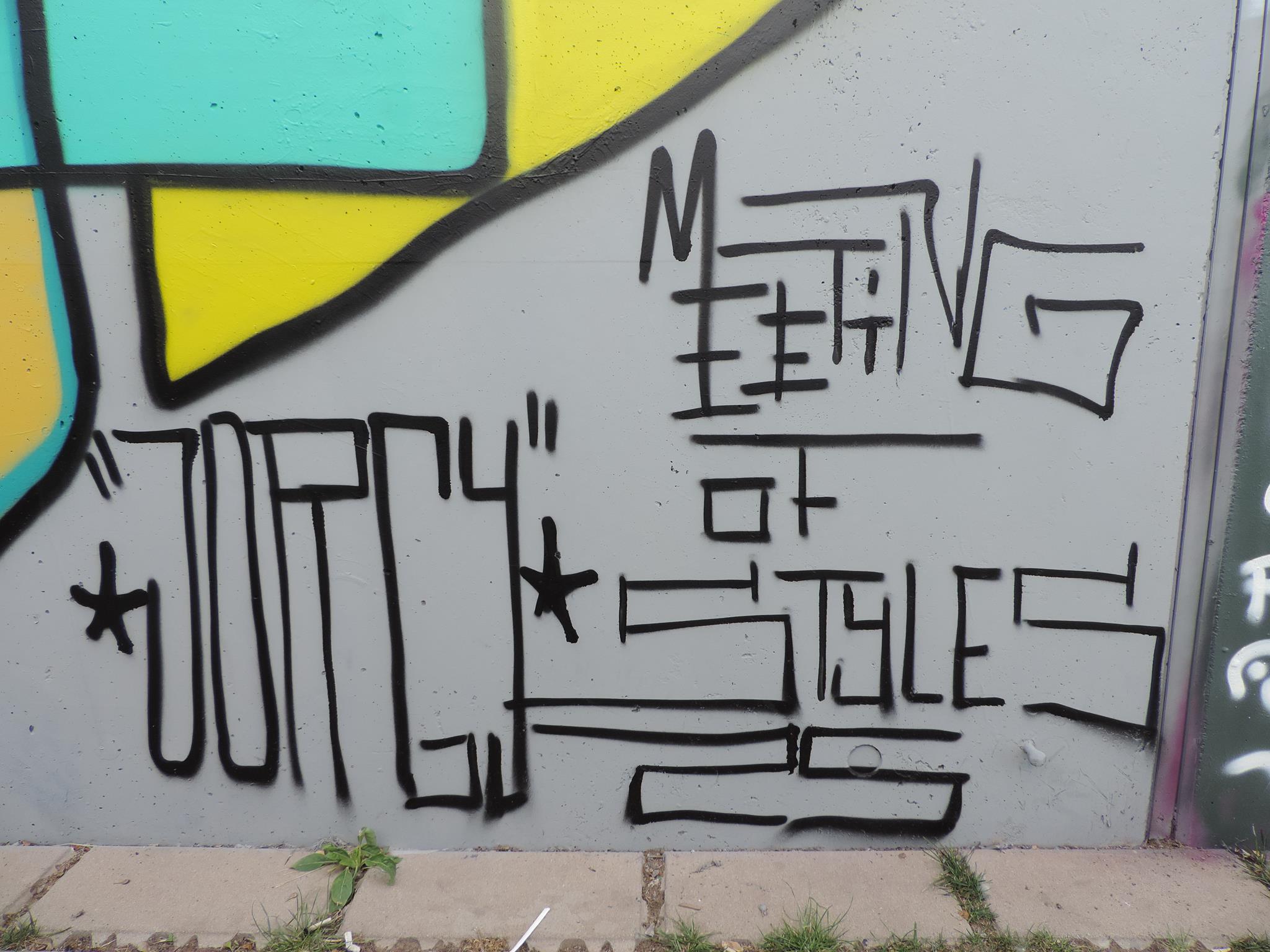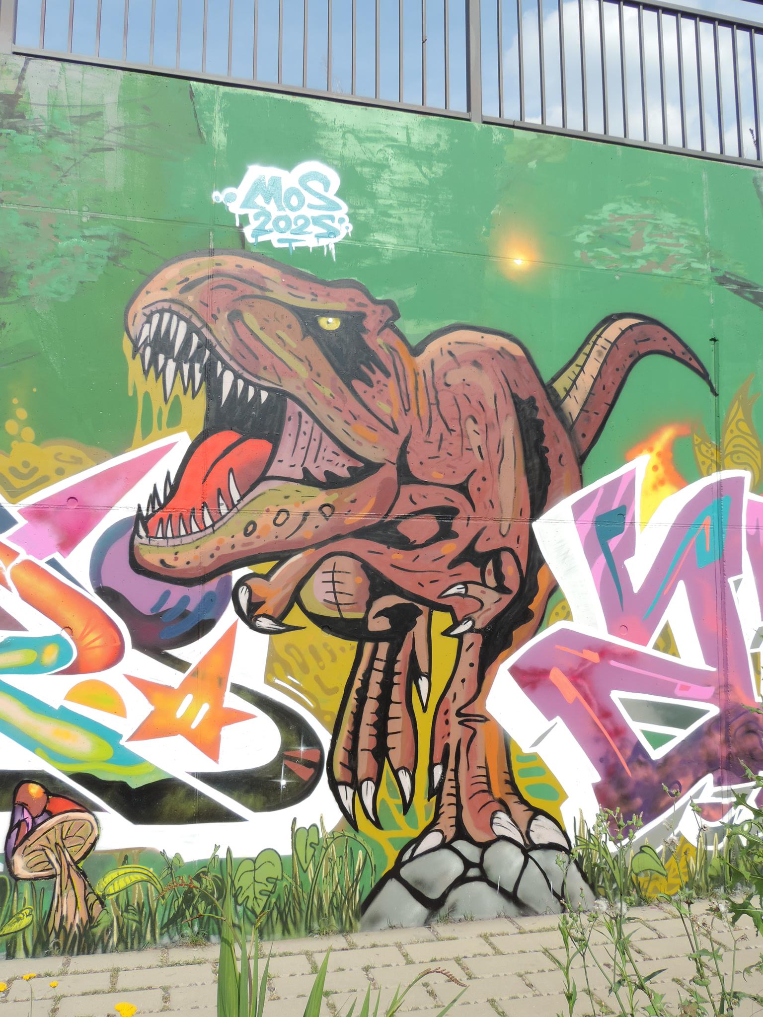 This page is about the wall along the west side railway embankment and at the skate park. It connects directly to the main spots and you can get there when you exit the tunnel towards the riverbank, just head to your right, which means northwest. For the festival, there are the masterpiece walls in the big tunnel, those are definitely awesome and on the highest facades. But the „longest“ wall is this spot here. Around the corner is one cool piece after the next. This area is a spray space since ages, but after it got redesigned by the city and fresh surfaces got installed, it is now also an official part of the MEETING OF STYLES. Awesome graffiti collaborations already got created here, as well great urban art besides the event. Check out the history, here are the photos only from this spot sorted chronologicaly.