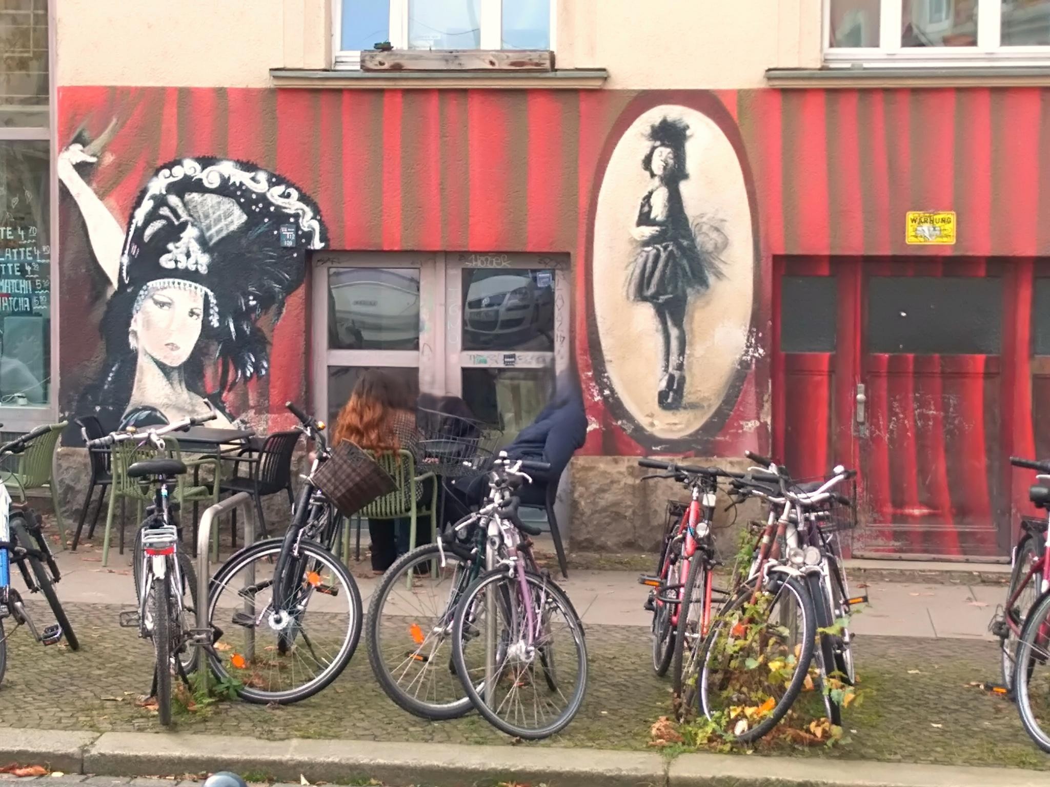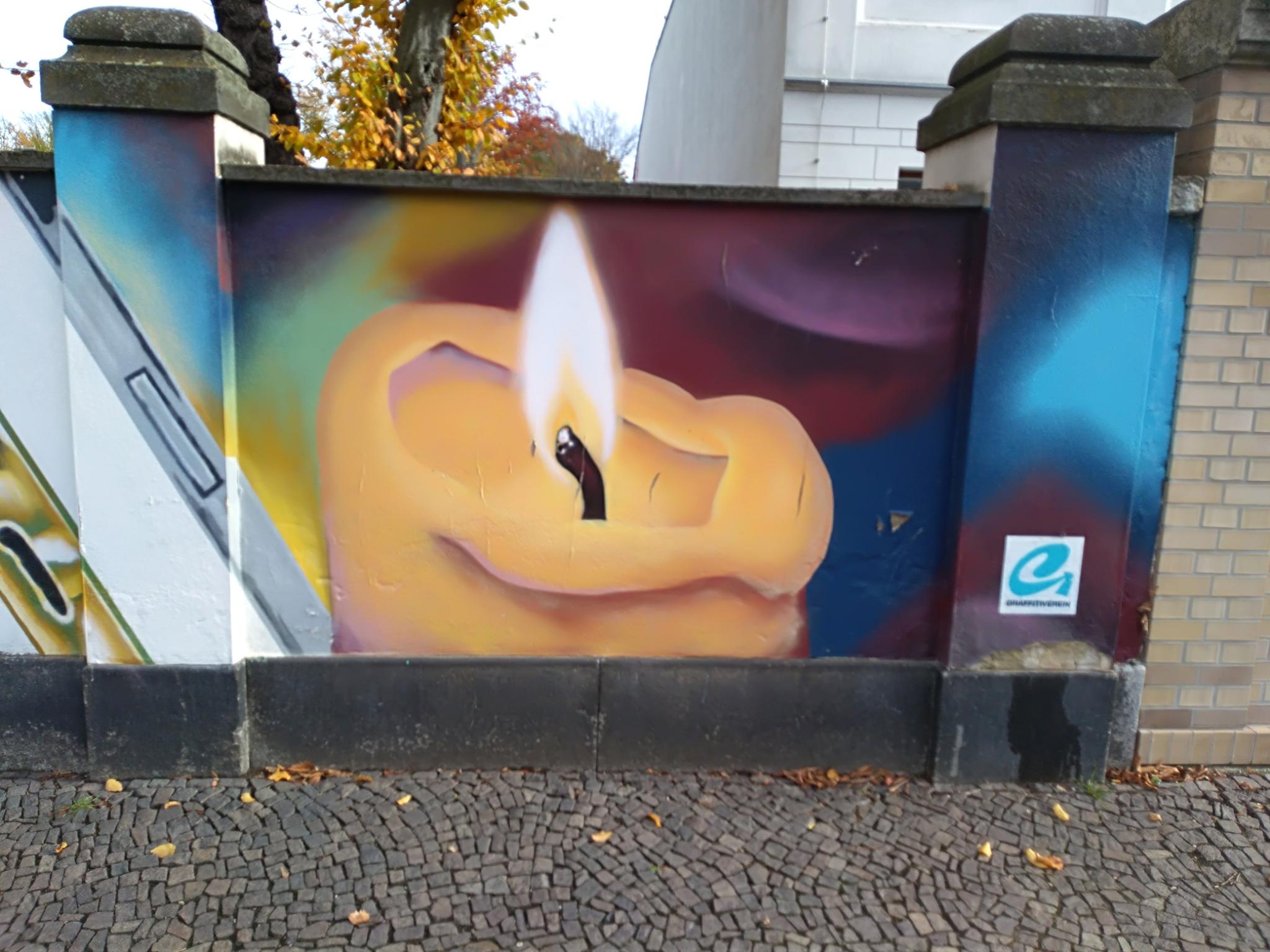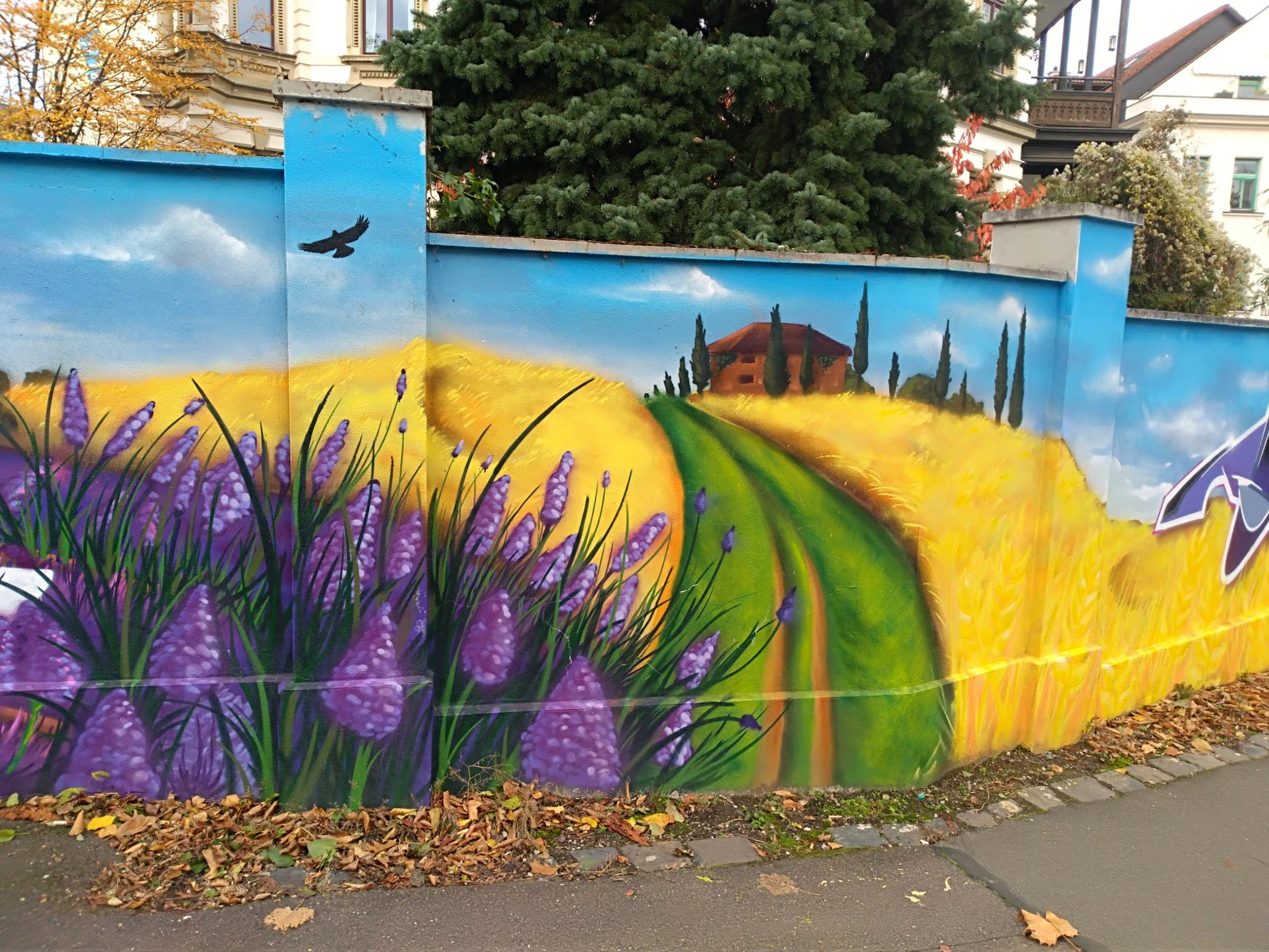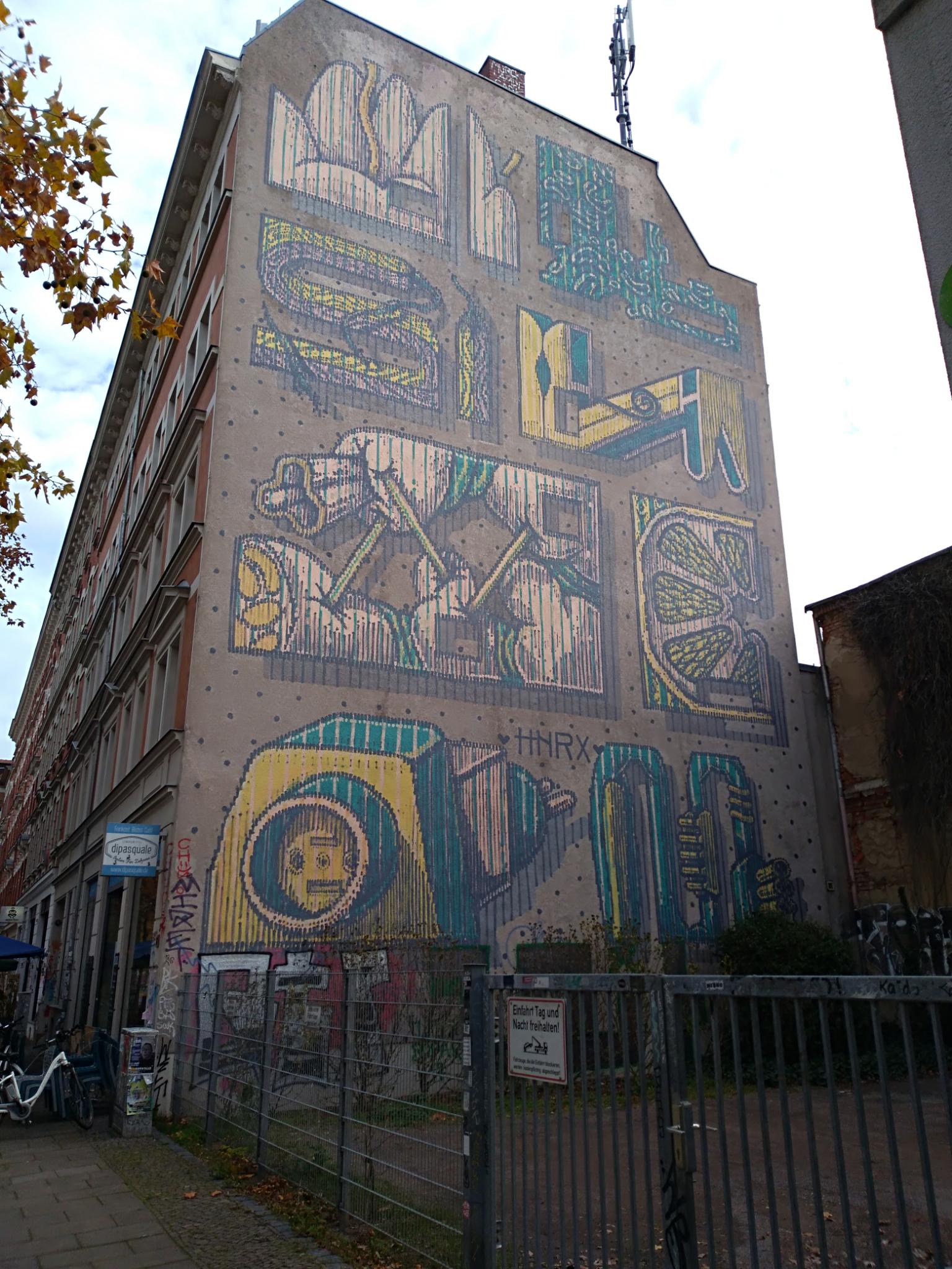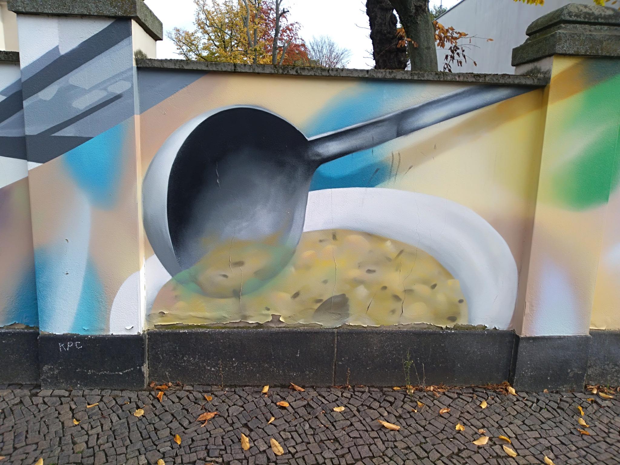 The approximately 3000 m² large and detailed mural was created by the artist MICHAEL FISCHER aka FISCHER ART in 2009 on a facade of several house walls in the street Brühl. It was made on the occasion of the 20th anniversary of the peaceful revolution in the GDR.