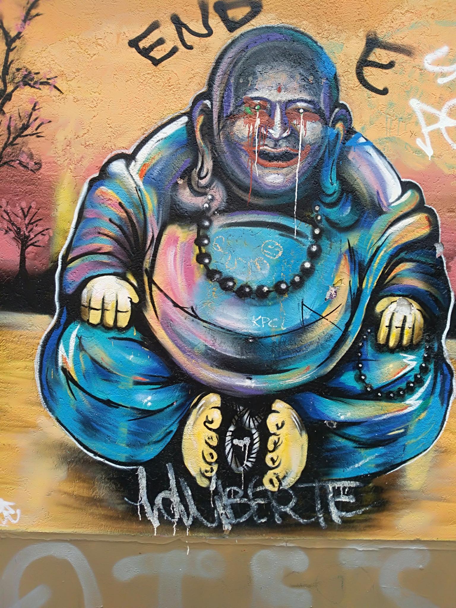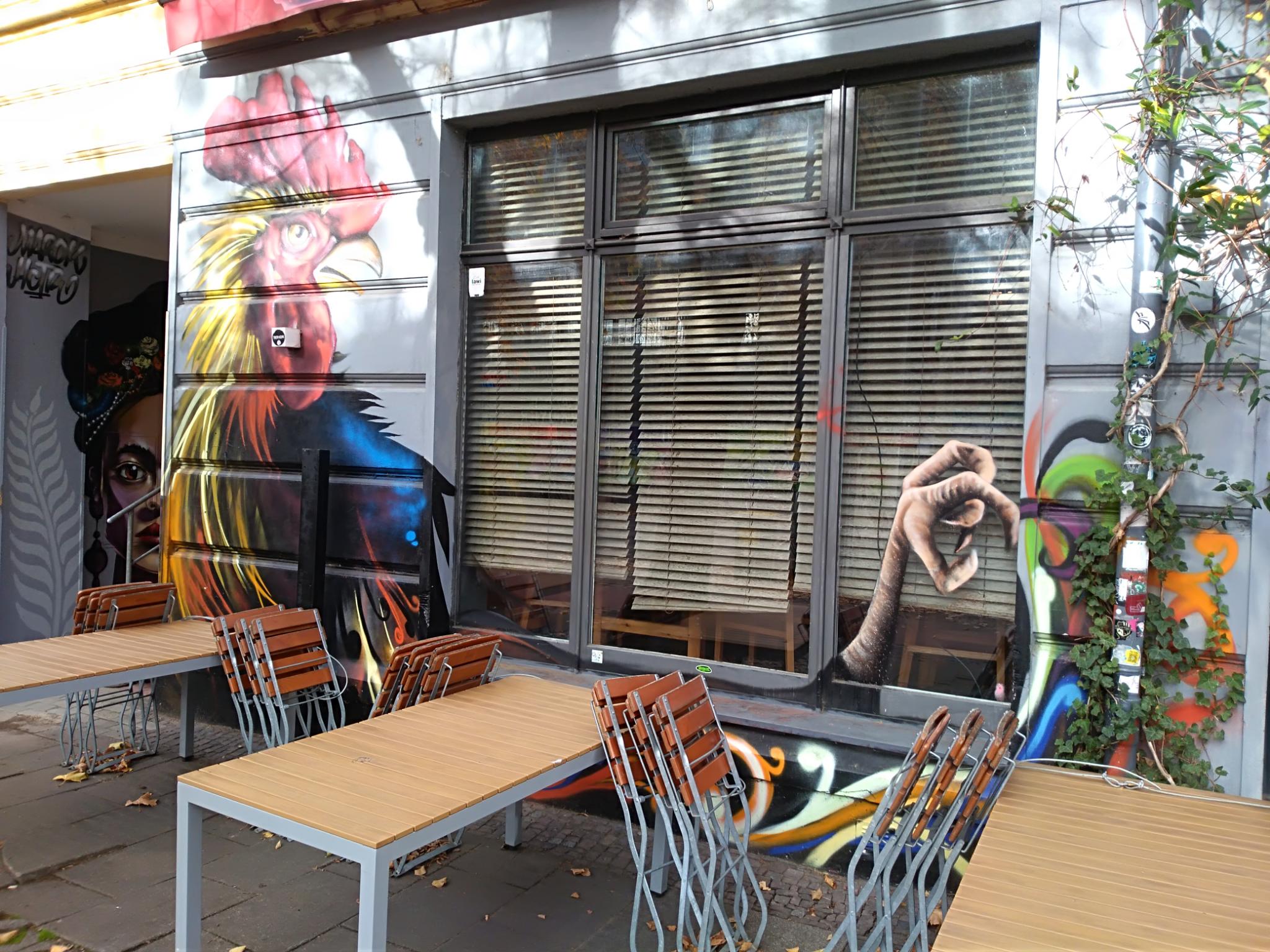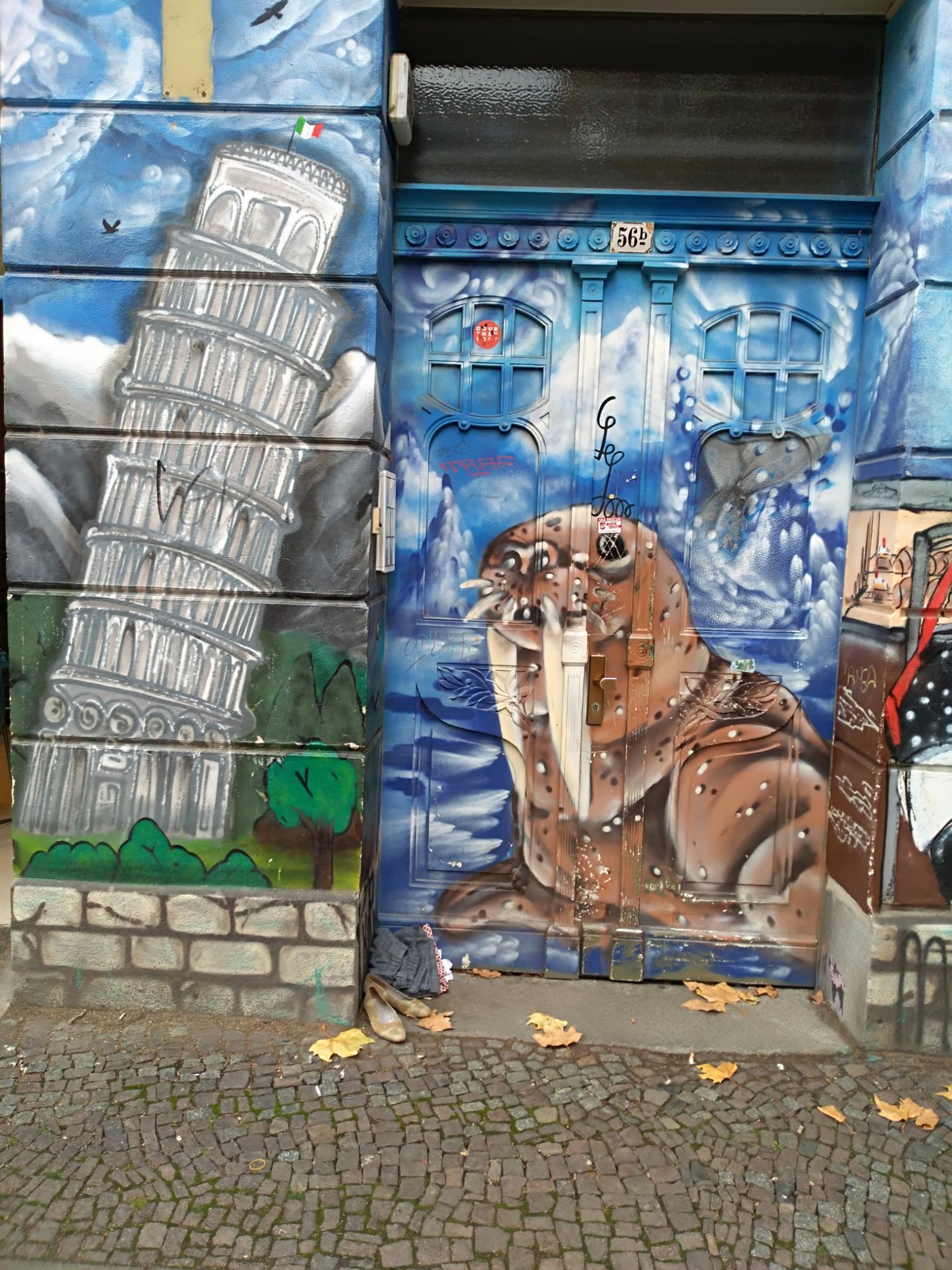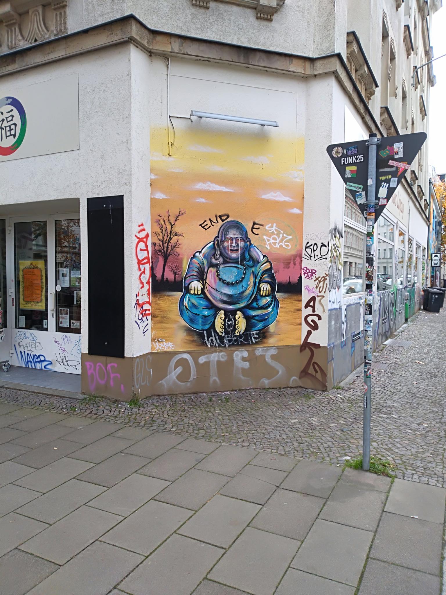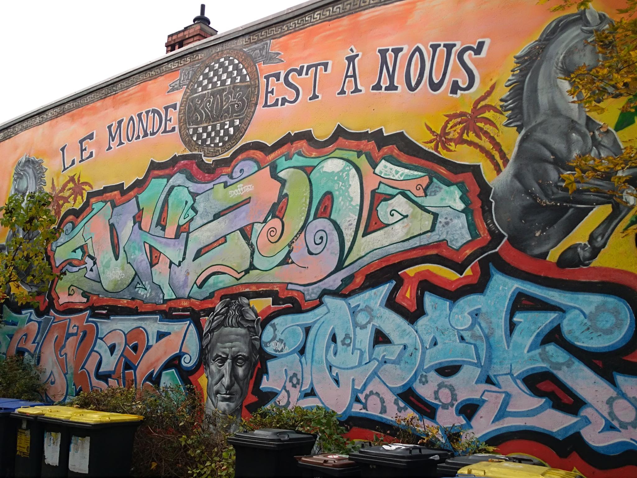 The approximately 3000 m² large and detailed mural was created by the artist MICHAEL FISCHER aka FISCHER ART in 2009 on a facade of several house walls in the street Brühl. It was made on the occasion of the 20th anniversary of the peaceful revolution in the GDR.