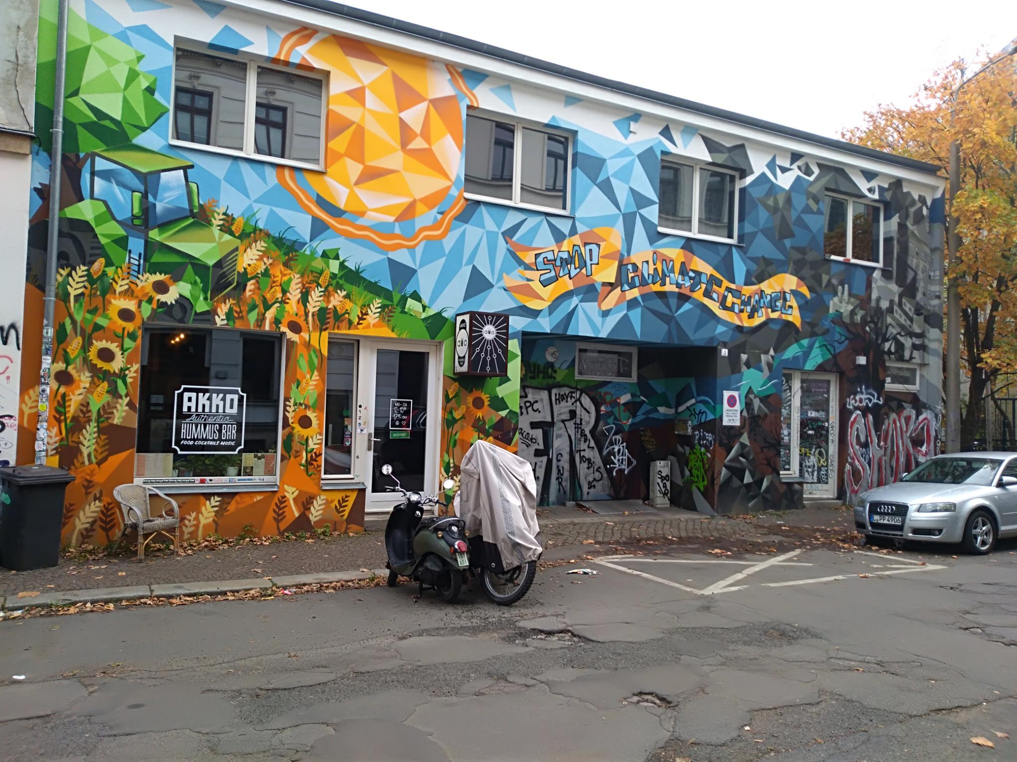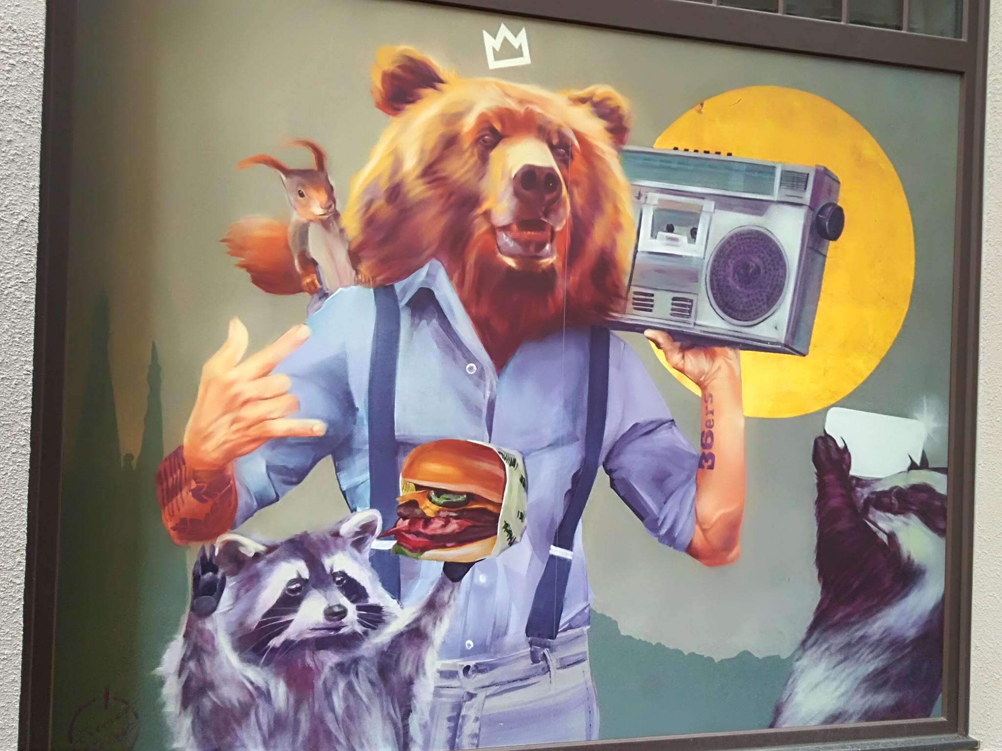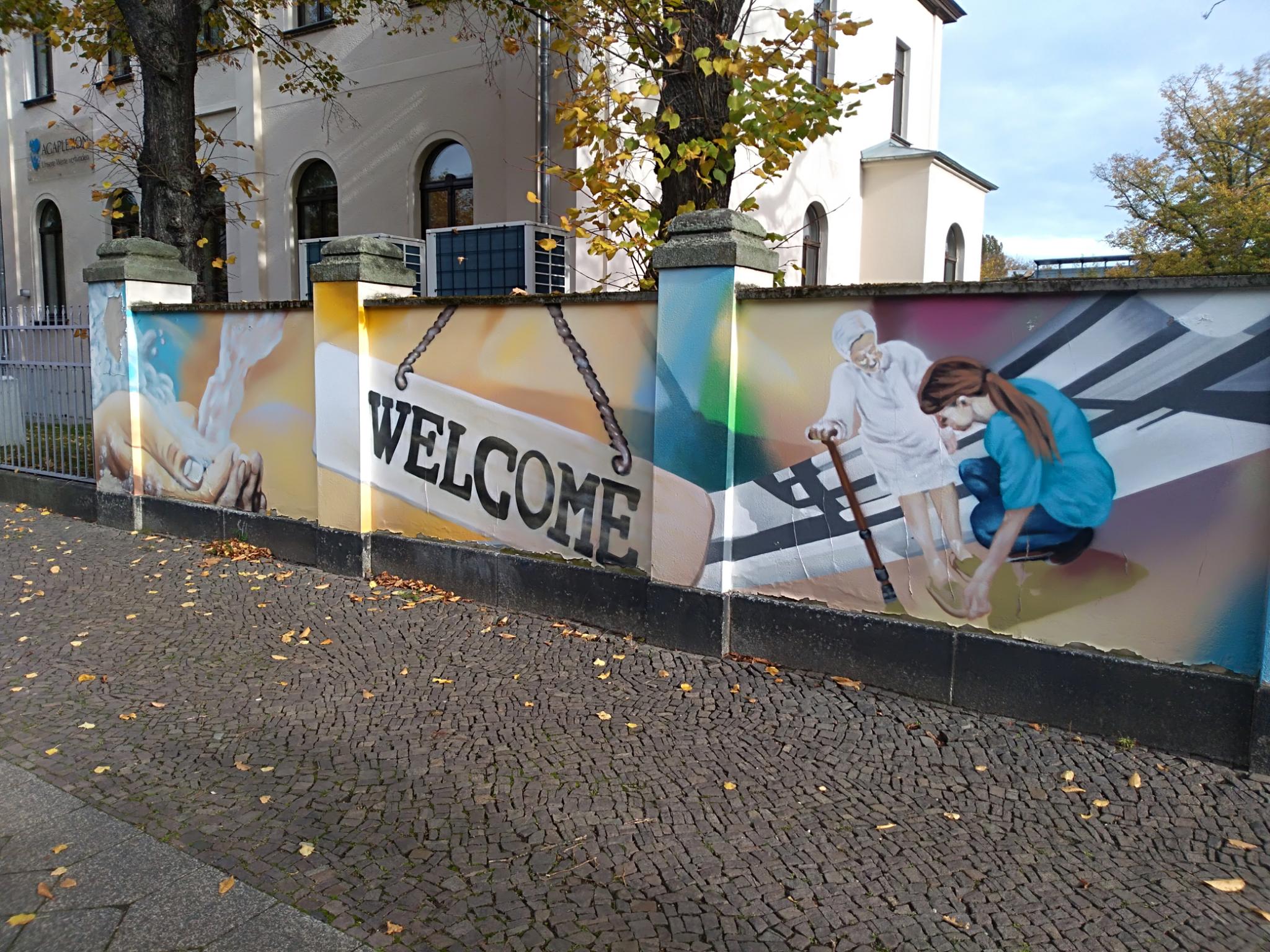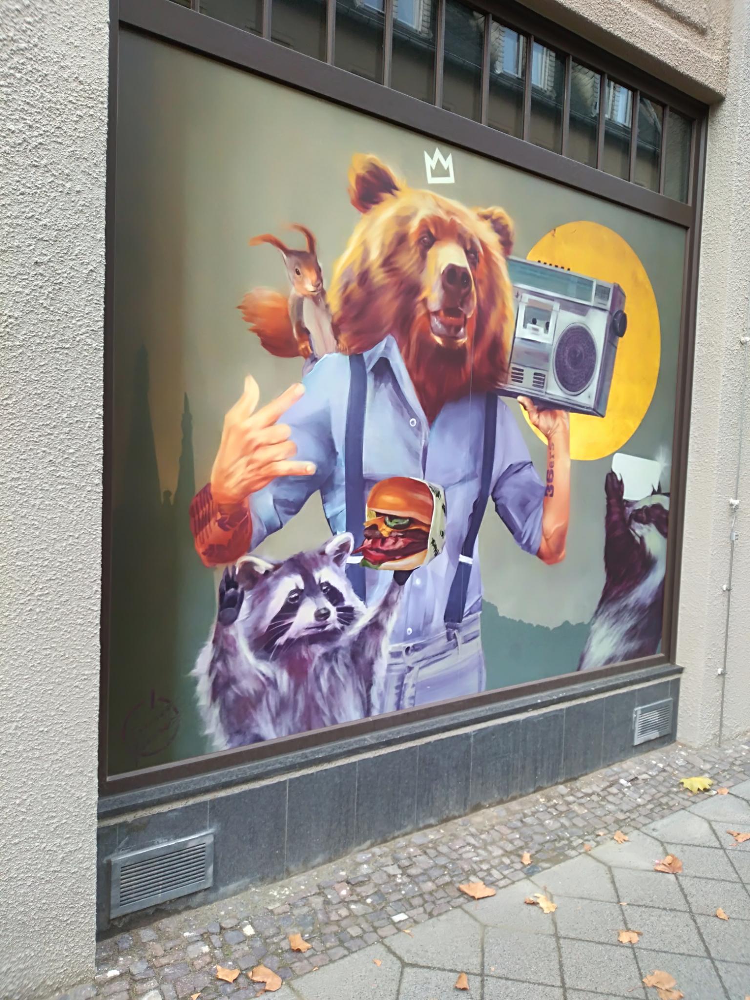 MICHAEL FISCHER ART made an apprenticeship as a bricklayer and painter, worked as a janitor and nurse in psychiatry, graduated from high school after the fall of the Wall and studied from 1992 to 1997 at the Academy of Visual Arts in Leipzig. The artist works with very strong colors on large surfaces, uses simple structures and draws partly comic-like figures, but also, for example, realistic portraits. He is known for his socially critical themes and his large-scale paintings of buildings. He forms his sculptures from iron, or also designs them from scrap metal such as old cars or even old tanks. Internationally, he has artistically designed well over 100 buildings and is constantly seeking new challenges. – Fischer Art