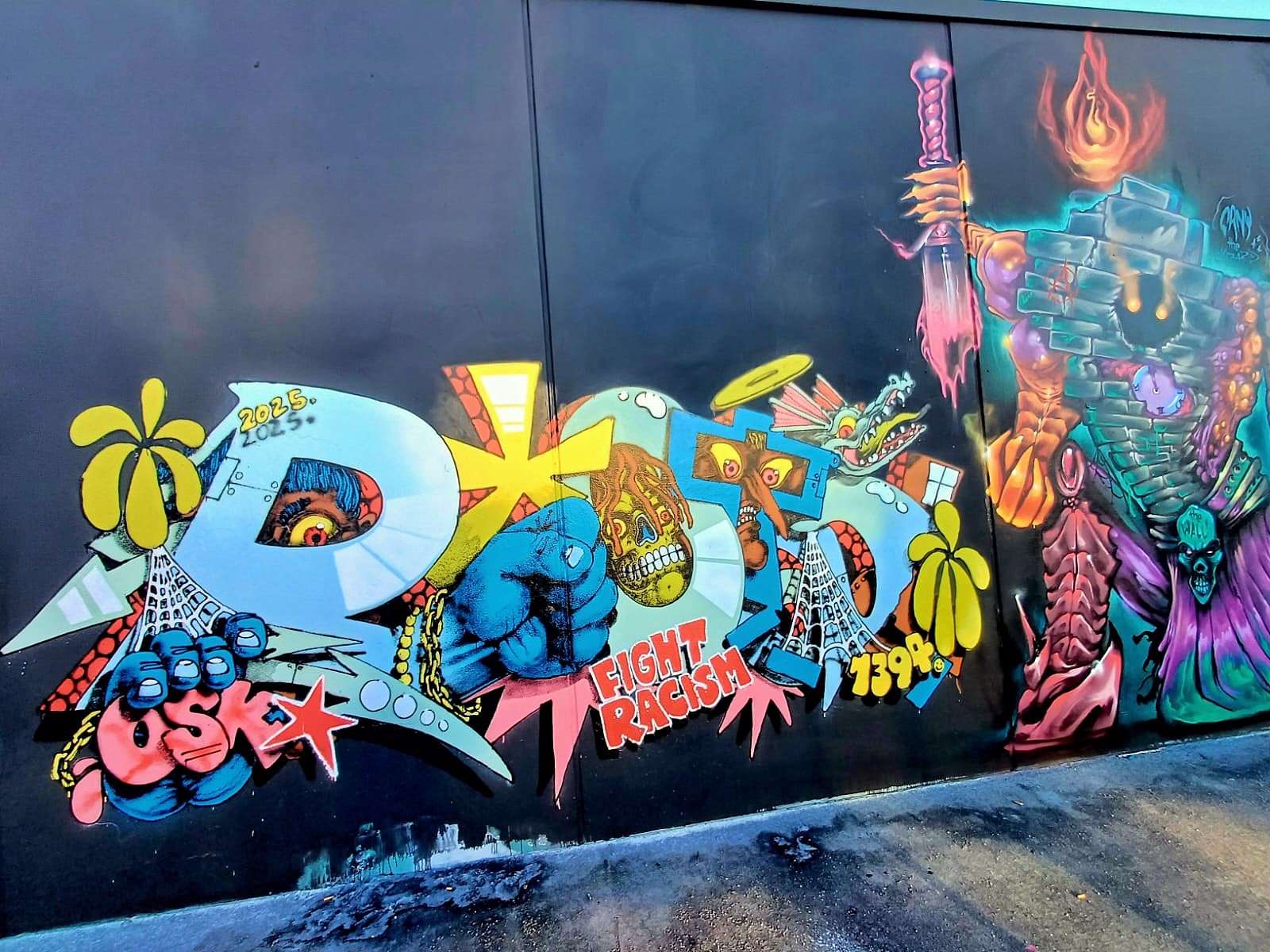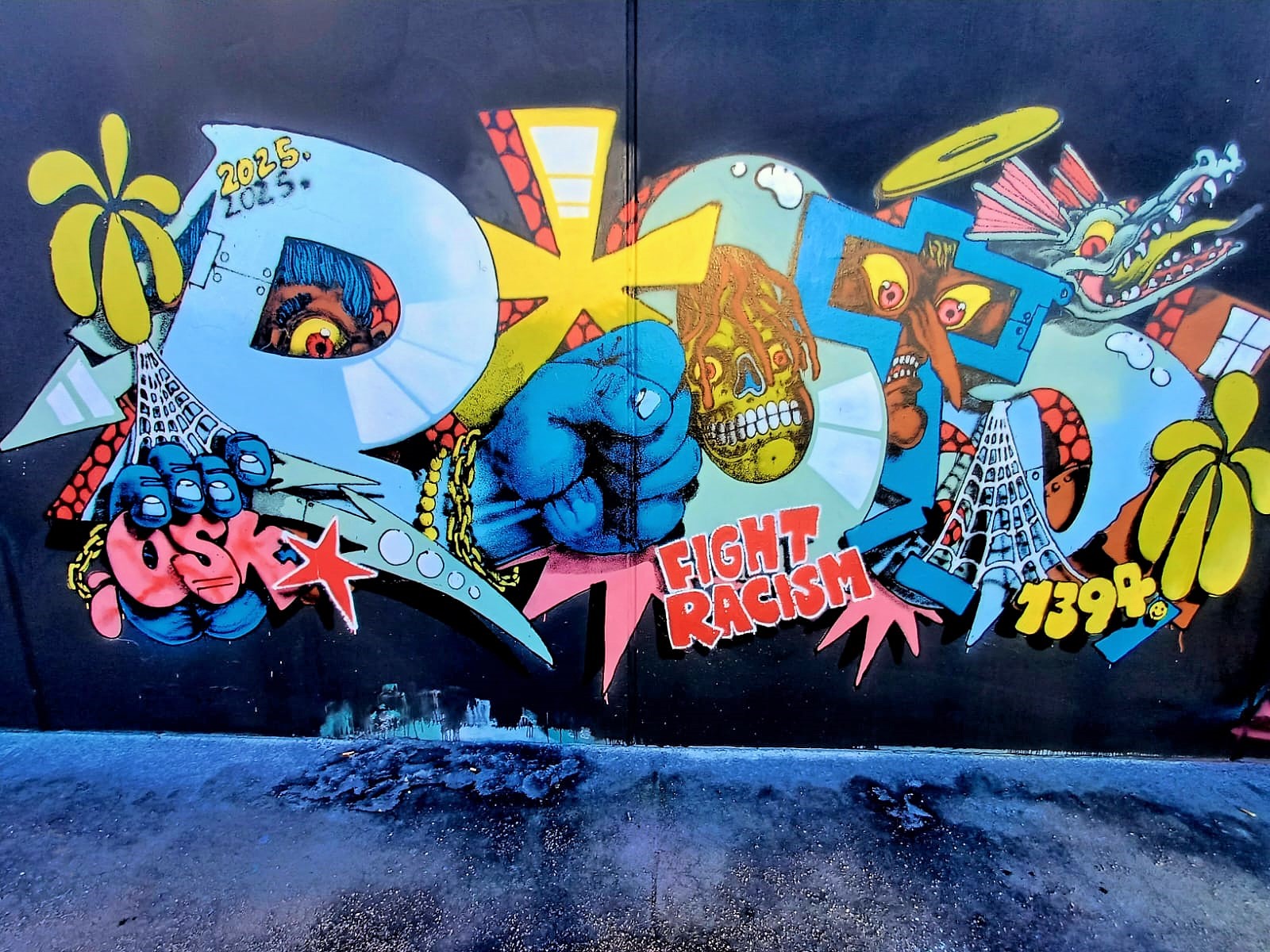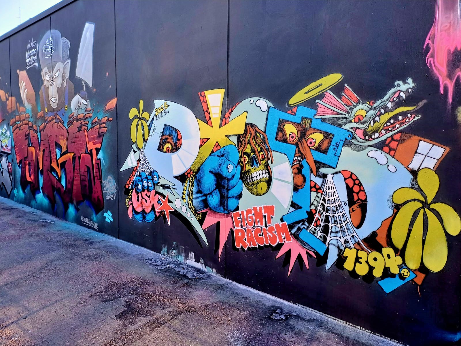 On February 23th in 2025, federal elections will be held in Germany at a time when the shift to the right is on the rise again in the country and around the world. The reason for the new elections was the failed vote of confidence by Chancellor Olaf Scholz on December 16th in 2024 after the break-up of the traffic light coalition. Due to these events the three artists TOMSTA, JAZZ and SHAW organized a great spray action on the concept wall of the 21ER GALLERY the days before to make a statement against right-wing attitudes, discrimination and racism. 20 artists took part in this creative campaign and painted fantastic works under the motto „THE BRANDMAUER“ to show that our society is colorful and open. Below is a collection of the pieces, clicking on the name in the title will take you to the artist’s subpage with many more photos from this or previous sessions. THE BRANDMAUER is an attitude and represents graffiti against the shift to the right. There are also many other works made by different artists from all over the republic on the Instagram channel, meanwhile from more than 21 cities with more than 121 writers. A „Brandmauer“, or in English „Firewall“, is a wall whose special design is intended to prevent fire and smoke from spreading from one building to another. It is also used as a synonym to contain right-wing influences. If you are from Germany, go vote on February 23th 2025!