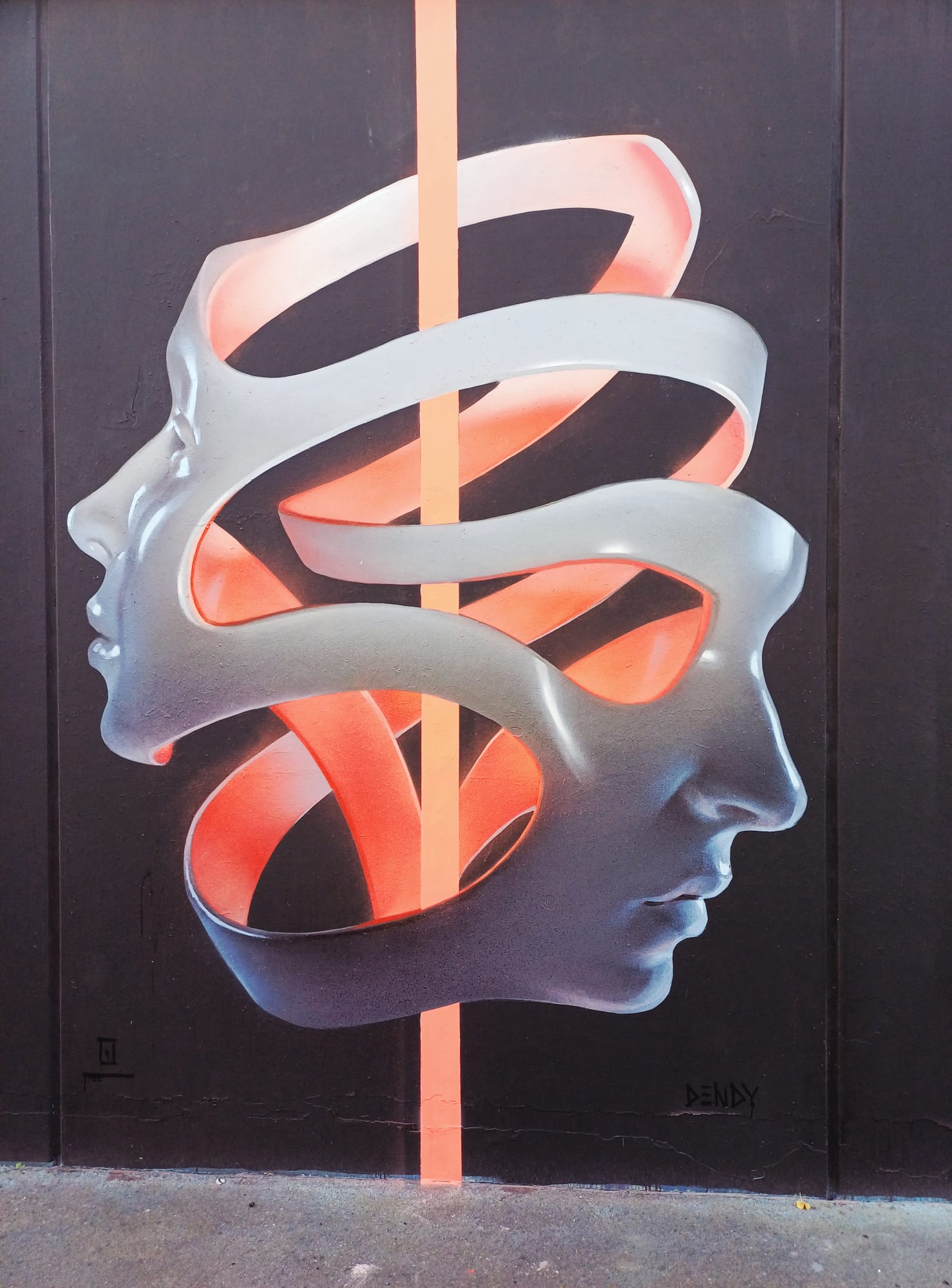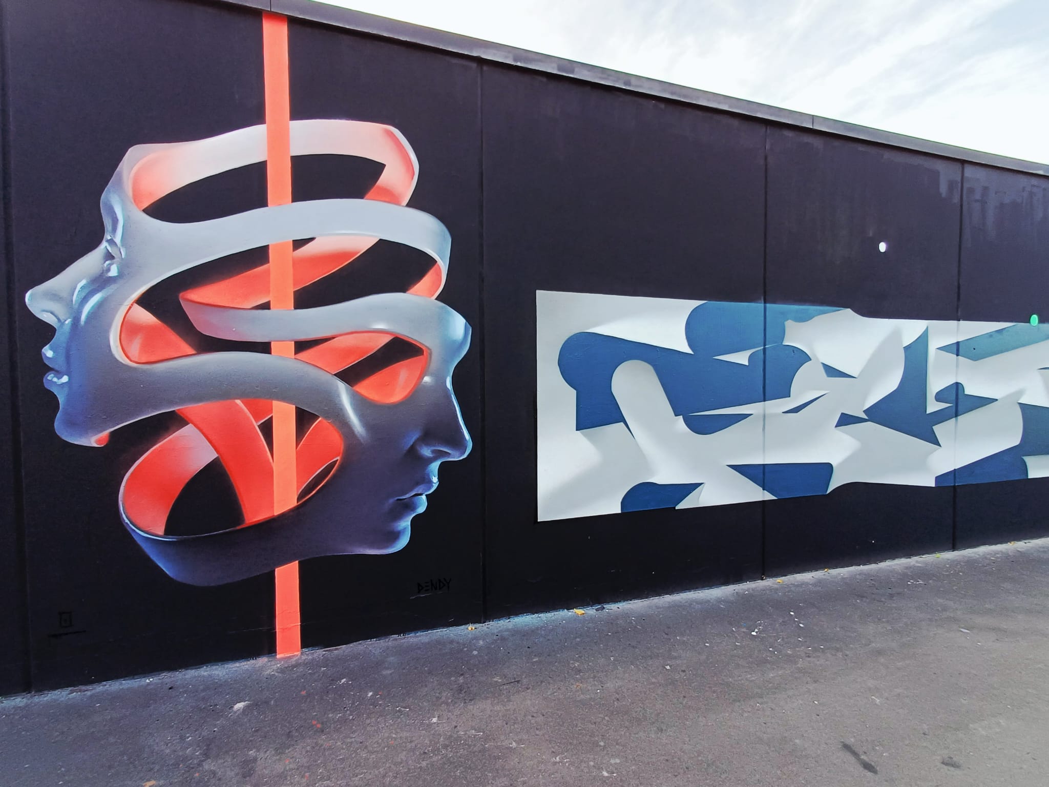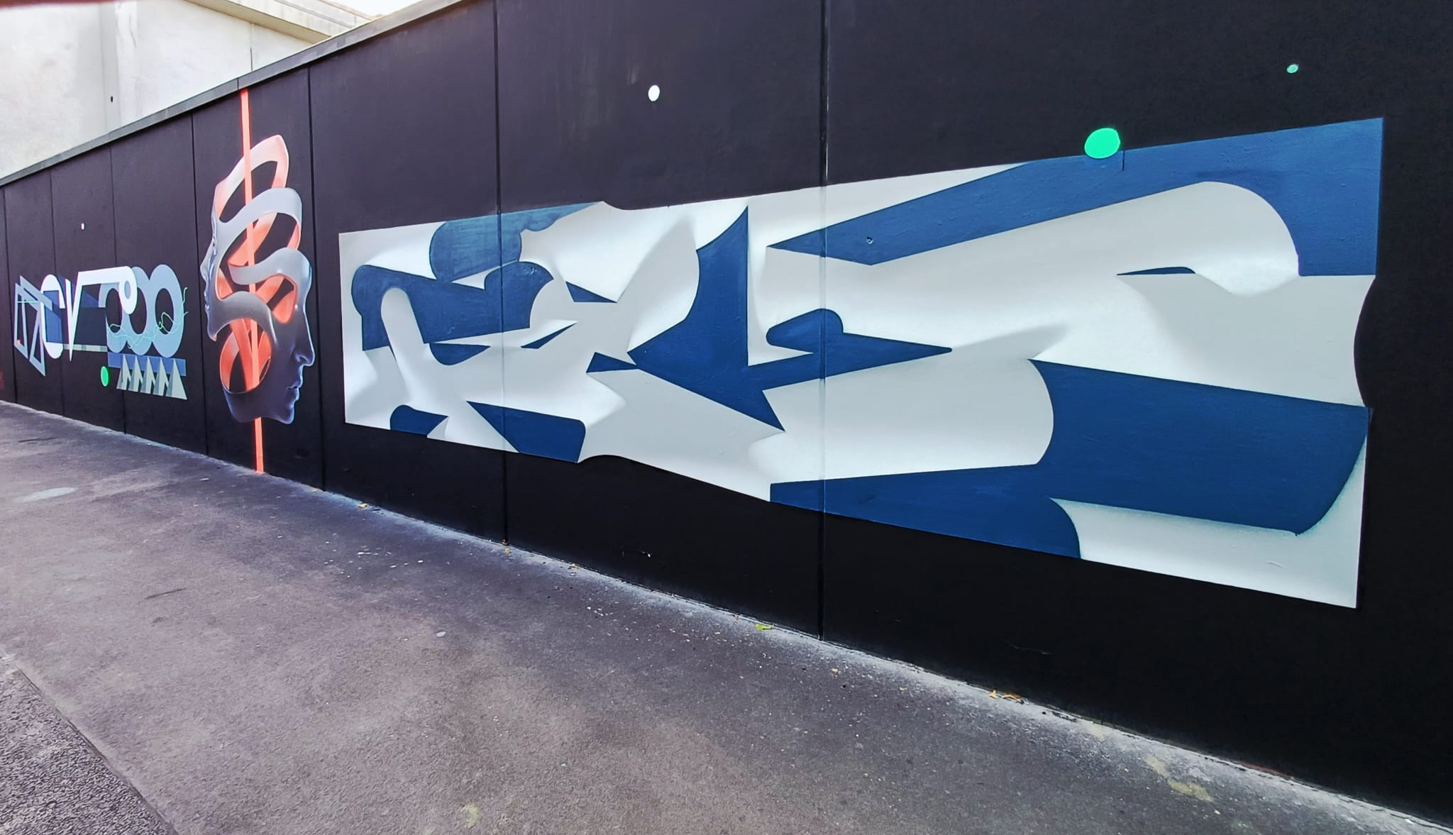The graffiti on the left is from 21 GALLERY and the artworks on the right were made by WAVE NINE, CORS ONE and KASER