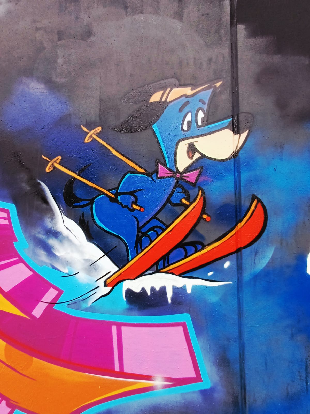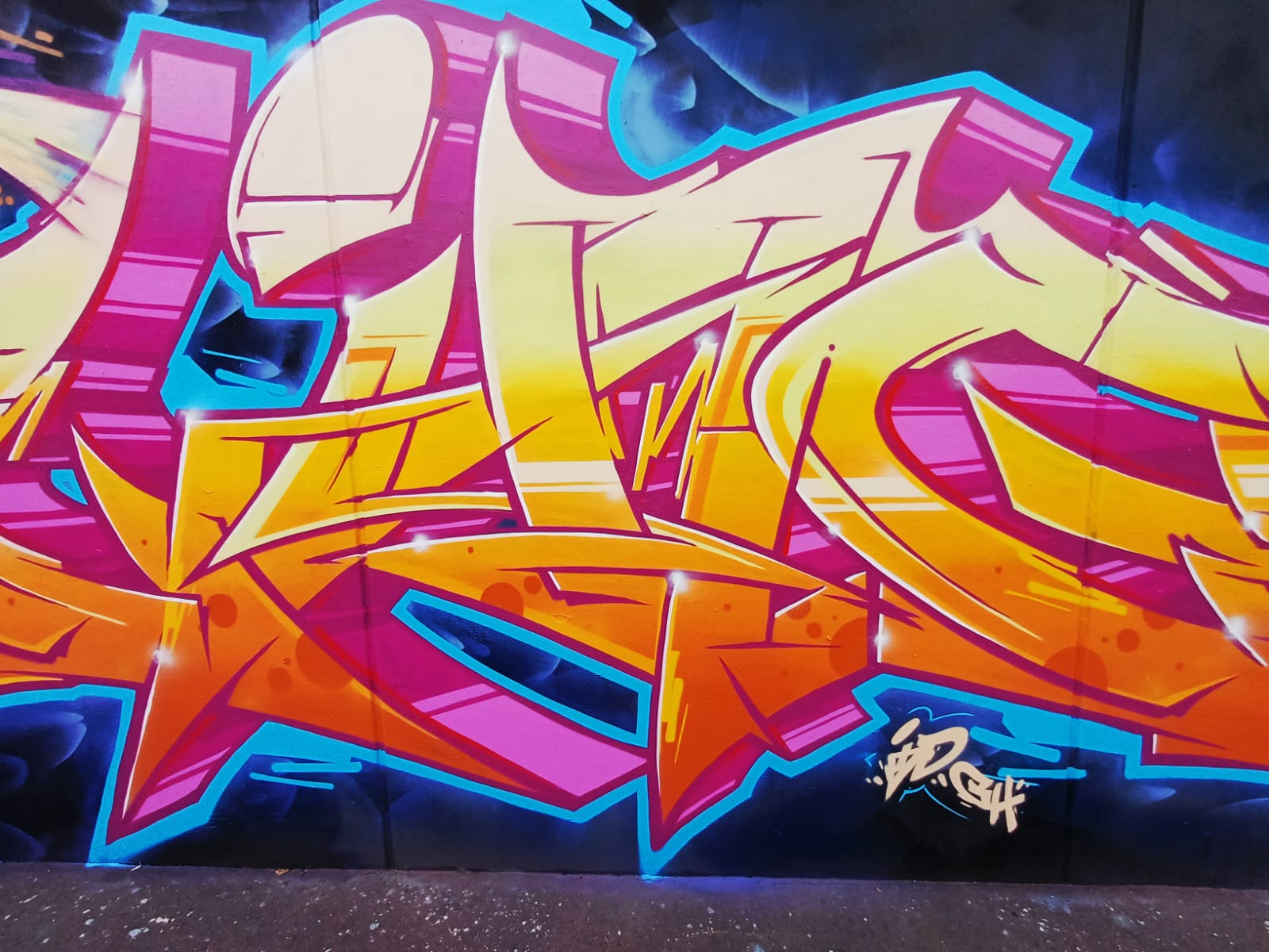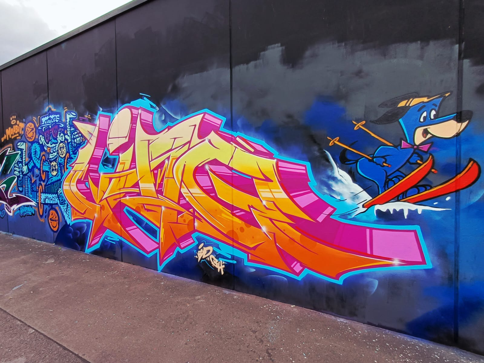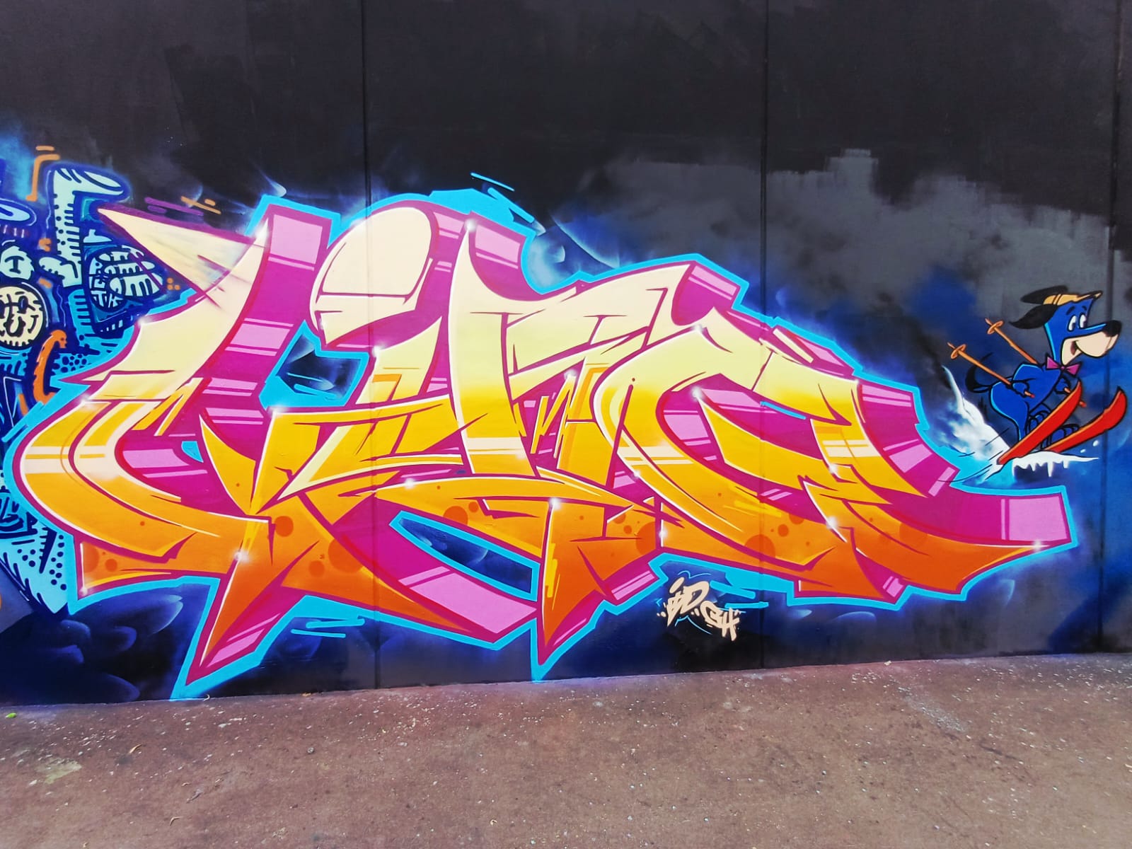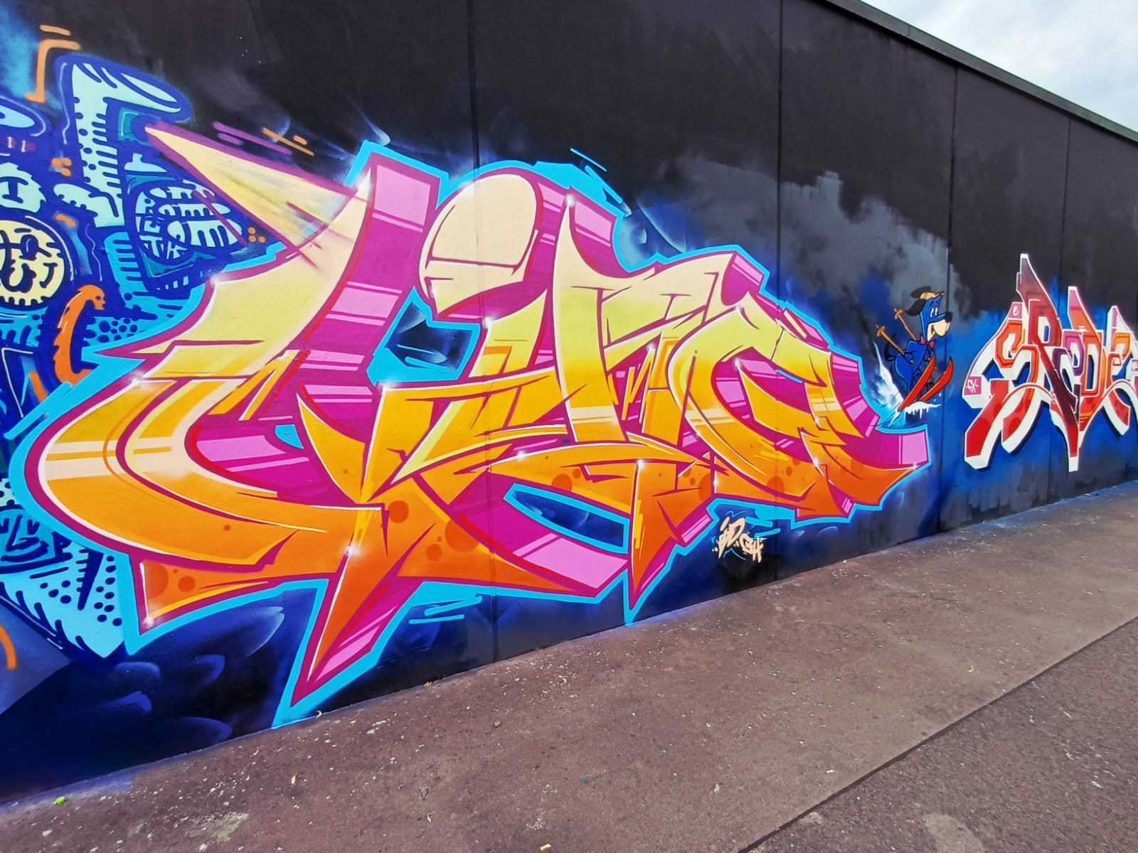 The artwork on the left is from HÜLPMAN and the graffiti on the right was made by SPADE 53