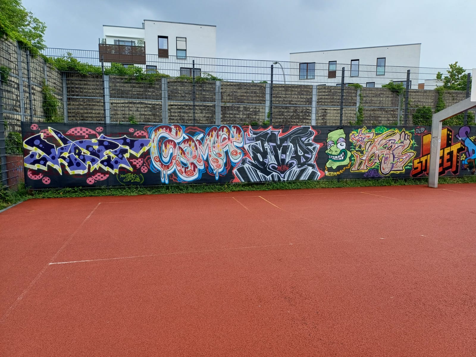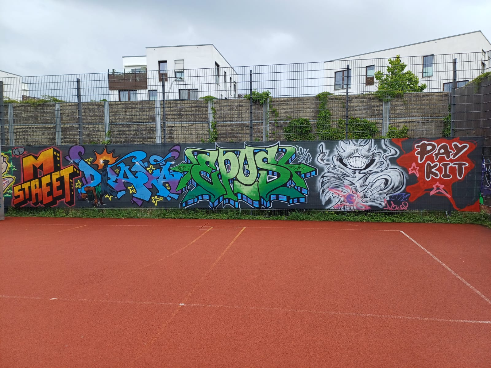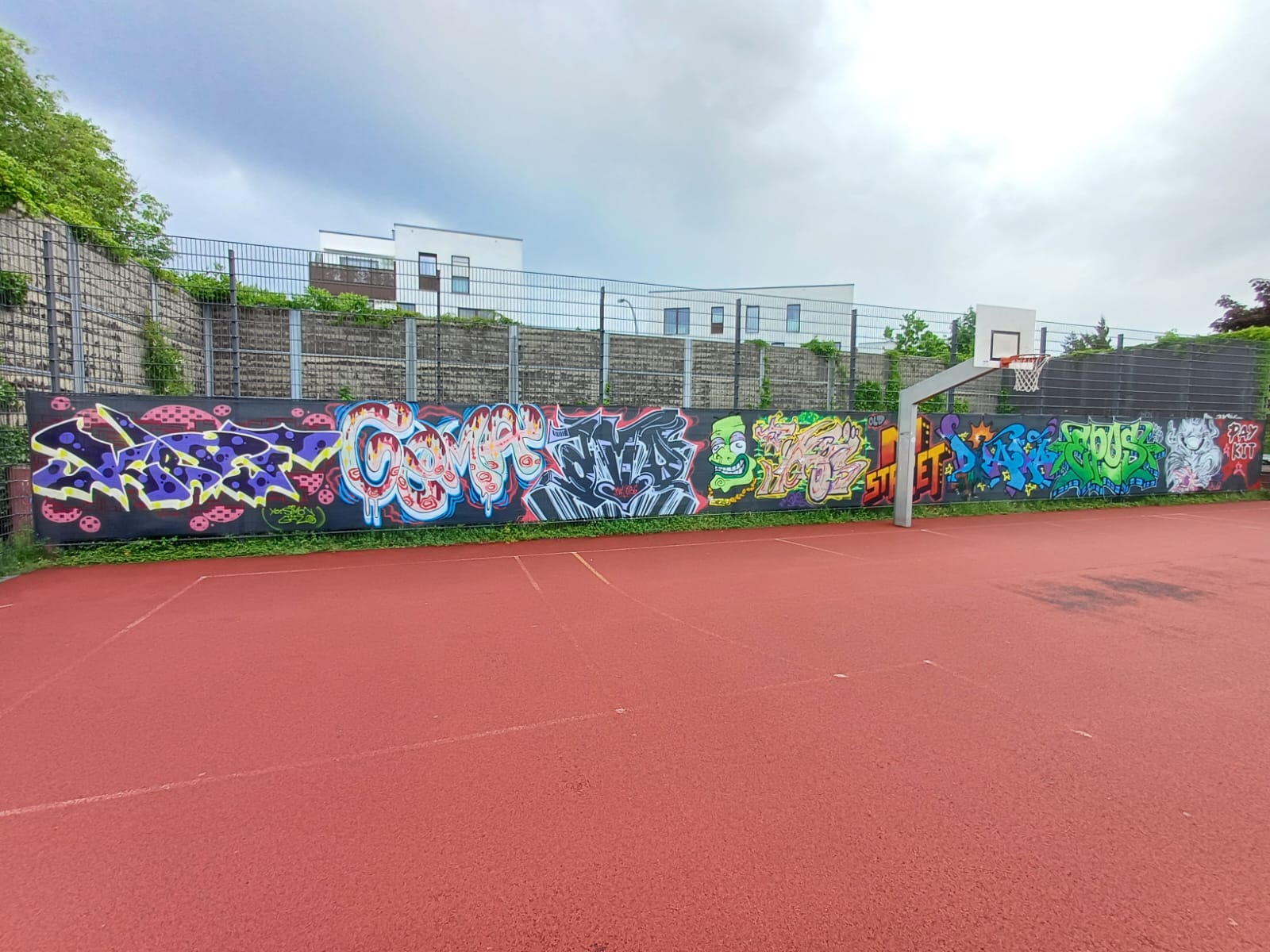 To mark the opening of the new skate park on 21st May in 2025, the adjacent wall was painted by young graffiti artists from the youth centers M-STREET, DIE SCHOTTE and JEVER NEUN under the direction of STREETLIFE 2.0. The project was supported by MOBILES WOHNZIMMER, JUGENDAKTIONSMOBIL, GANGWAY and BRÜCKEMUSEUM.