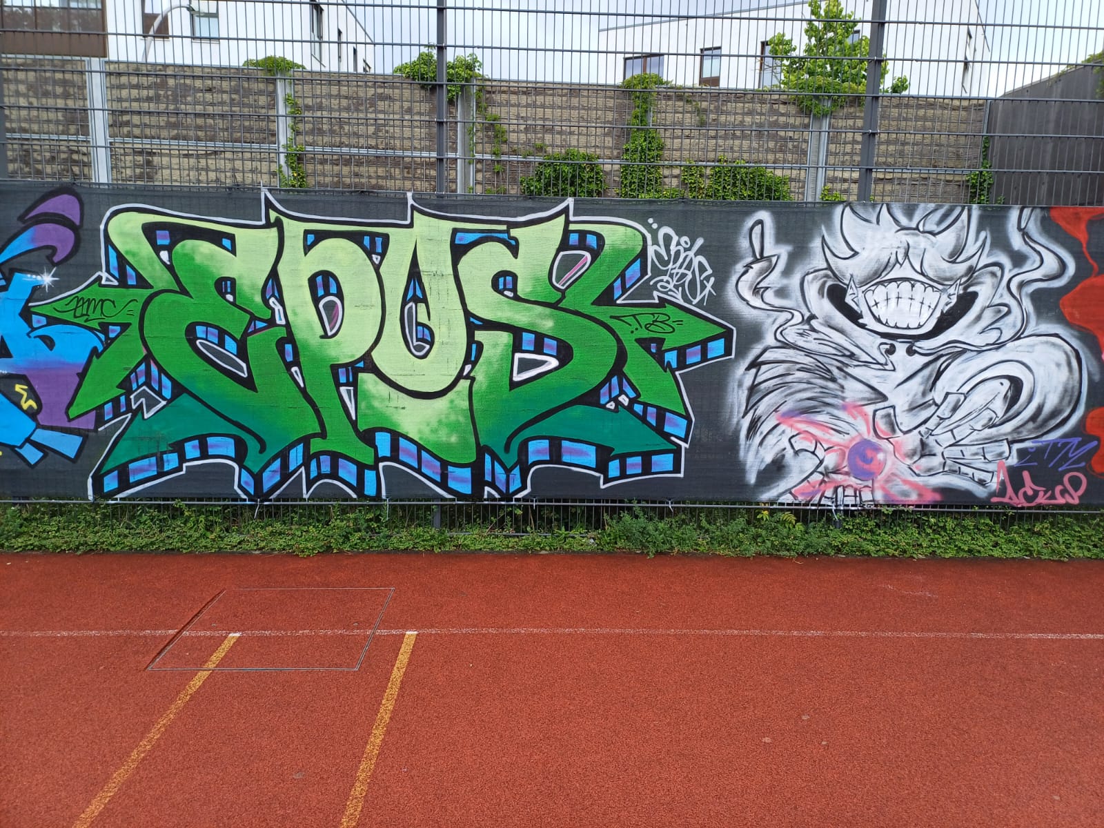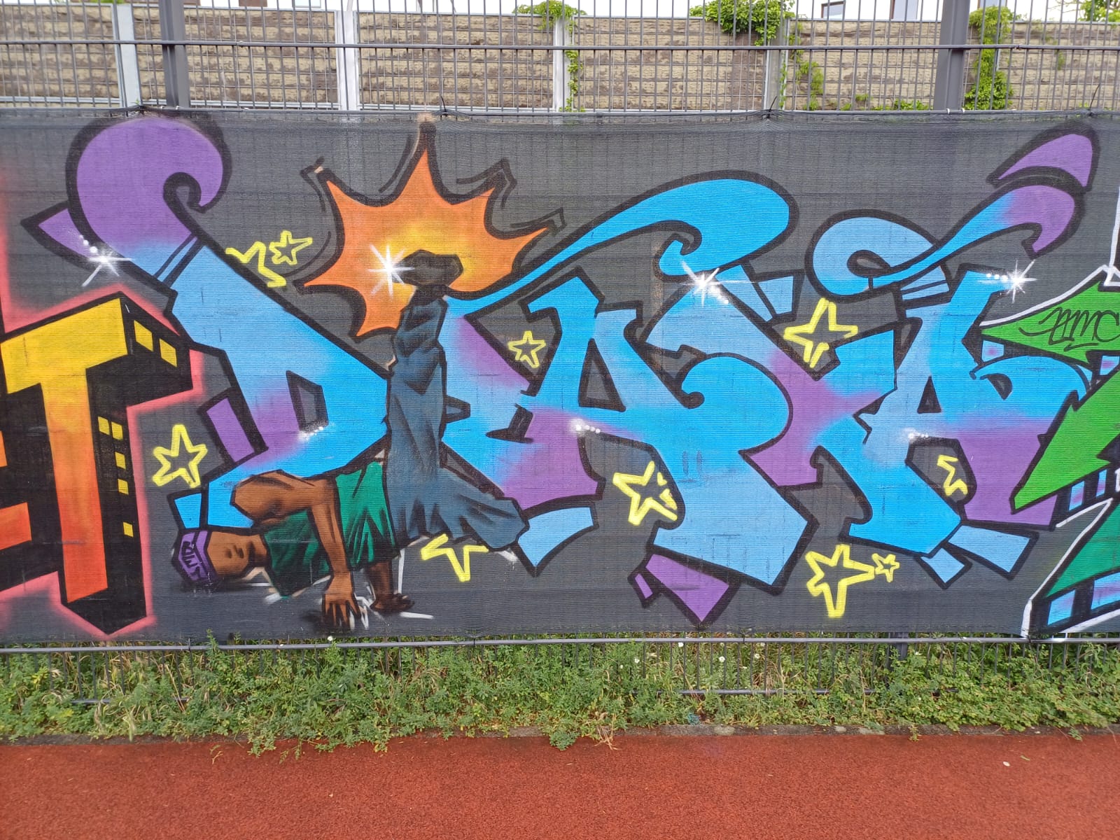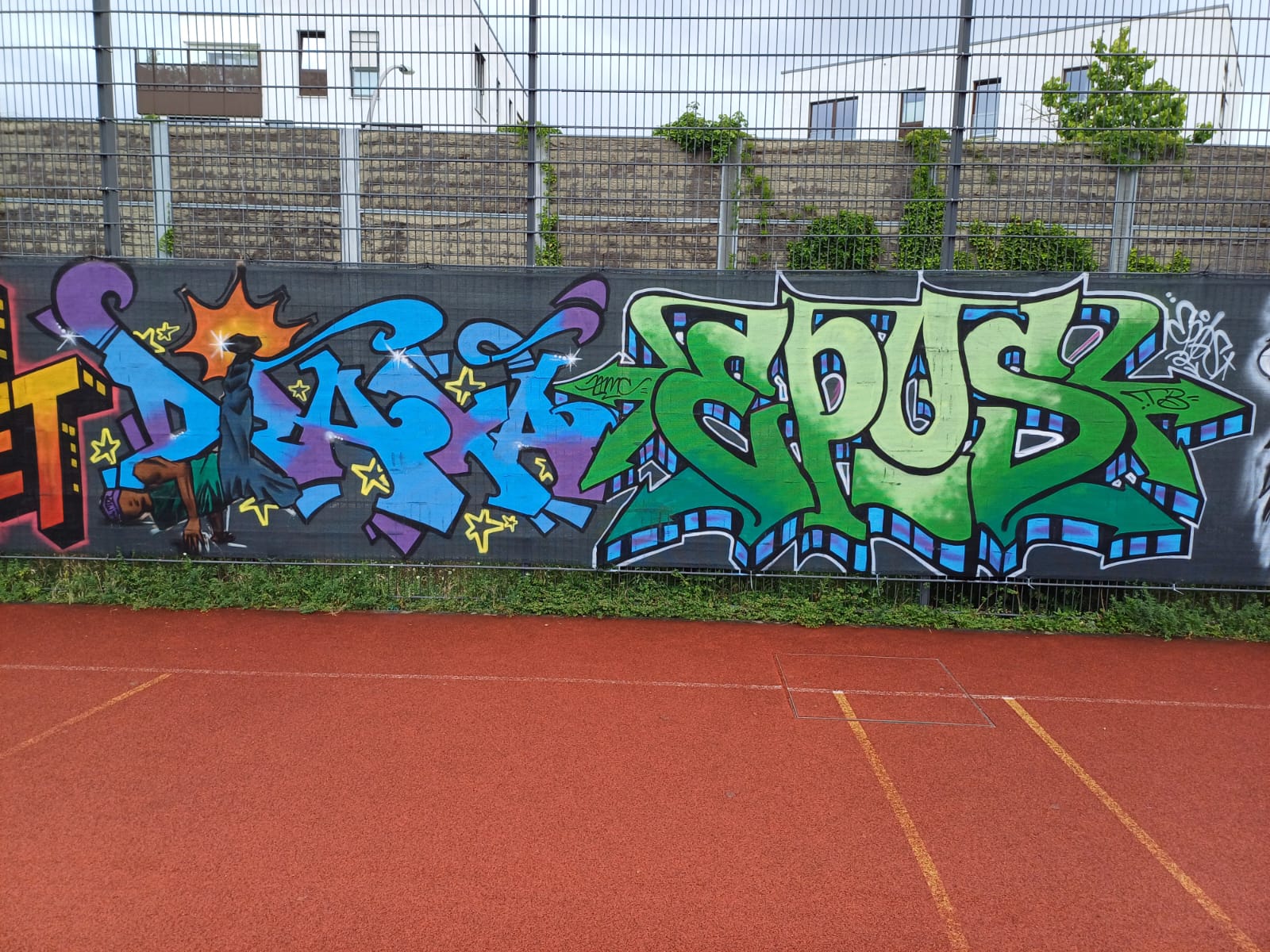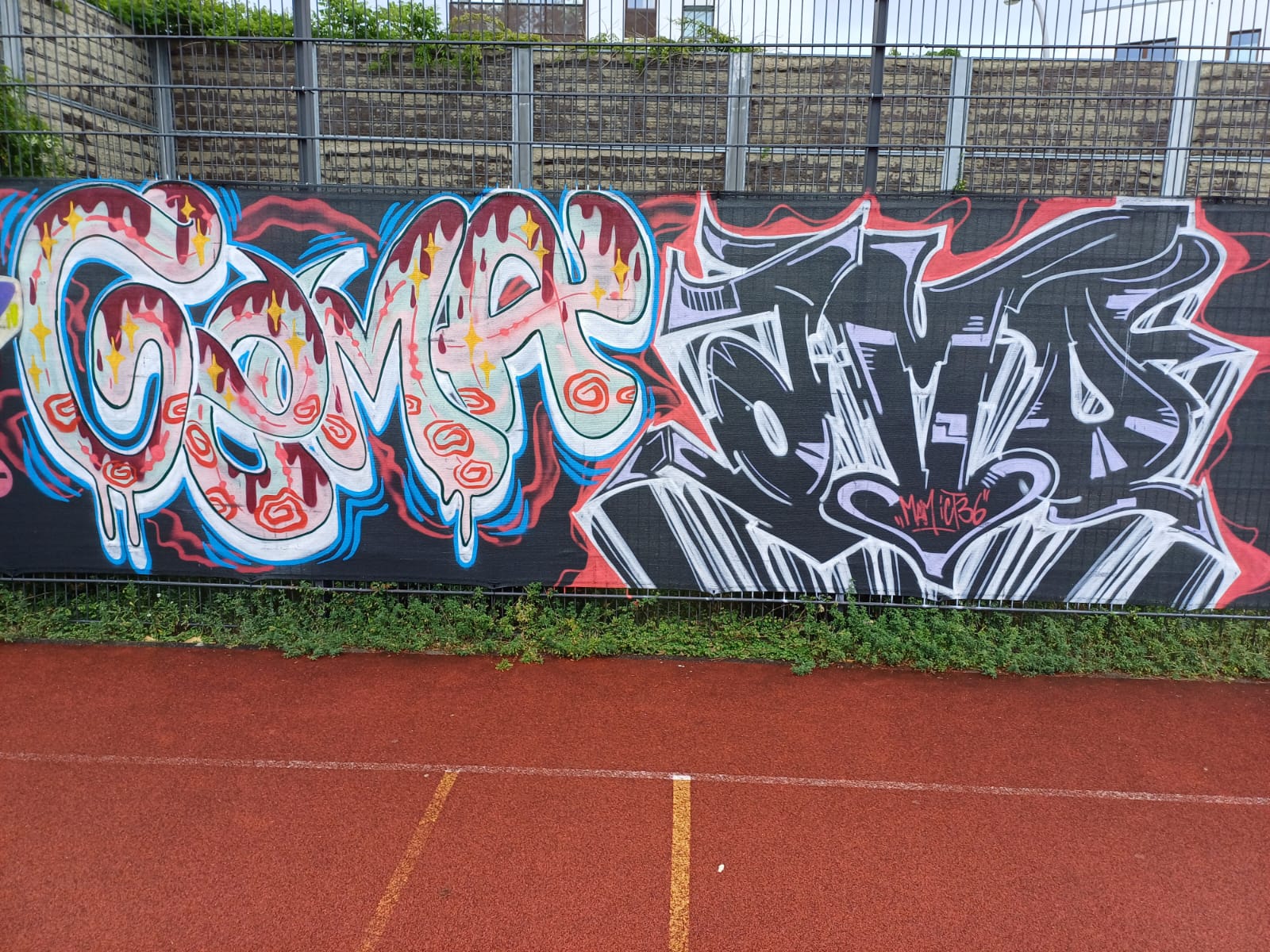 To mark the opening of the new skate park on 21st May in 2025, the adjacent wall was painted by young graffiti artists from the youth centers M-STREET, DIE SCHOTTE and JEVER NEUN under the direction of STREETLIFE 2.0. The project was supported by MOBILES WOHNZIMMER, JUGENDAKTIONSMOBIL, GANGWAY and BRÜCKEMUSEUM.