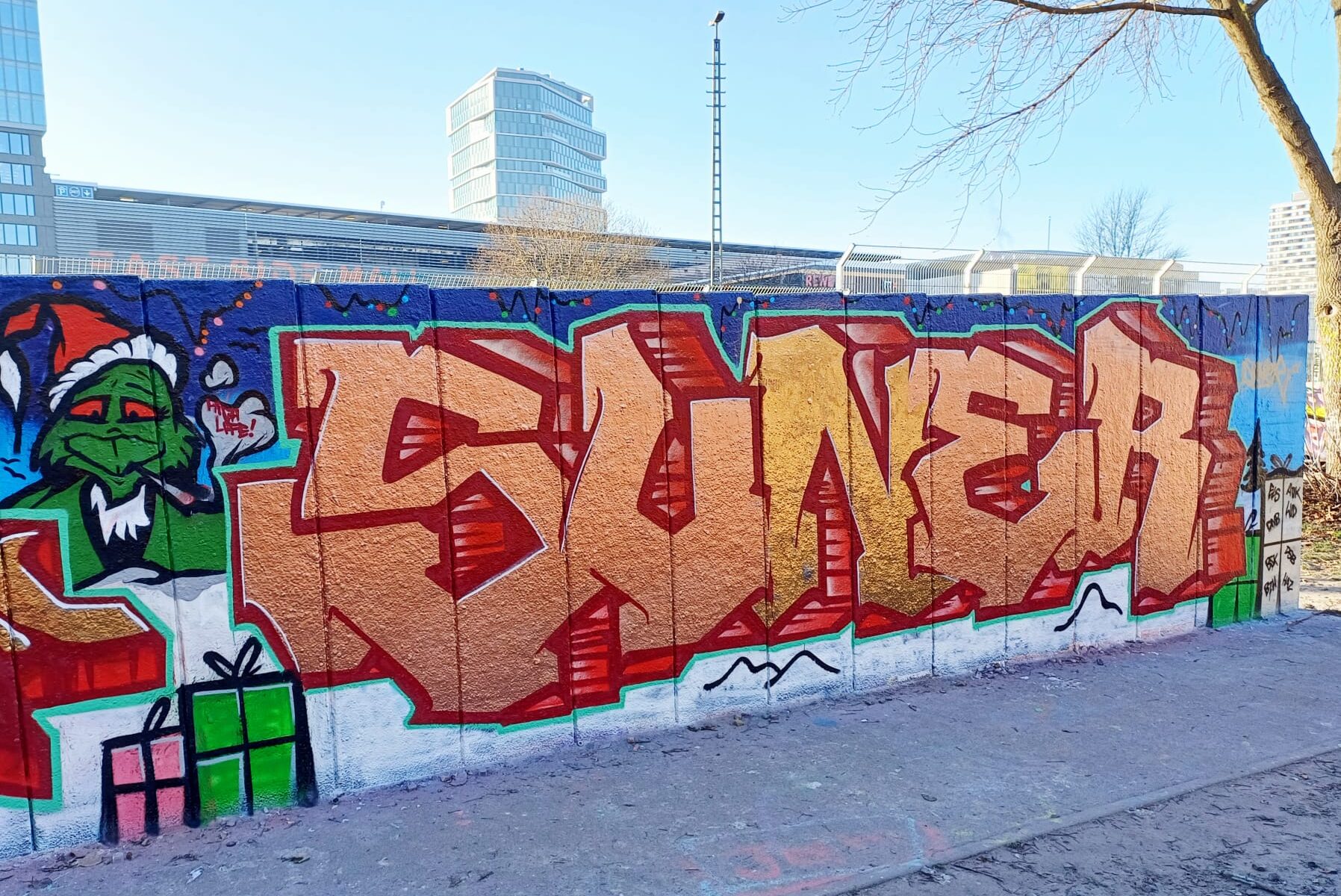The graffiti of this Christmas collaboration wall to the left are from KURZA, SUET and MSEK