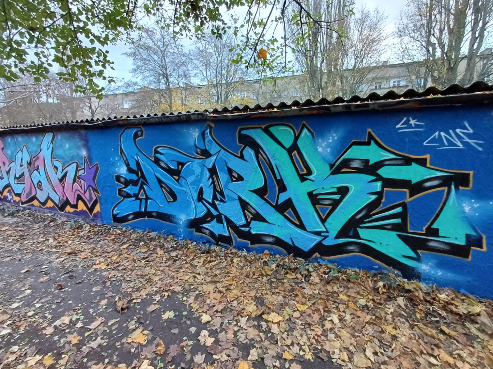 The artwork on the left was made by SOEM and the graffiti on the right is from OIML.