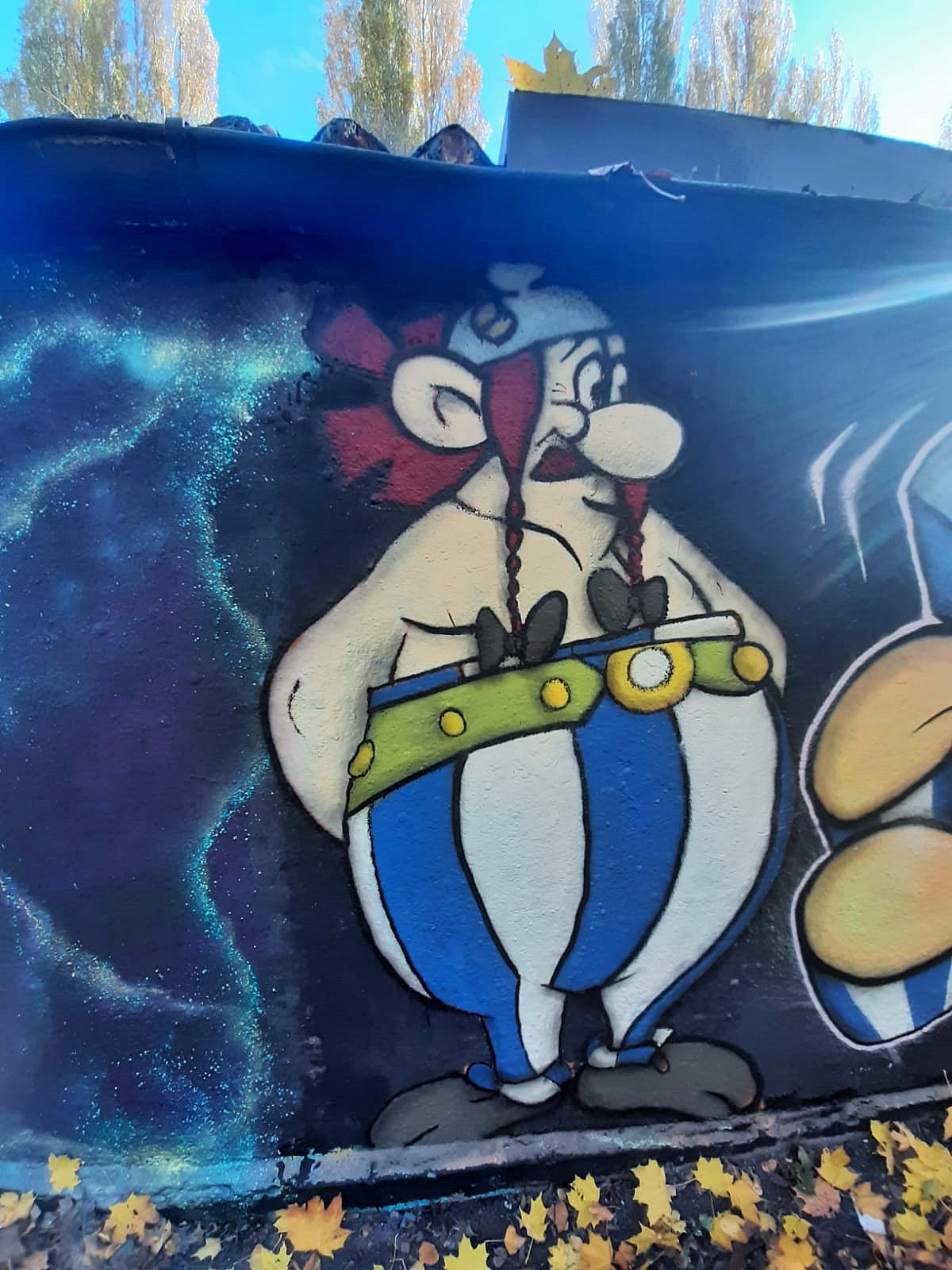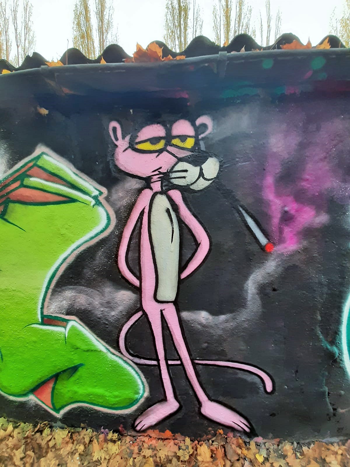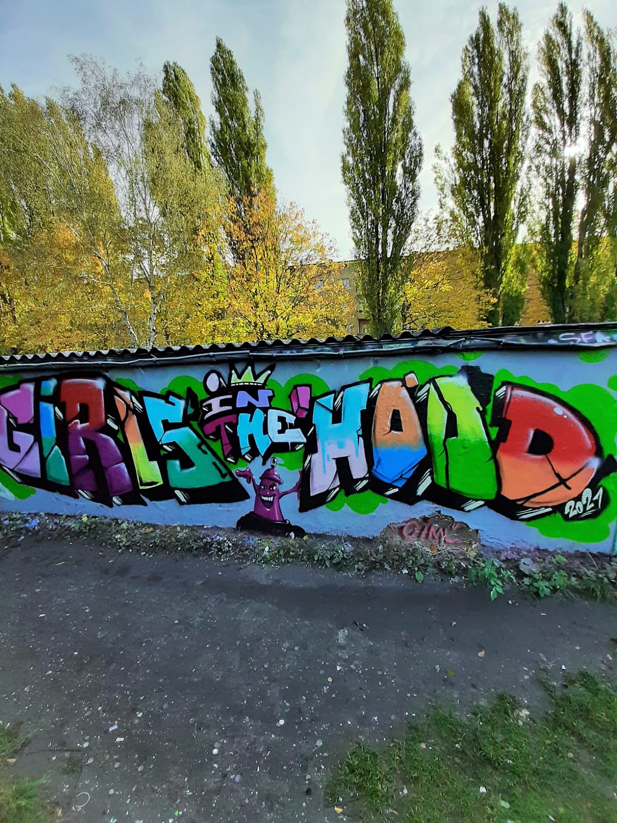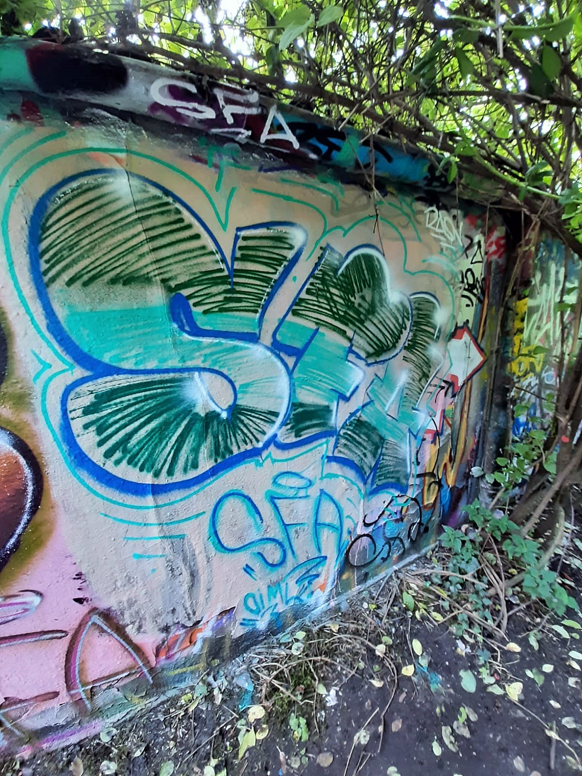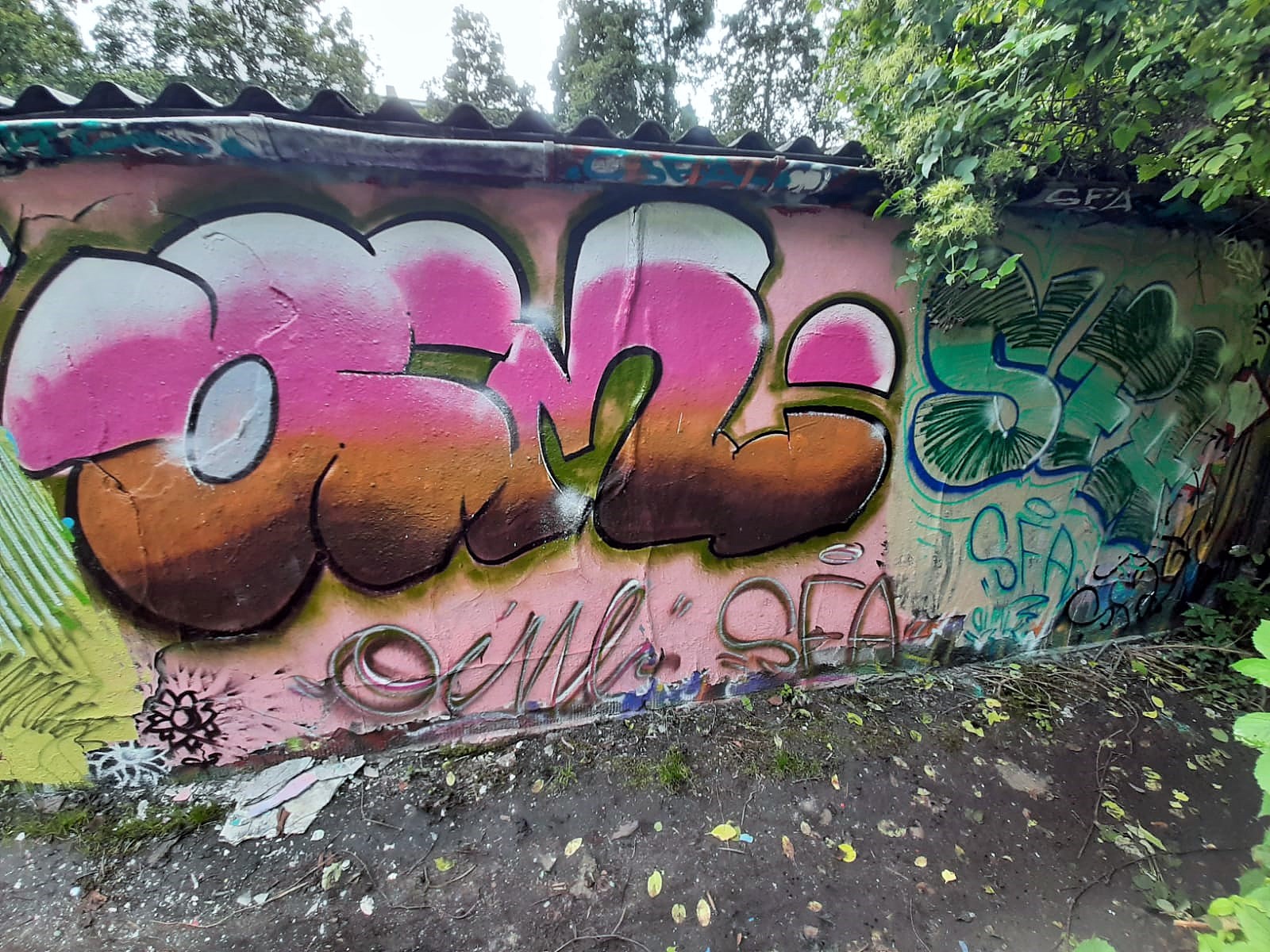 The graffiti on the left was from SPLIT, the graffiti in the middle was made by WESAC and the artwork on the right is from OIML