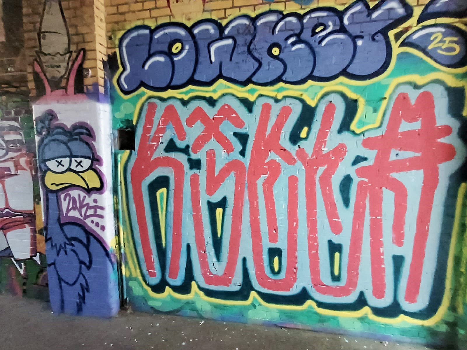 The bird on the left and the graffiti above are from LOWKEY aka LOKI