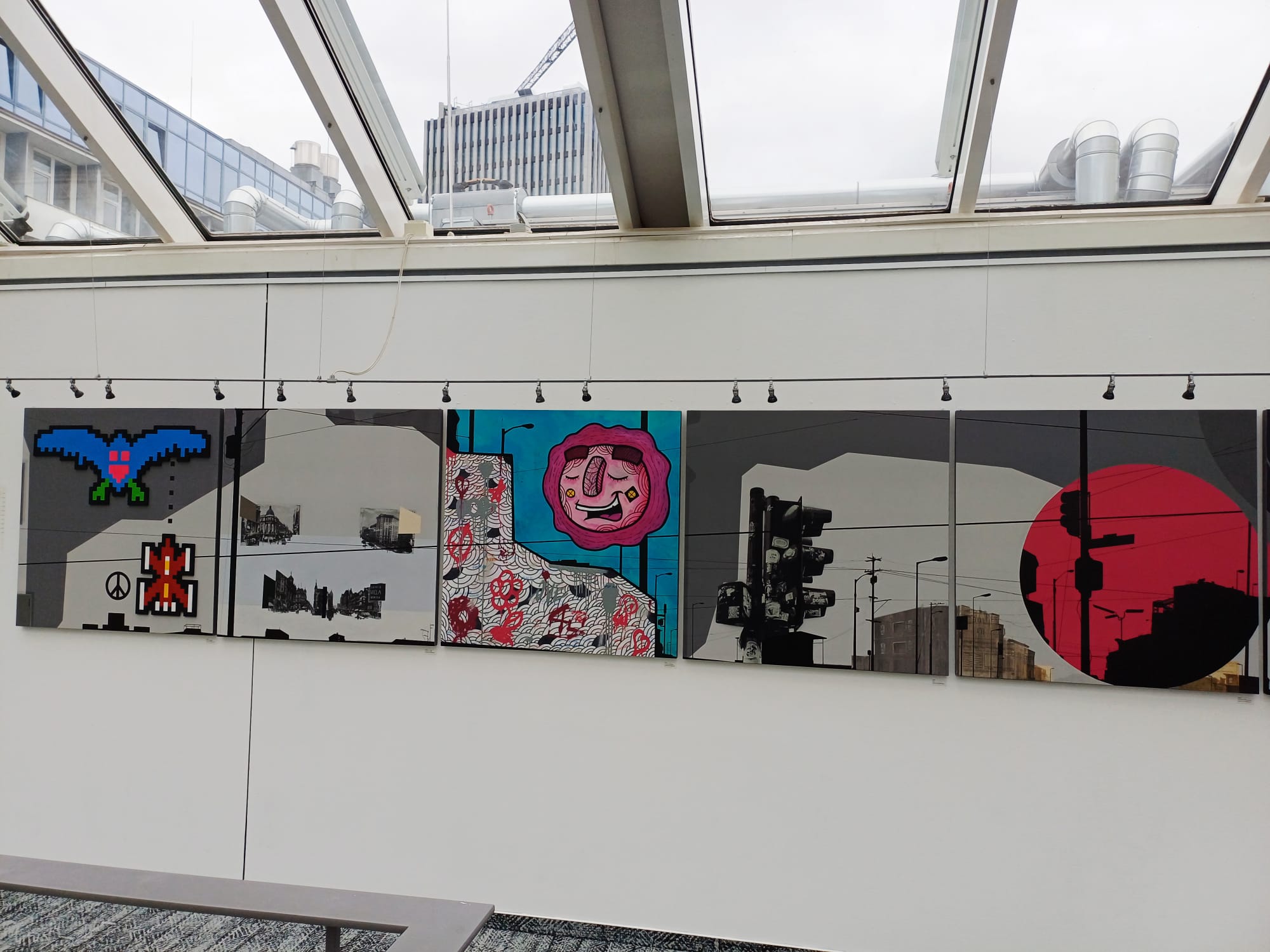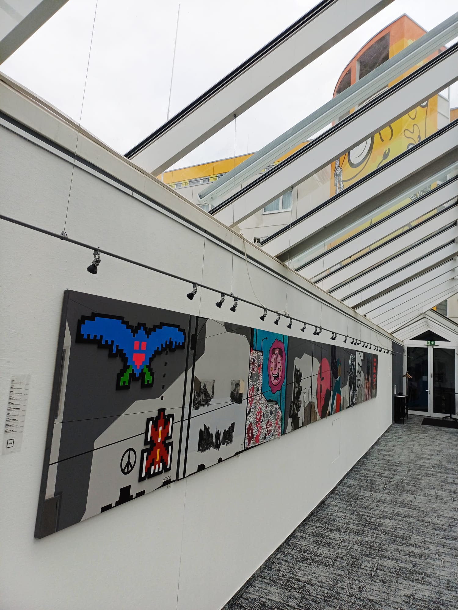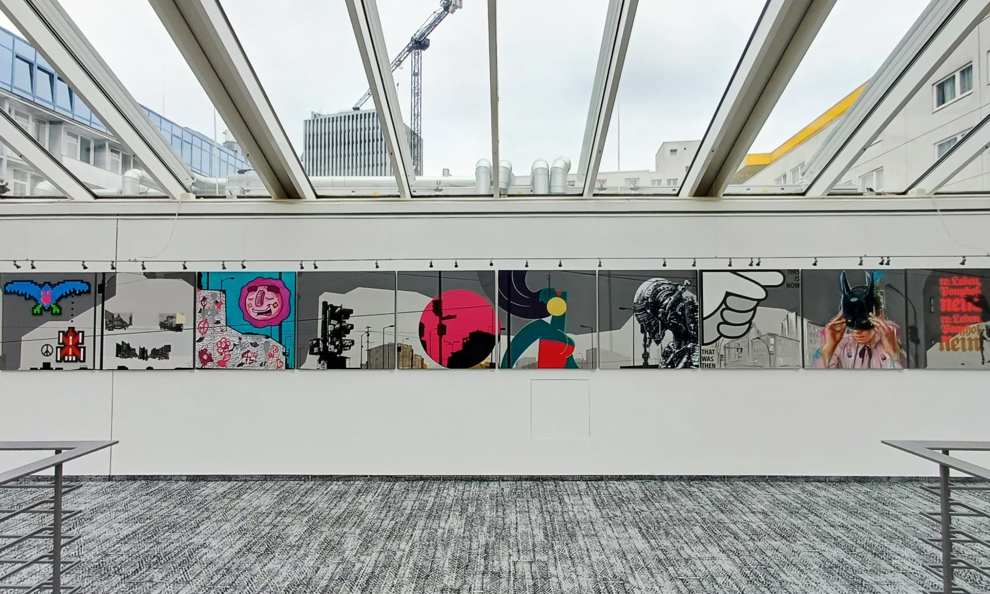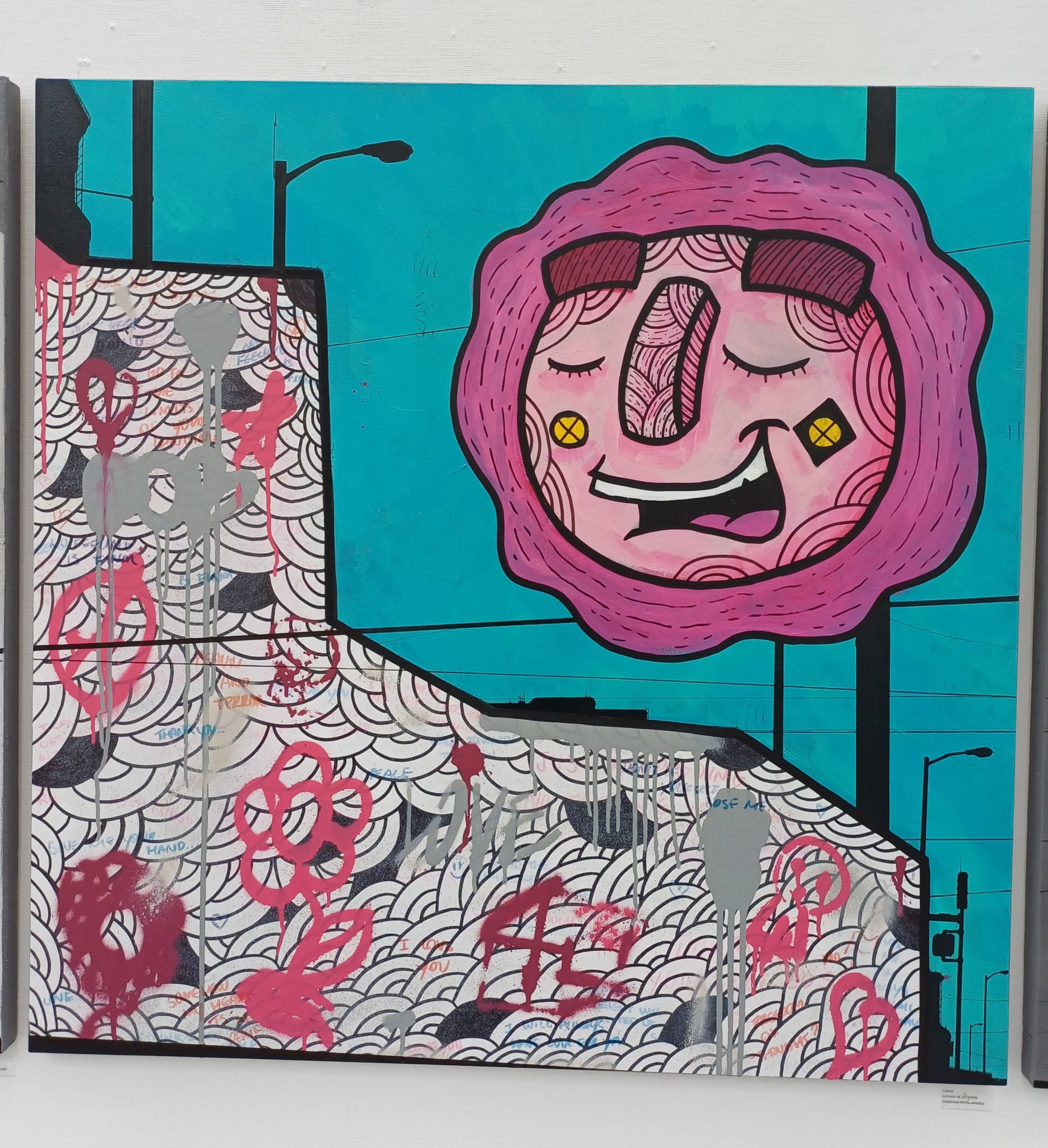 On September 18th in 2025, the next group exhibition featuring ten participating artists opened at the FKKB. It was organized and curated by CHRISTIAN ROTHENHAGEN aka DEER BERLIN and all the ten artworks are a collaboration together with DEER BERLIN, who made the background of the works and the respective artists put on works in their individual style. As the name “1QM” suggests, the works were each created on one square meter. Here are the individual pieces and an overview of the exhibition. Clicking on the artists‘ titles will take you to their subpages with more photos from this and previous events.