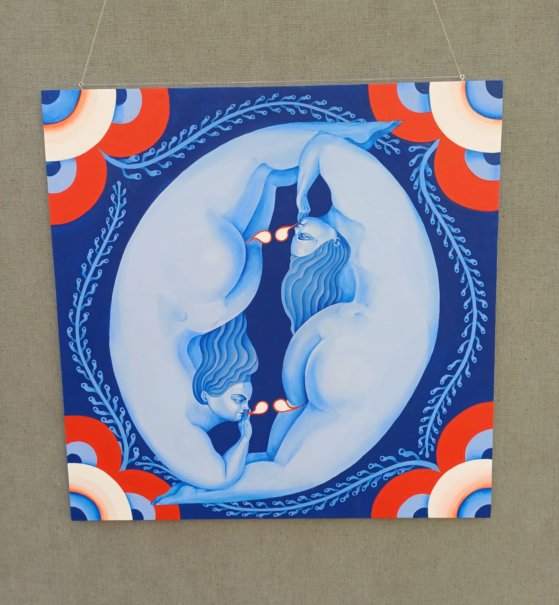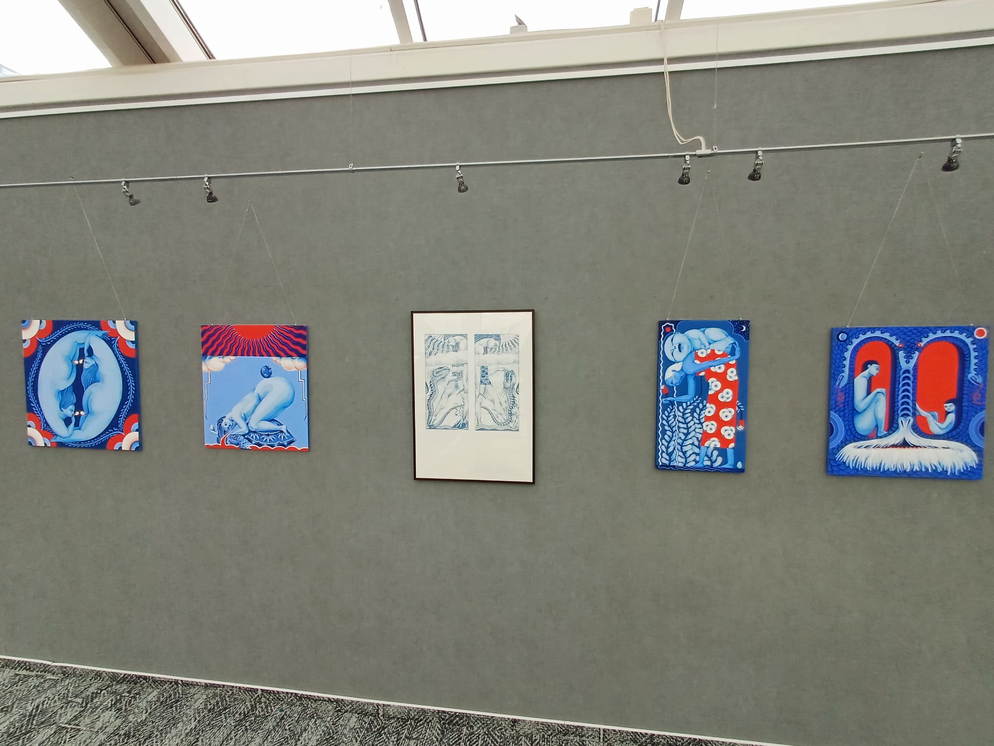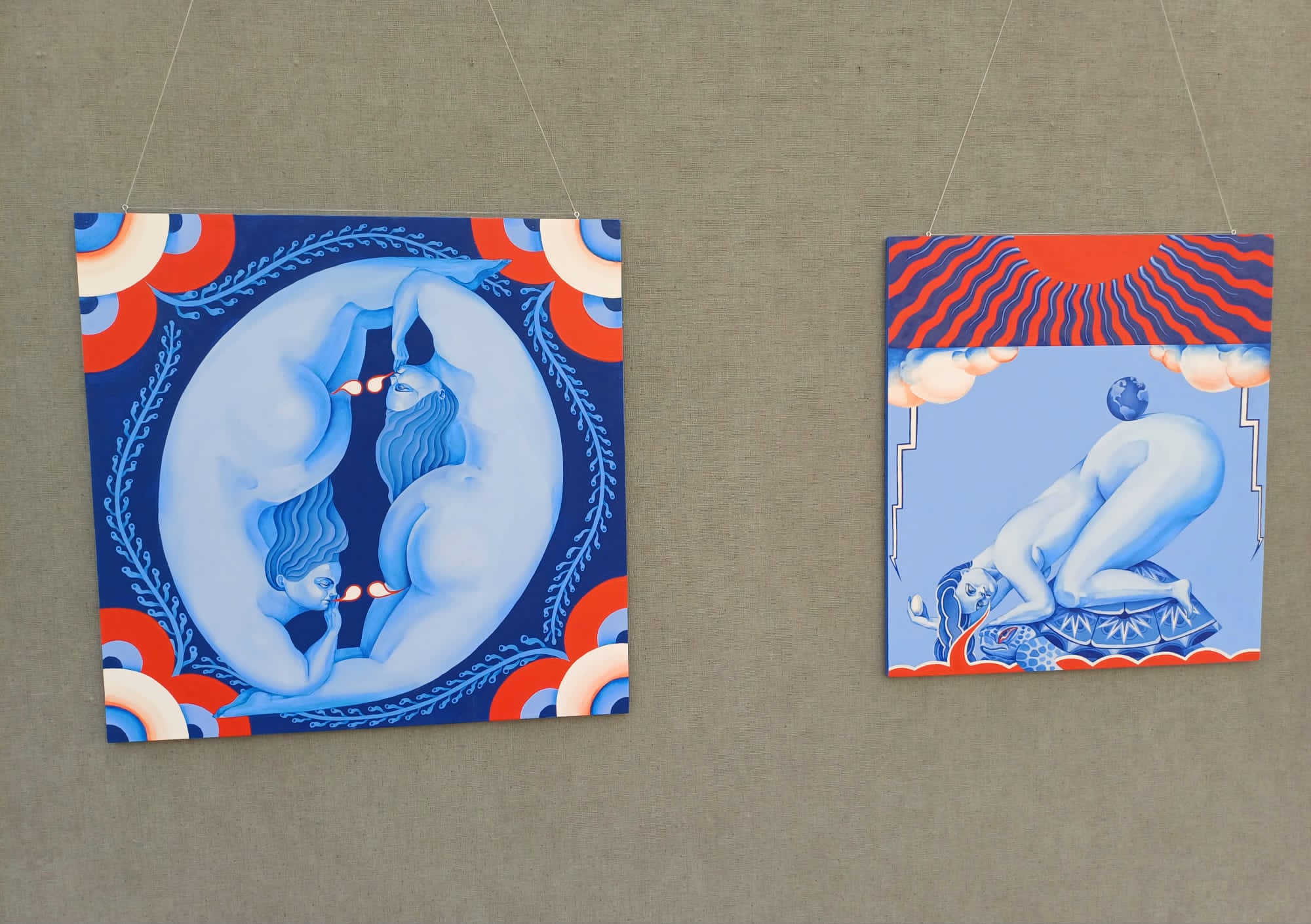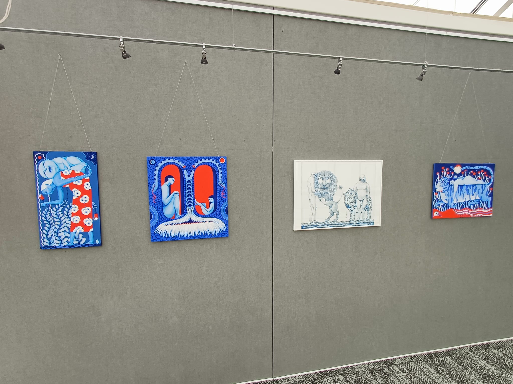 The artwork on the right was made by exhibition partner AMANDA ARROU-TEA aka MANDIOH