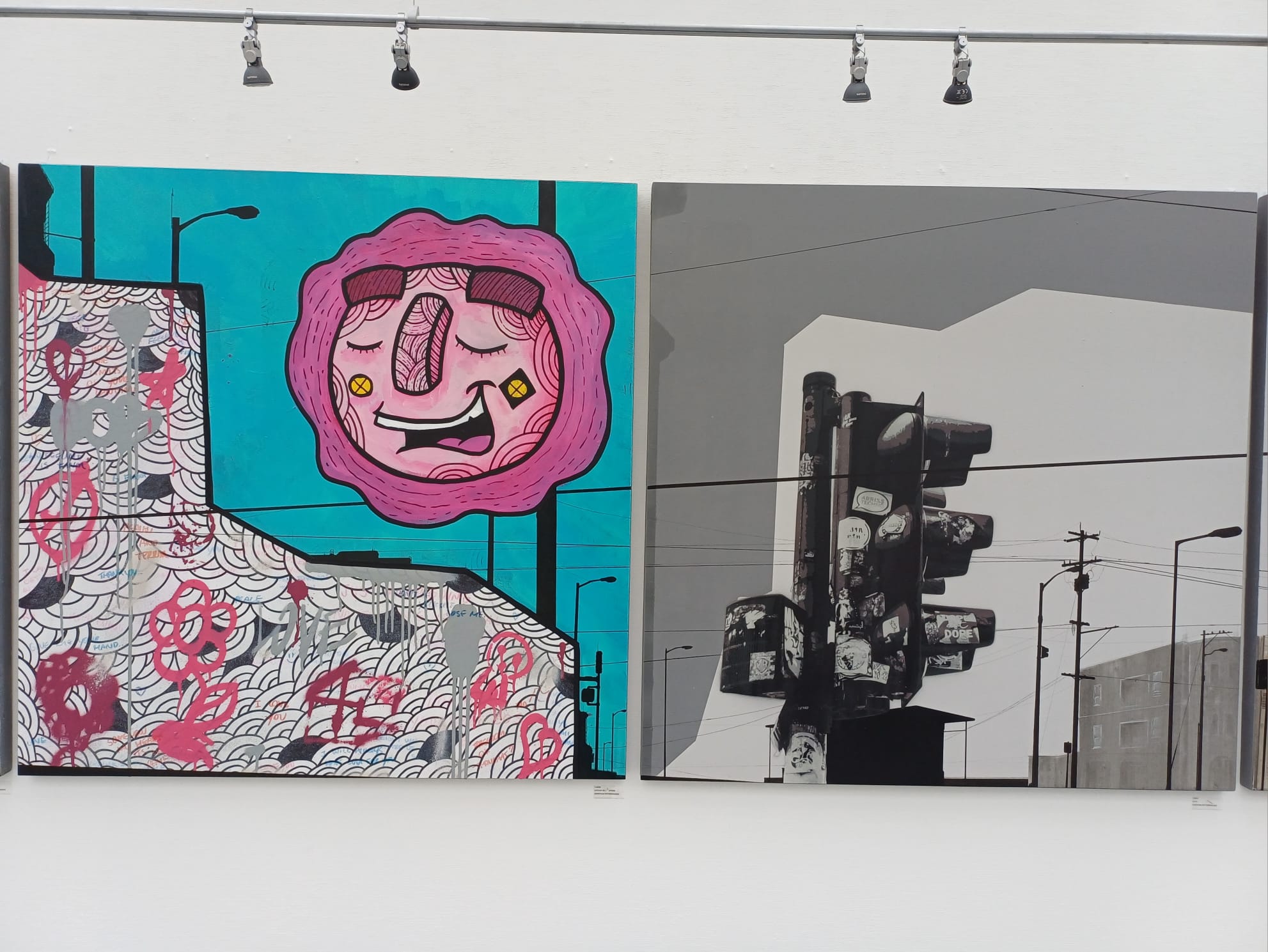 The smaller artworks on the upper left are from EDINA PICCO and the artwork on the right was made by ADRIAN DITTERT