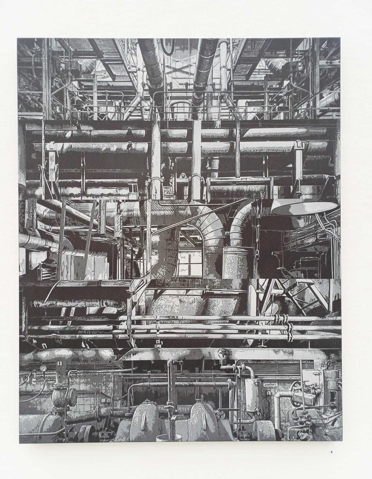 RENÉ MEYER aka RMYR is a renowned visual artist based in Leipzig, Germany. He specializes in creating intricate stencils of industrial architecture and cityscapes. All of his complex, multi-layered stencils are carefully hand-cut, allowing him to experiment with different concepts and combinations. With each work he creates, he aims to inspire and intrigue the audience, inviting them to explore the beauty and detail of stencil art. – FKKB