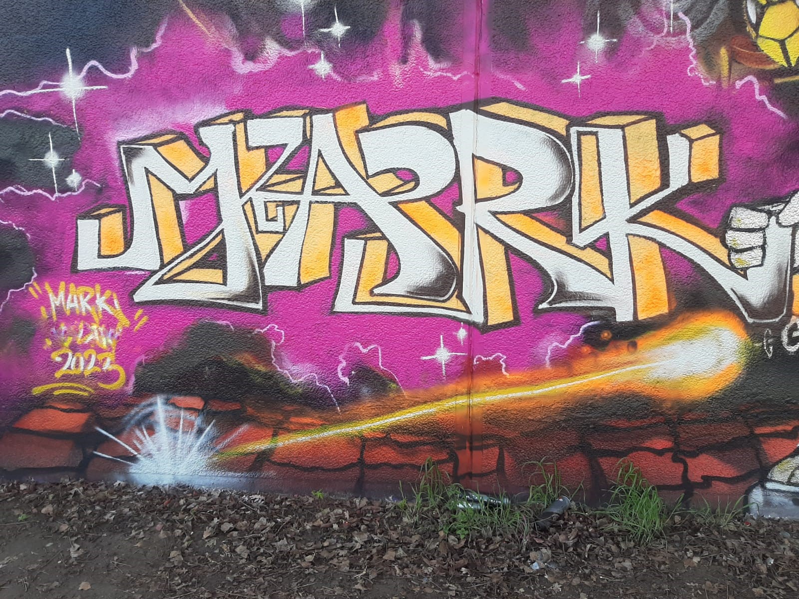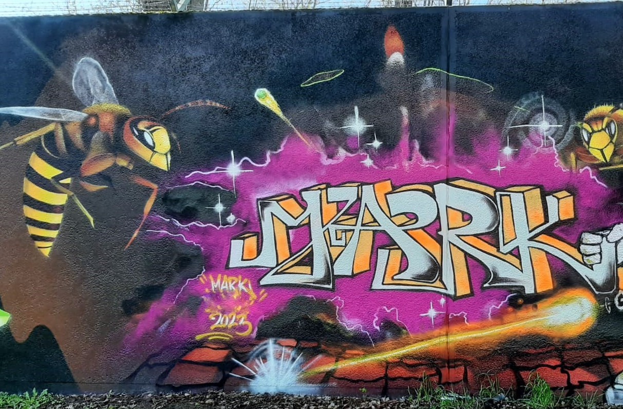 The graffiti is from MARK and the bees around are from a previous graffiti made by TRIP. New and old fixing nixely togehter.