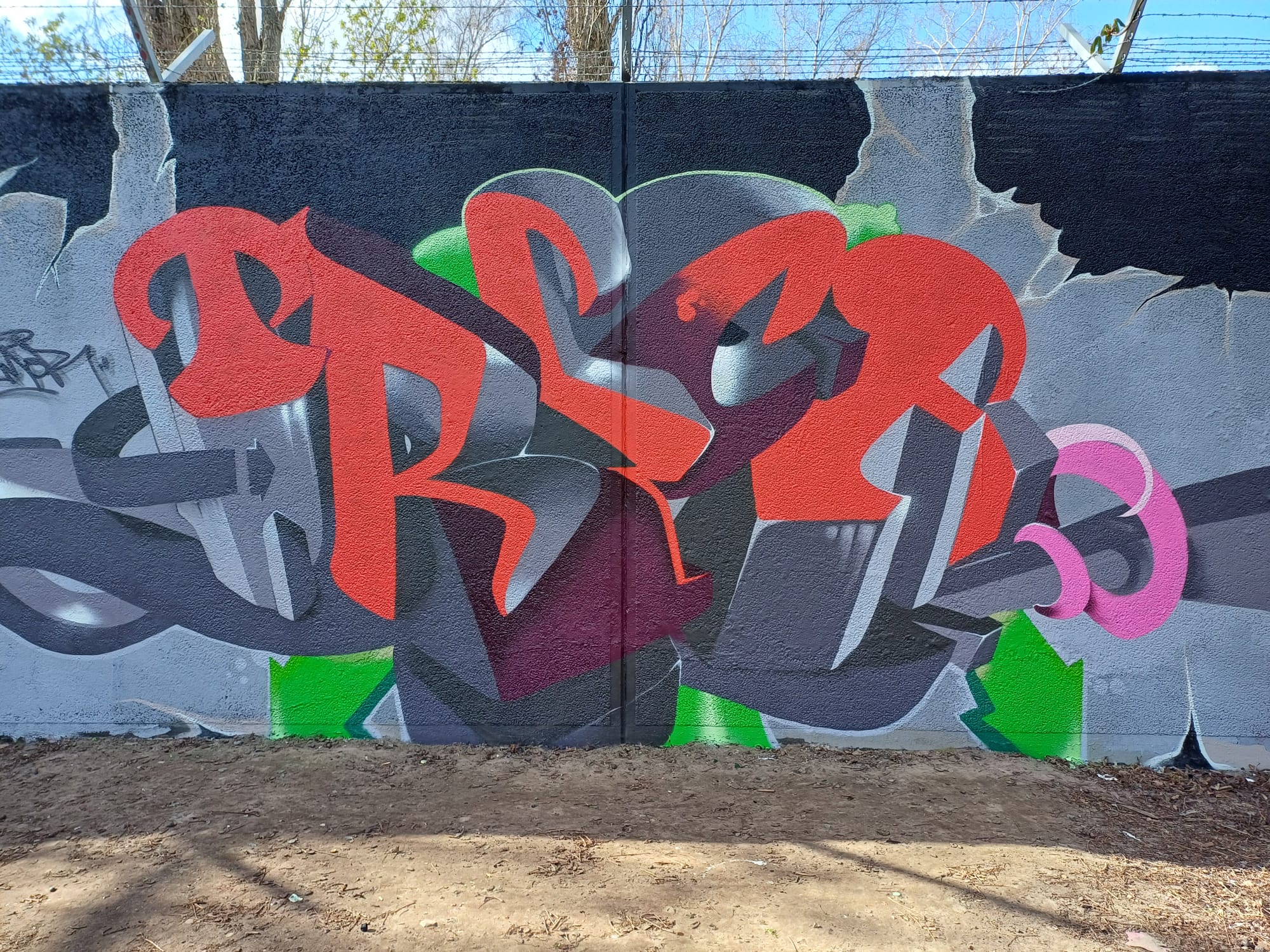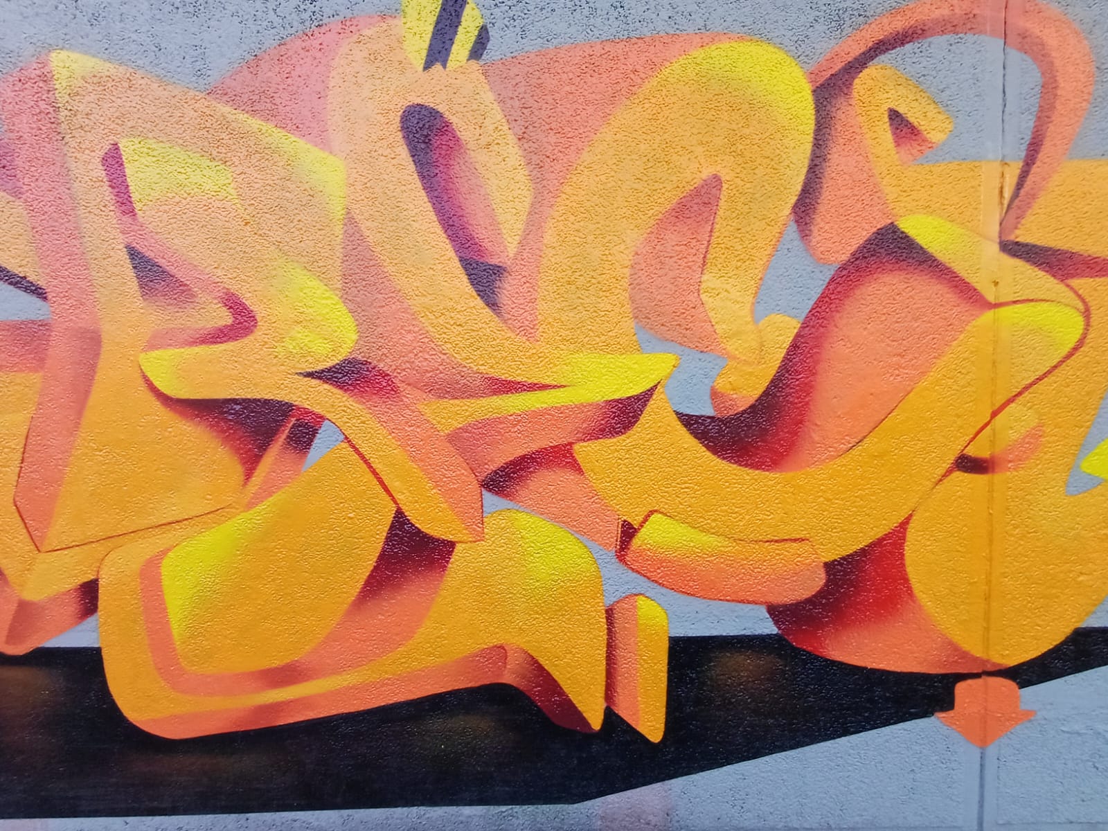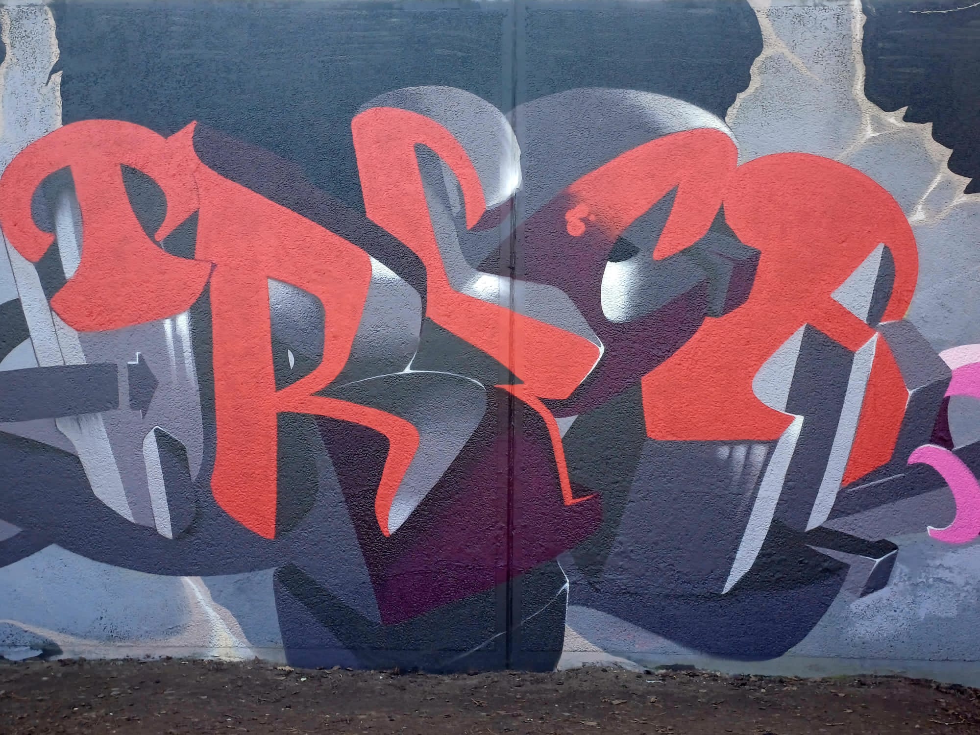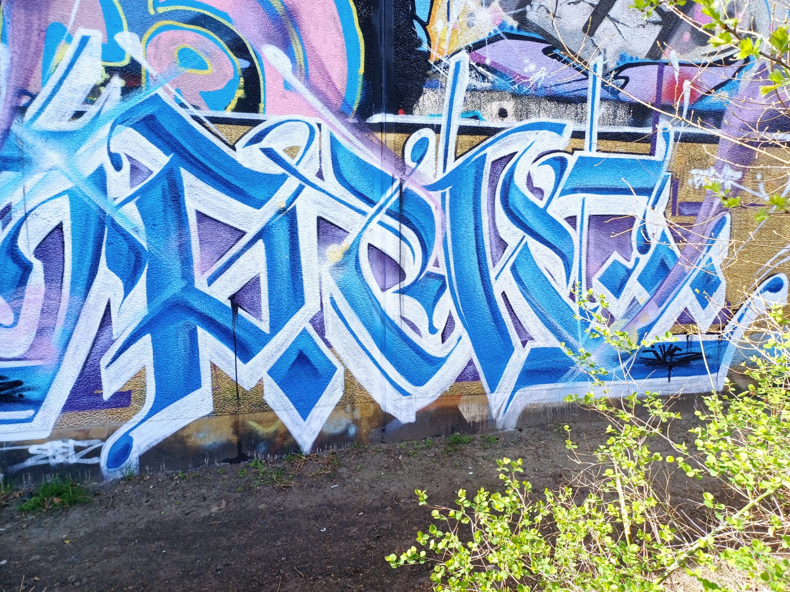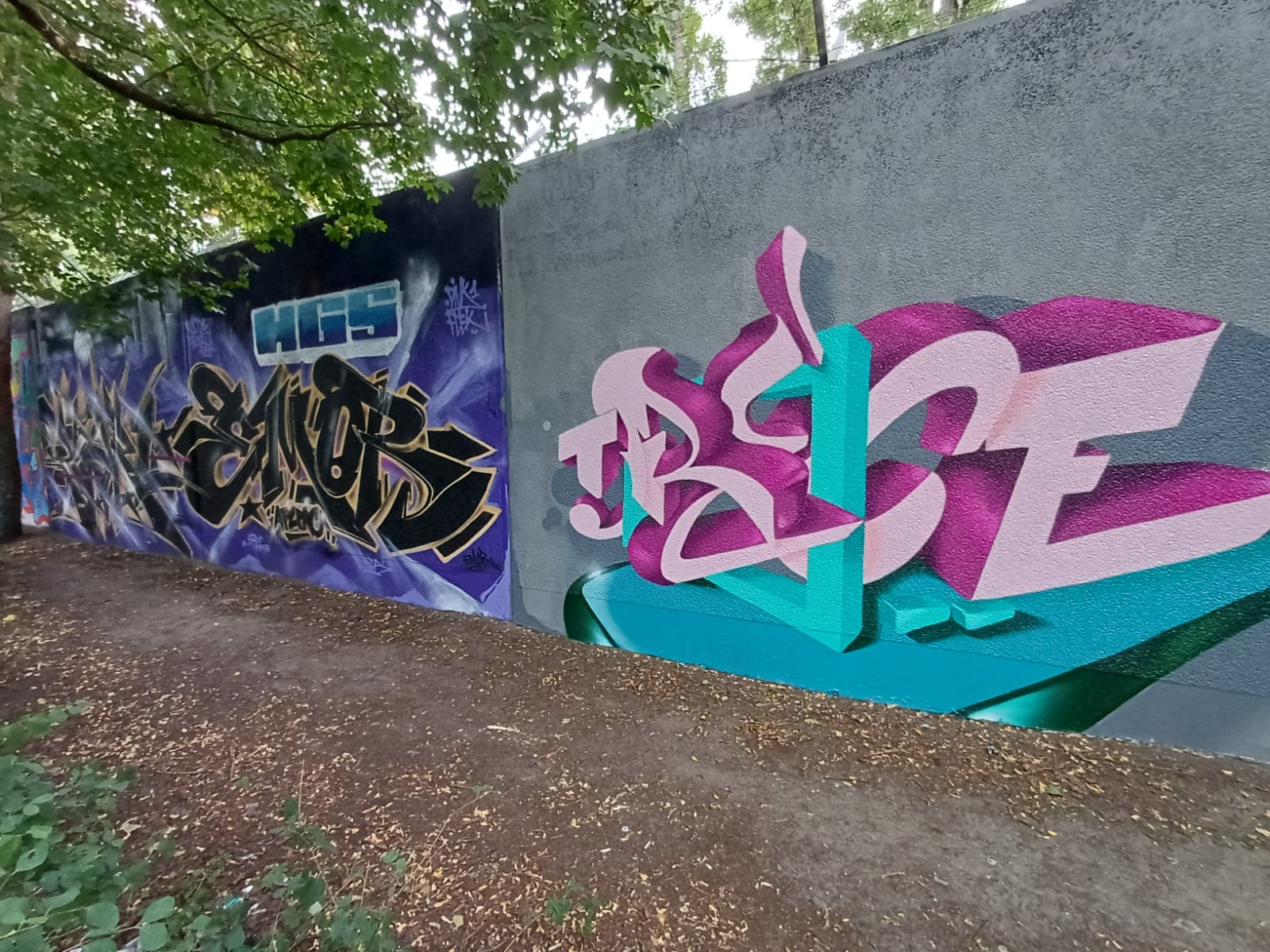 The graffiti on the left is from EMOR and the artwork on the right was made by RAMIREZ ILLICH