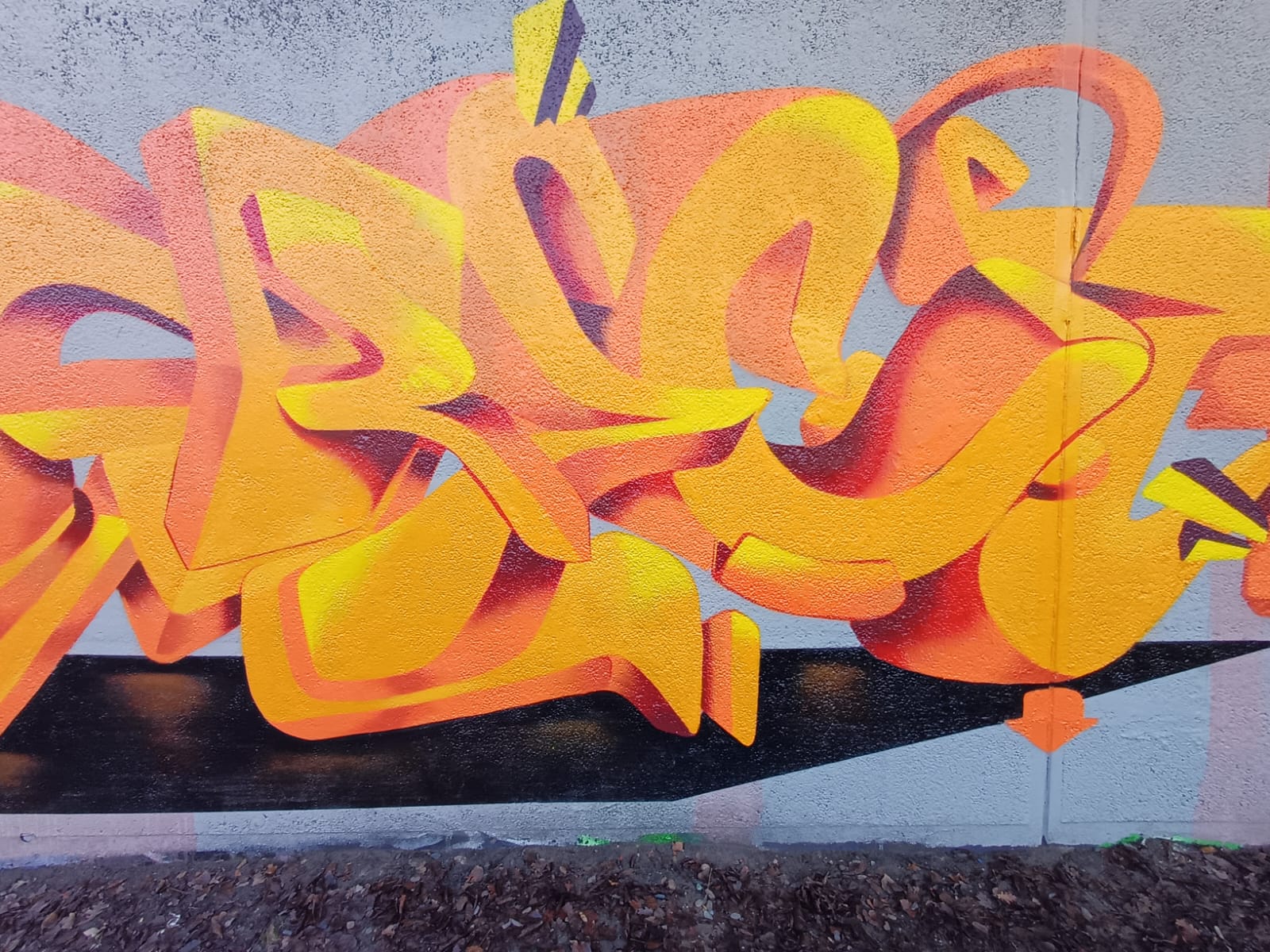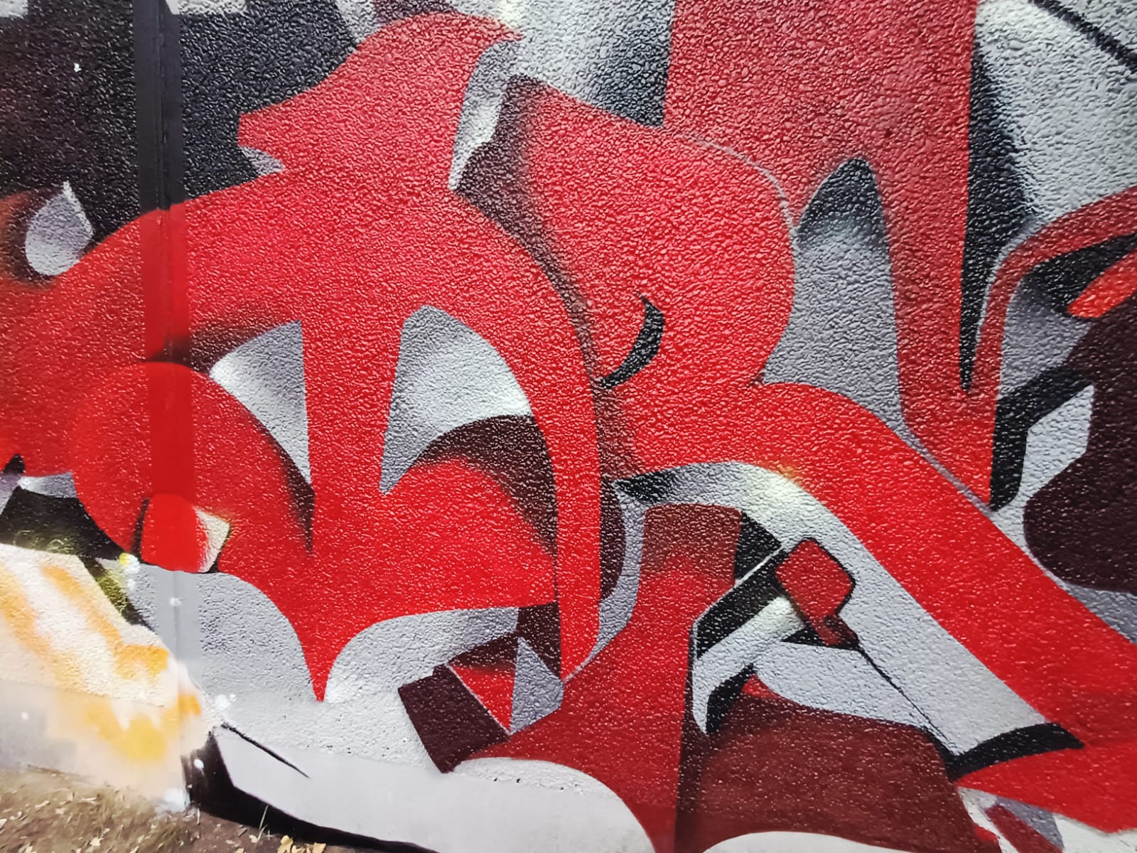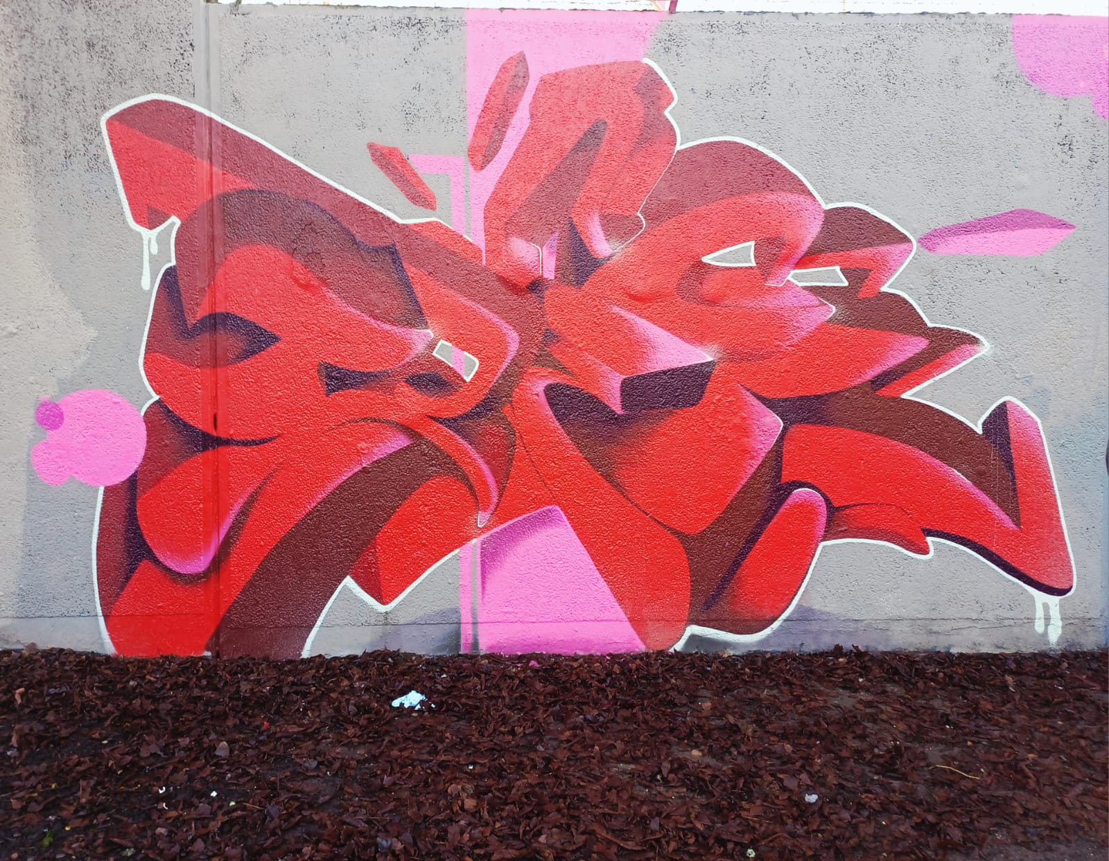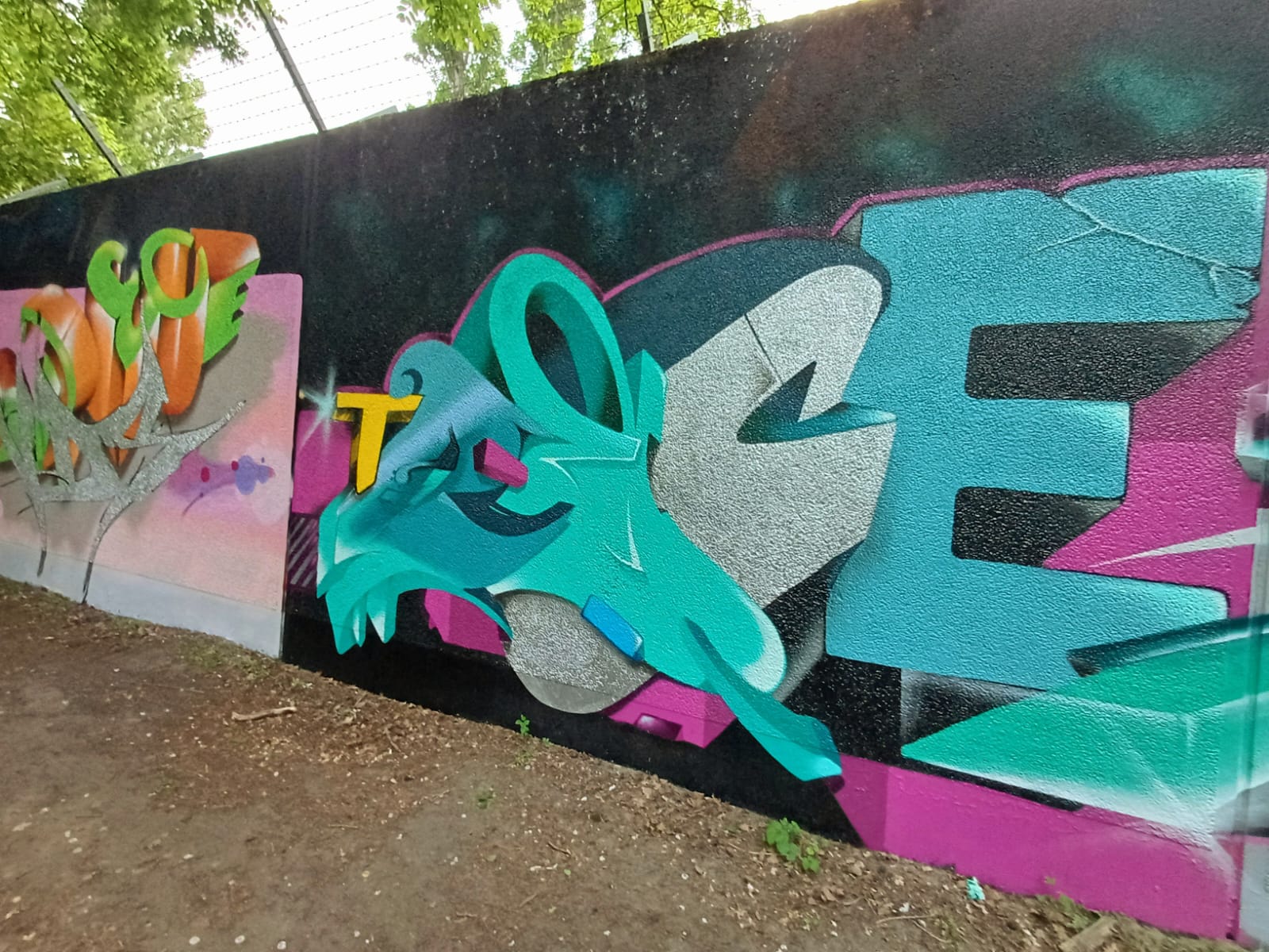 The graffiti on the left is from EMOR and the artwork on the right was made by RAMIREZ ILLICH