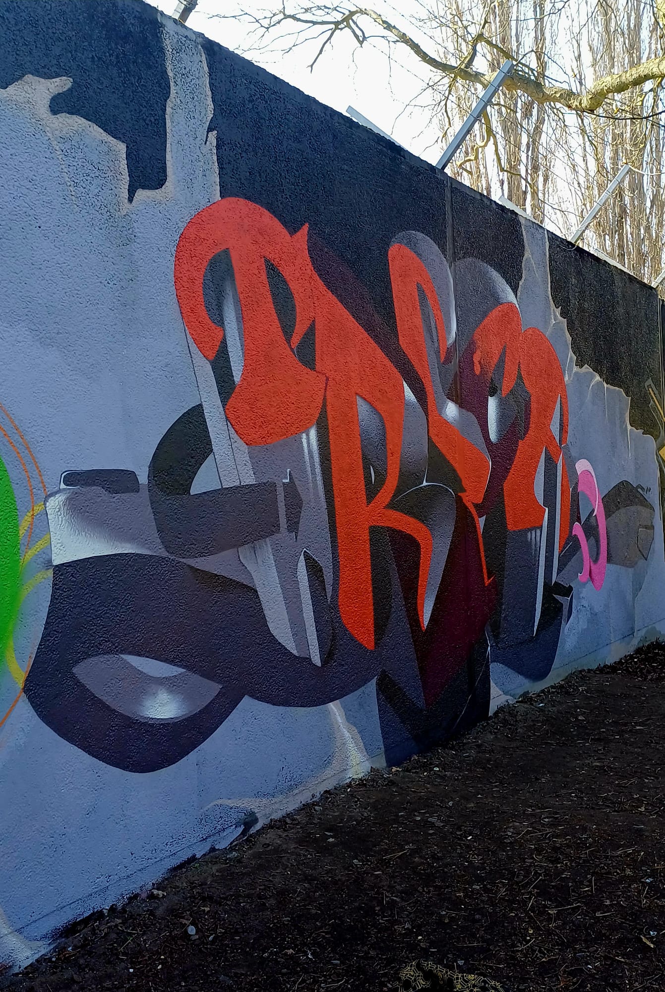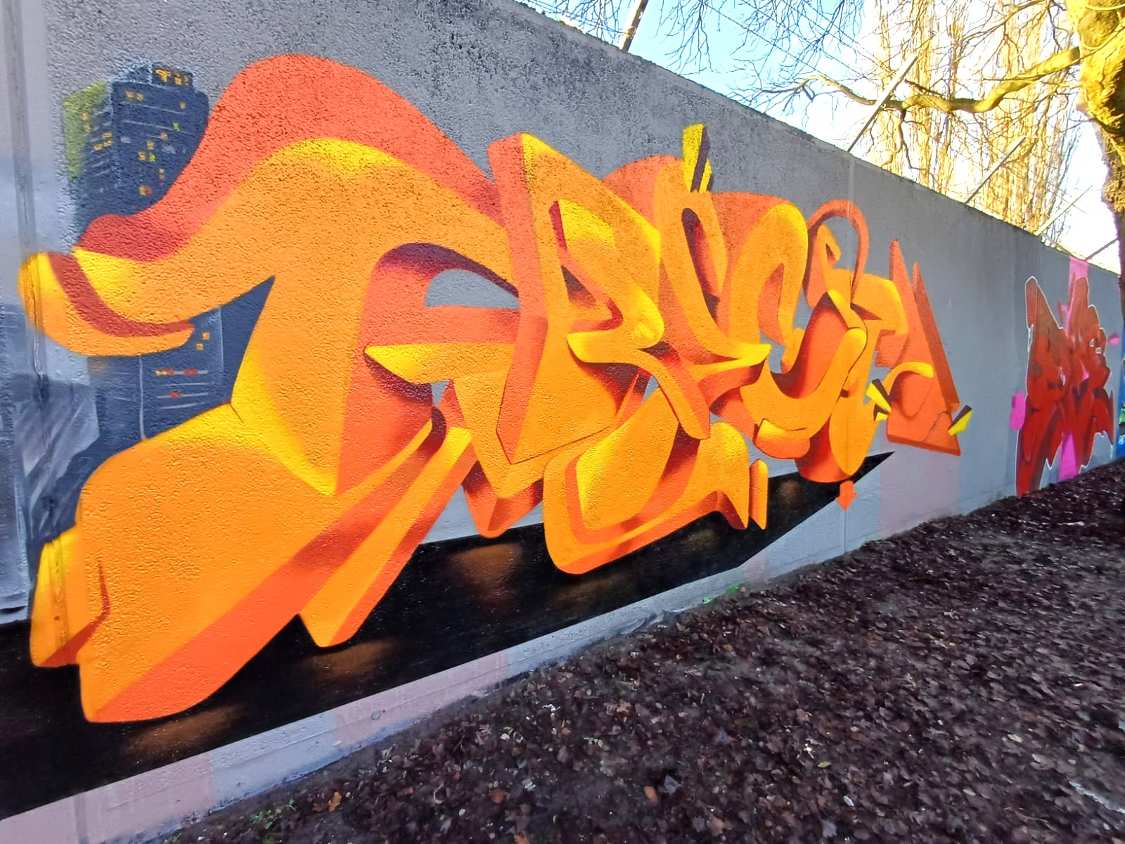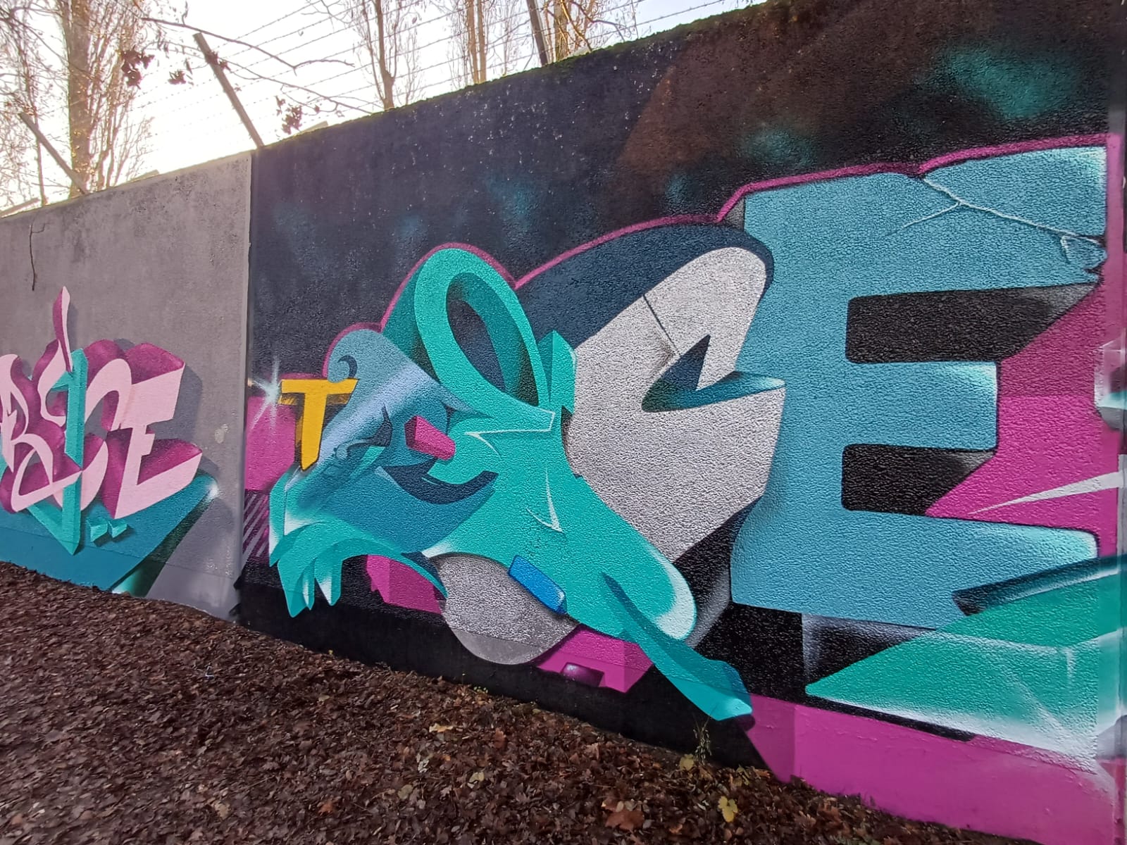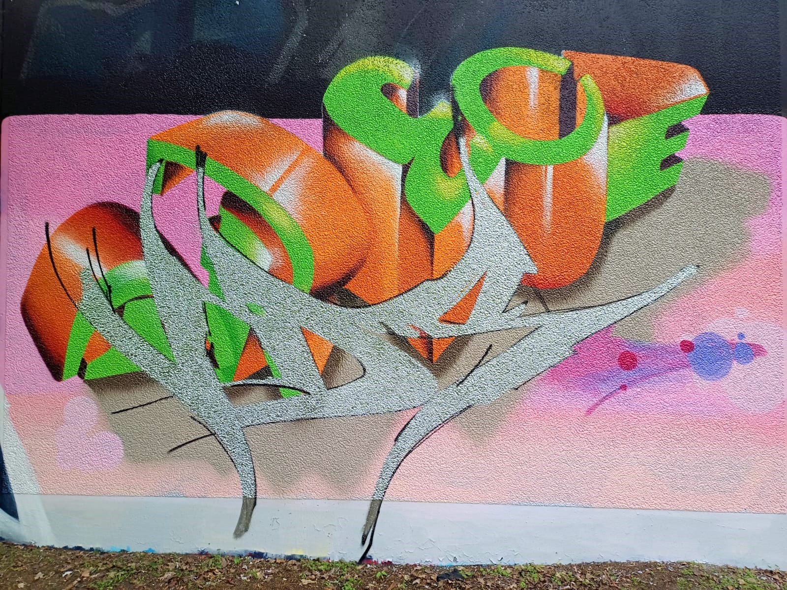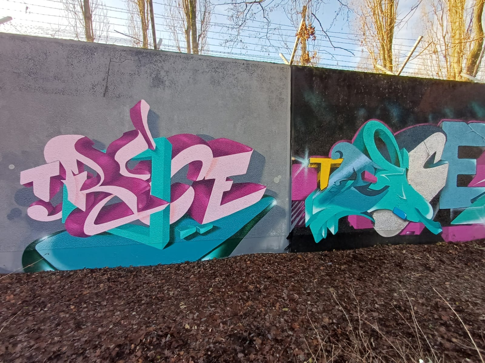 The graffiti on the left and on the right are from EMOR and the artwork on the far right is from LARGE