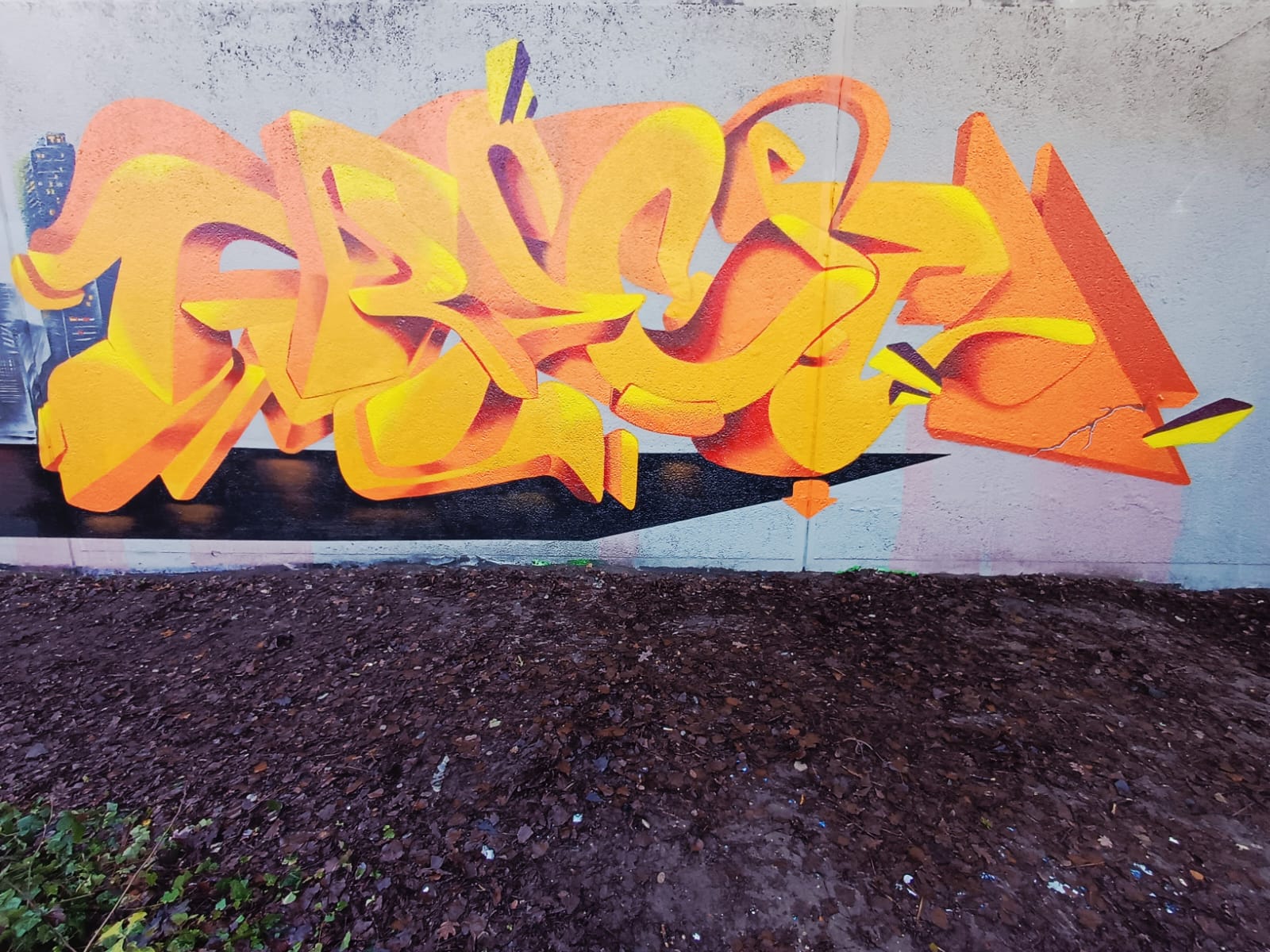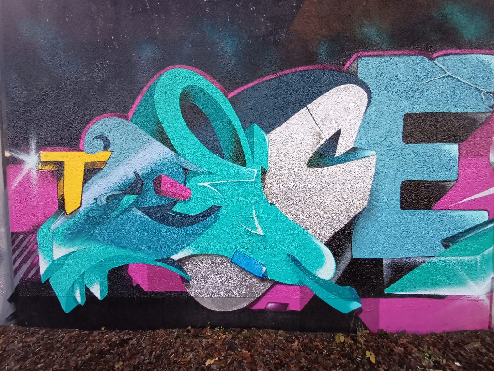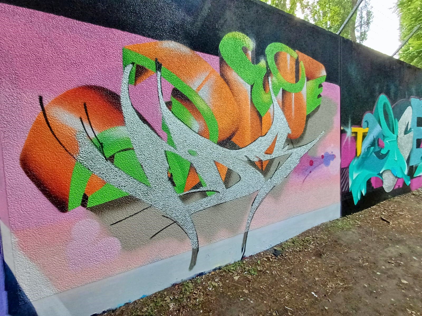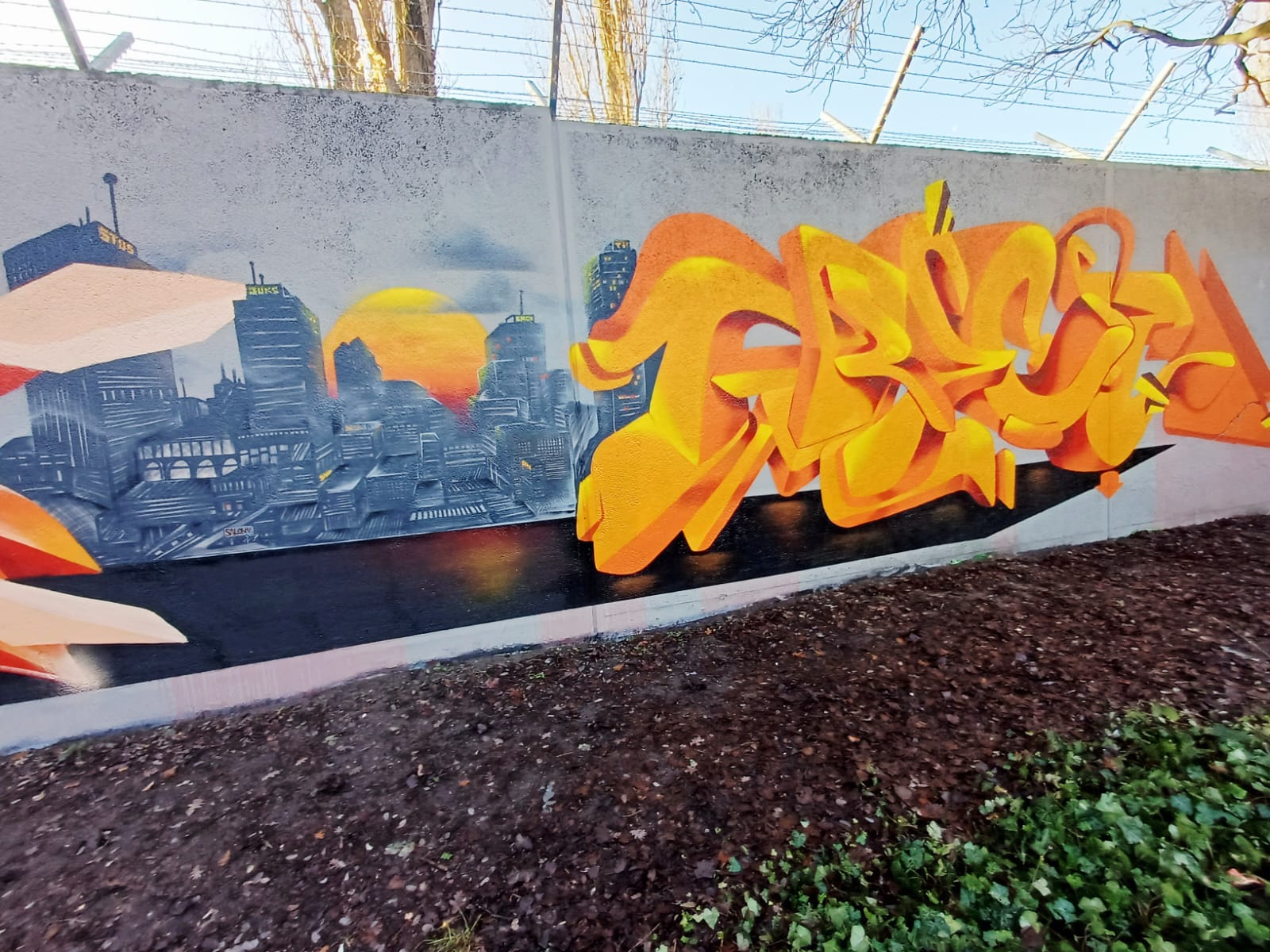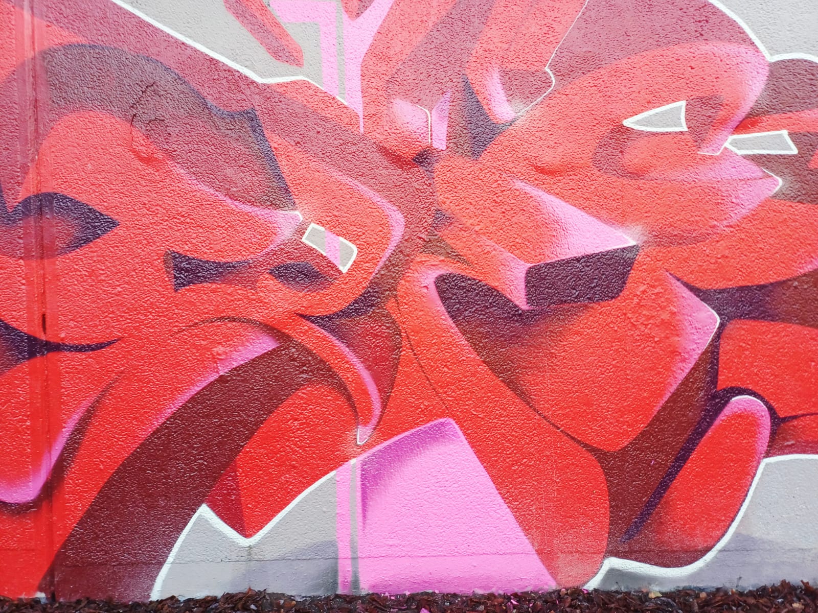 The graffiti on the left and on the right are from EMOR and the artwork on the far right is from LARGE