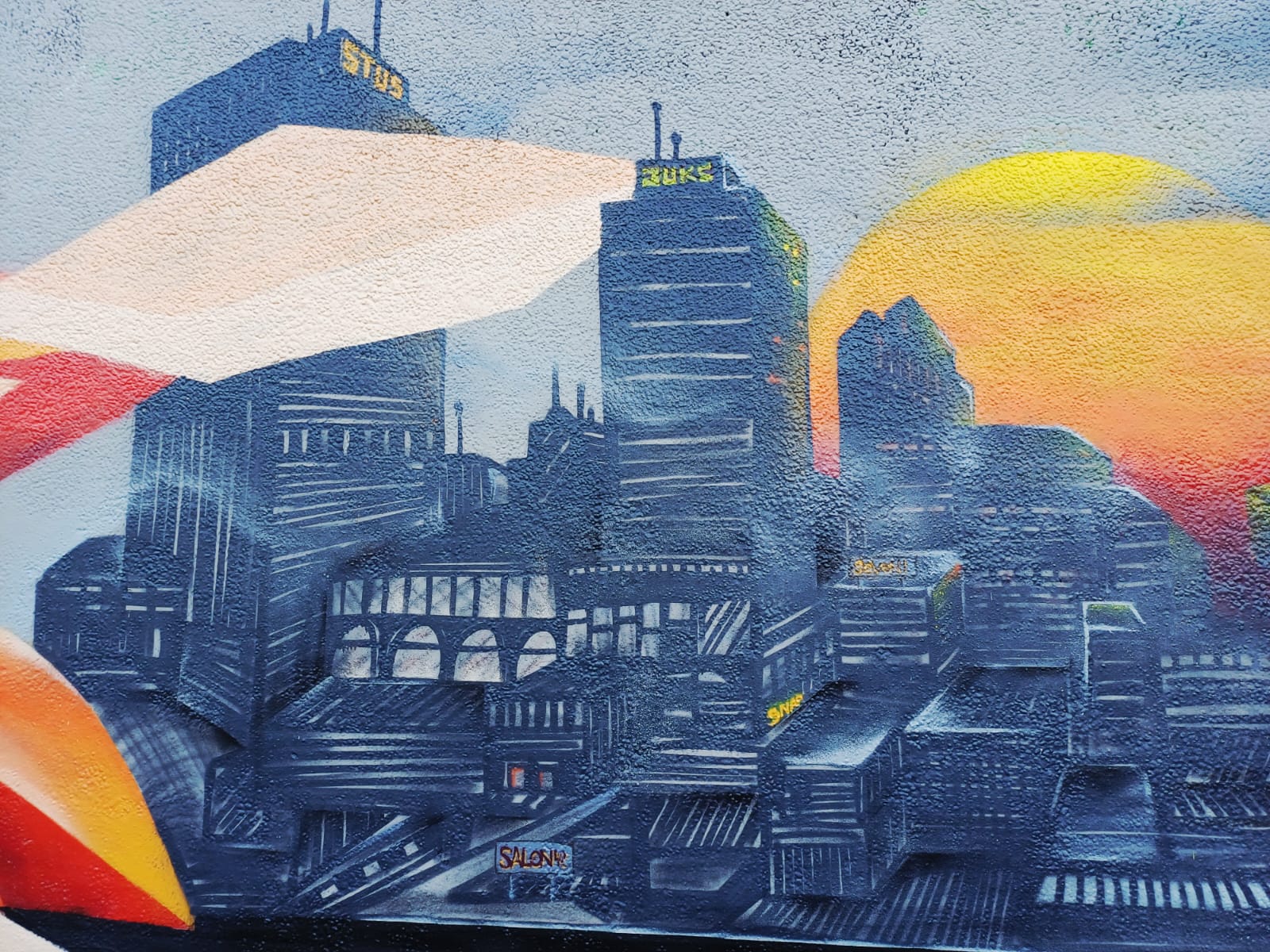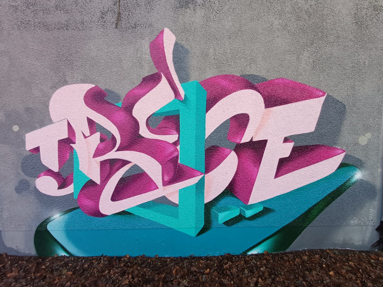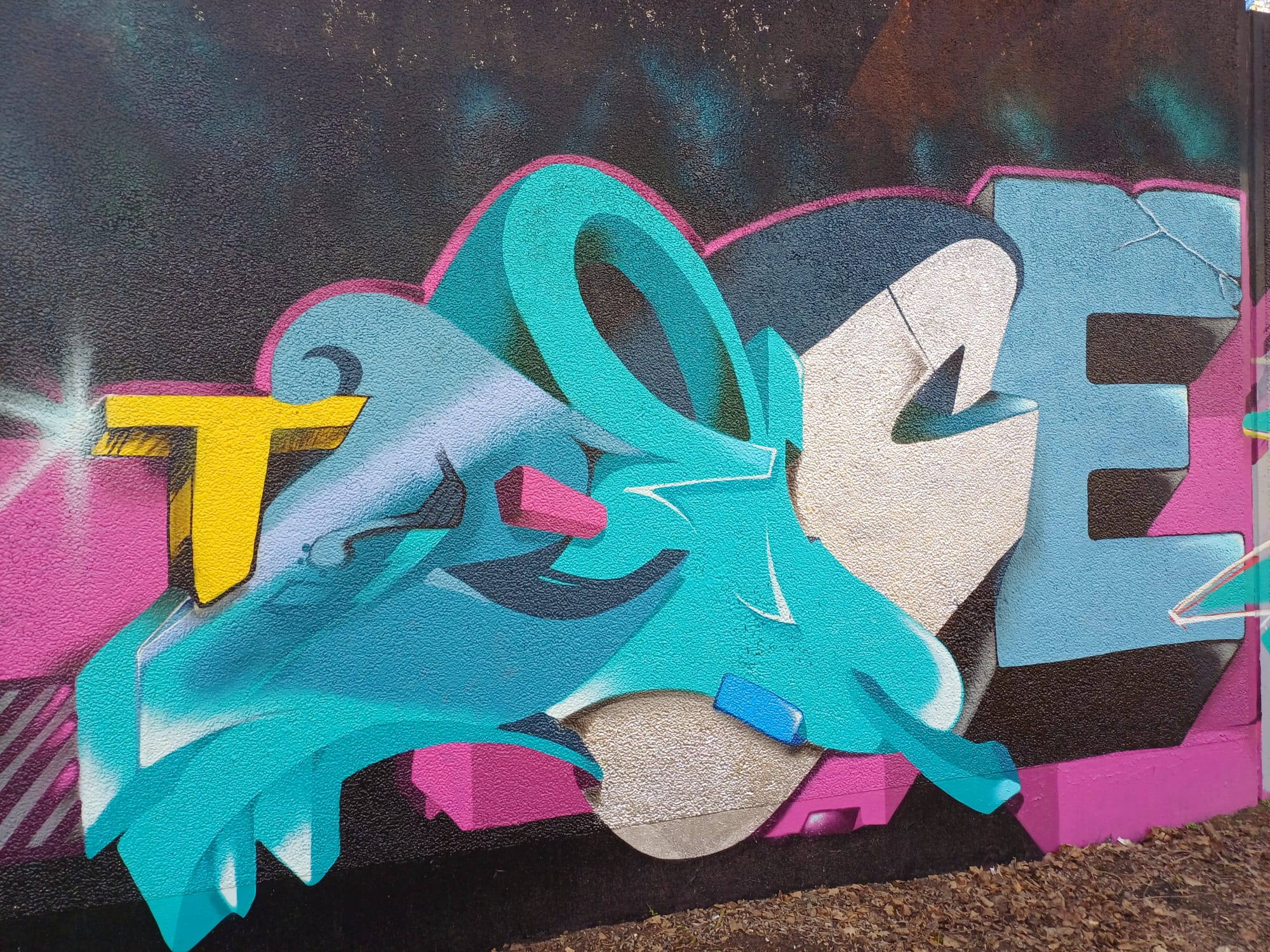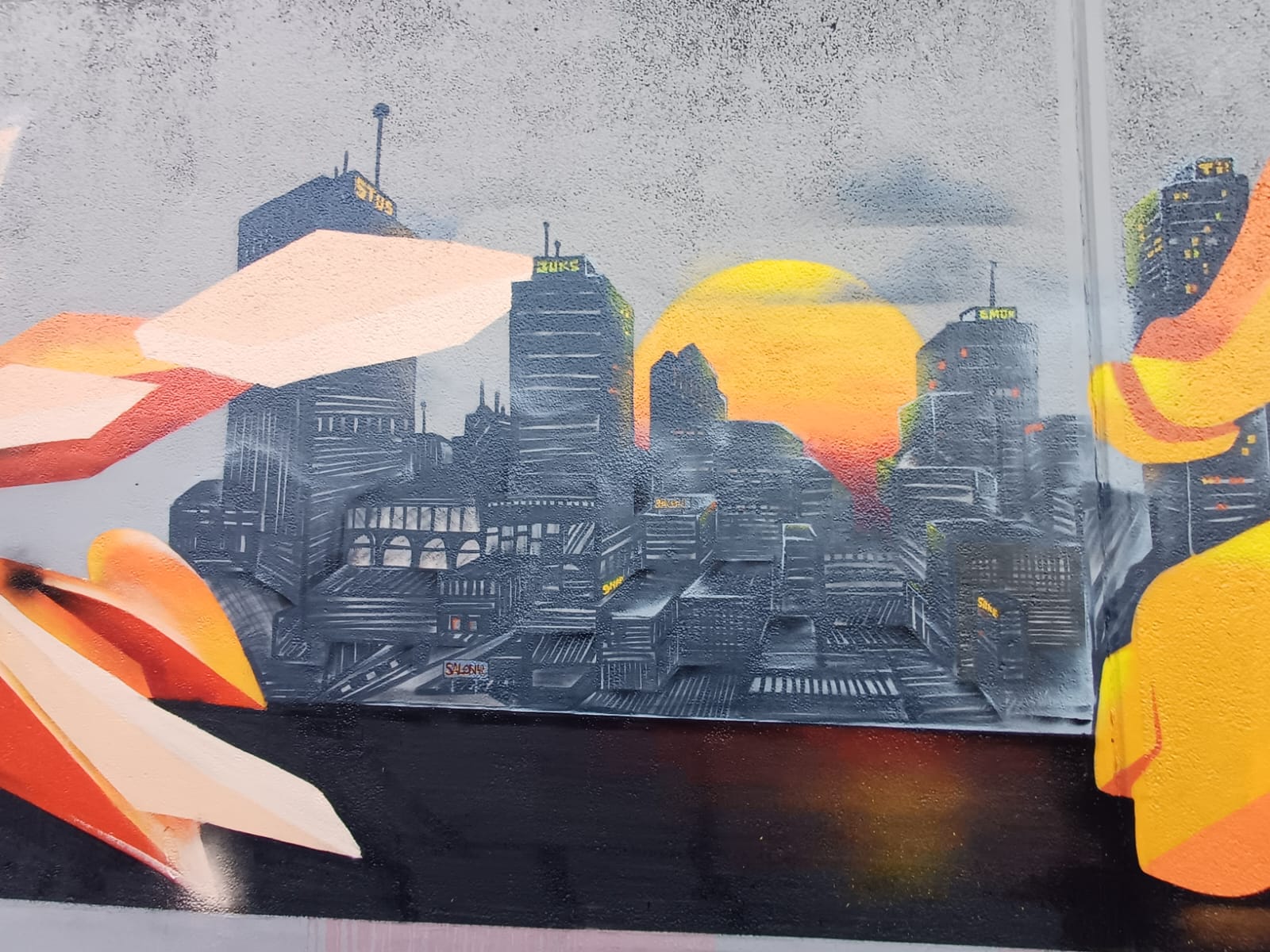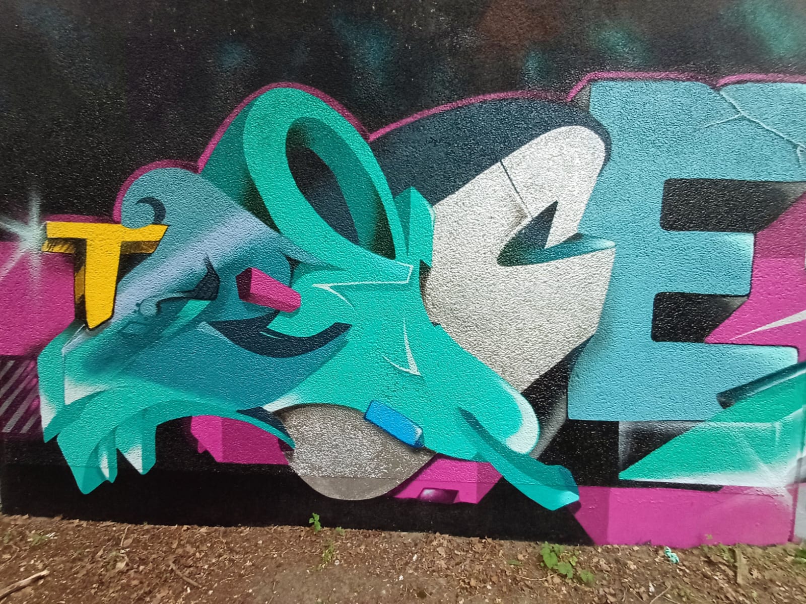 The graffiti on the left and on the right are from EMOR and the artwork on the far right is from LARGE