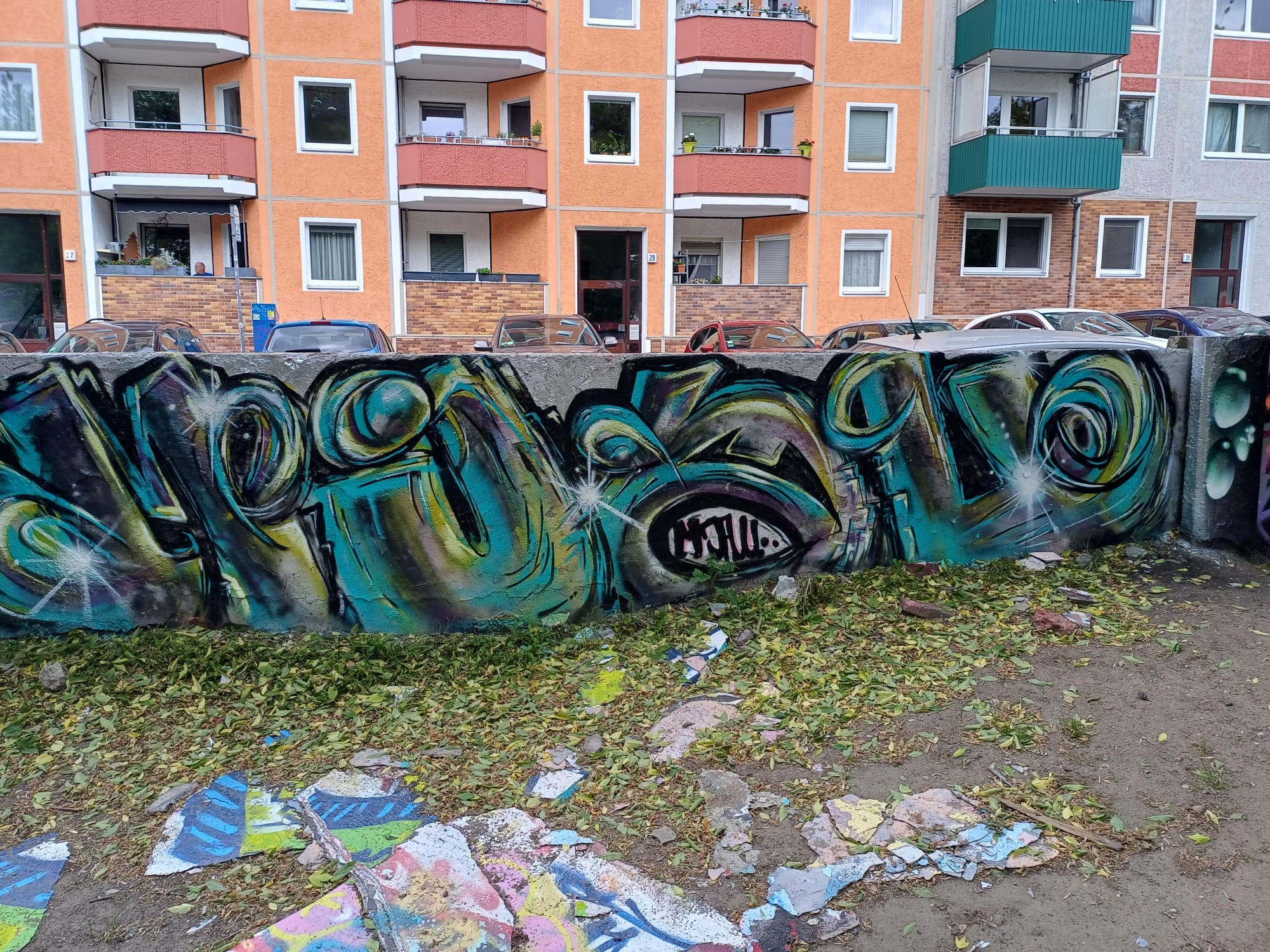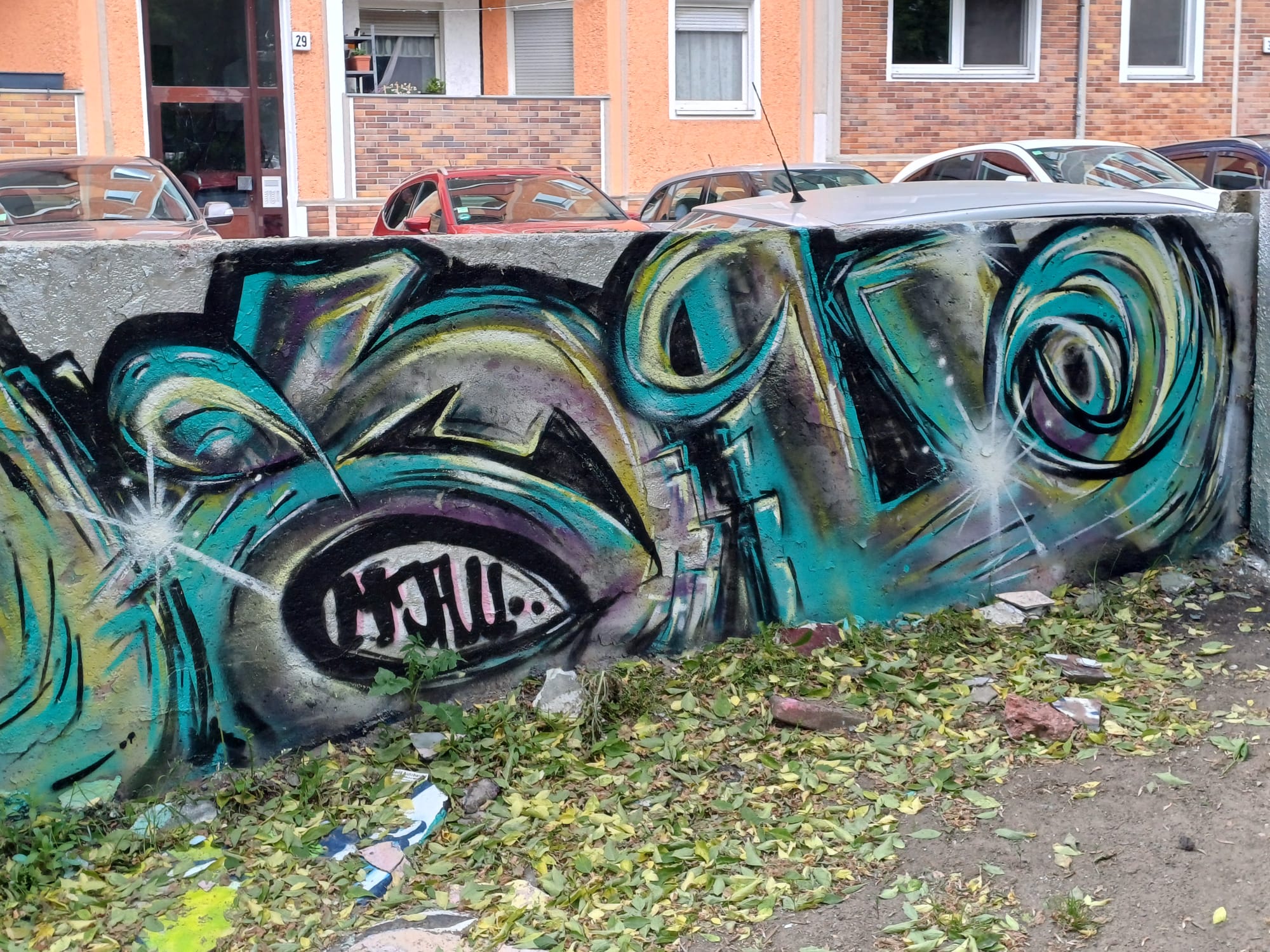 GERMANY: Streetart Berlin – Friedrichshain – Helsingforser 25 – Graffiti Wall – MJAU
