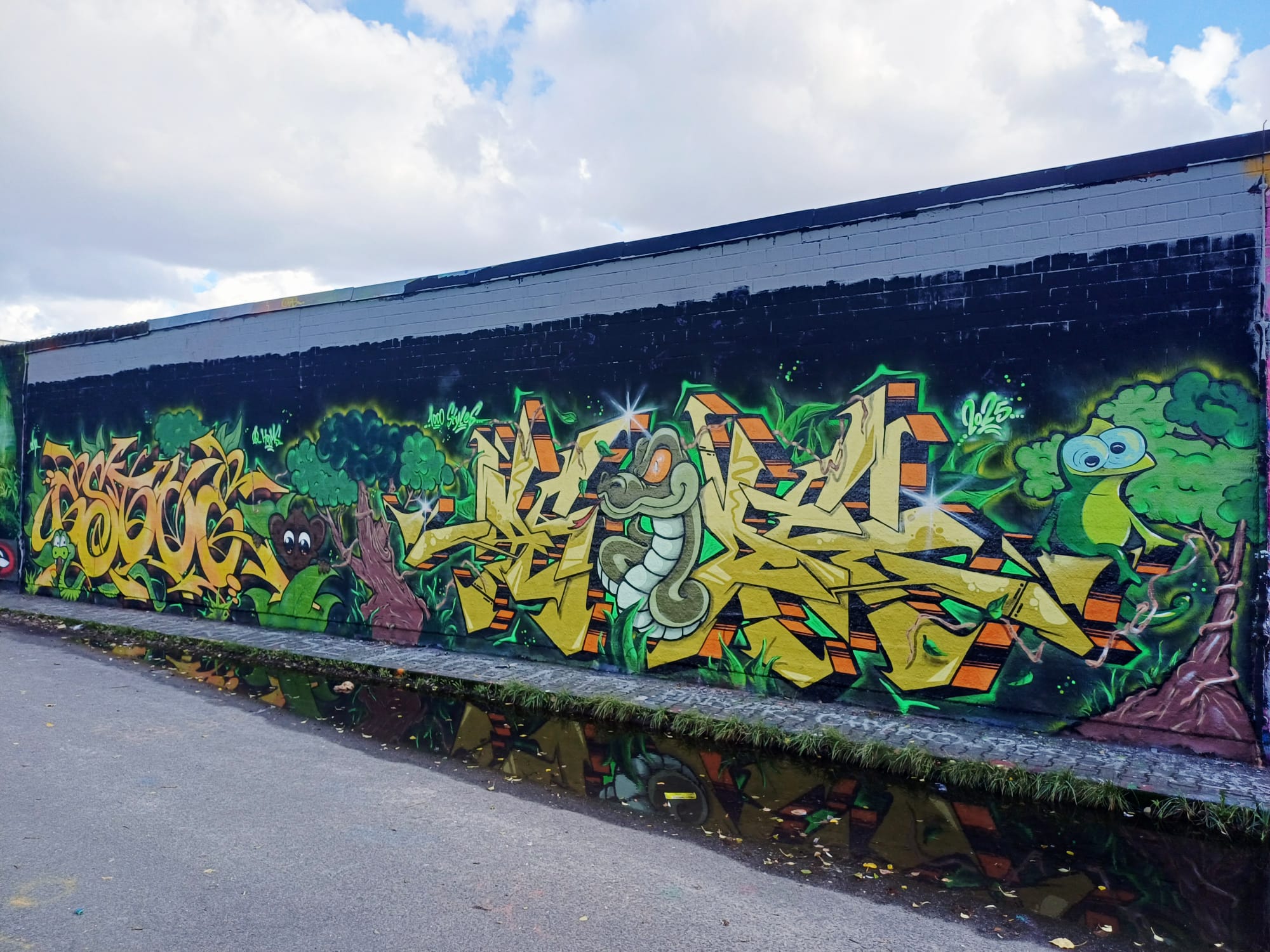 The frog was made by LEFT, the sheep is from AMPER and the graffiti on the far right was made by ESTO