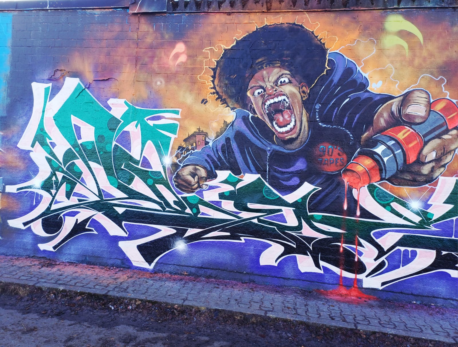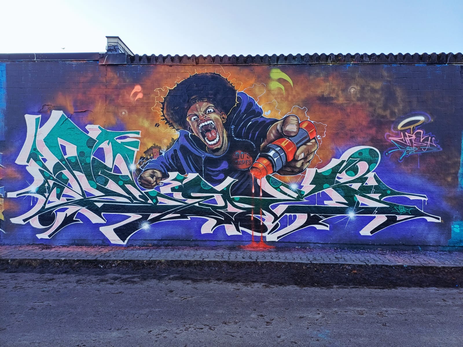 The graffiti on the left are from ACKO and ESTO, and the portrait on the left was made by MON