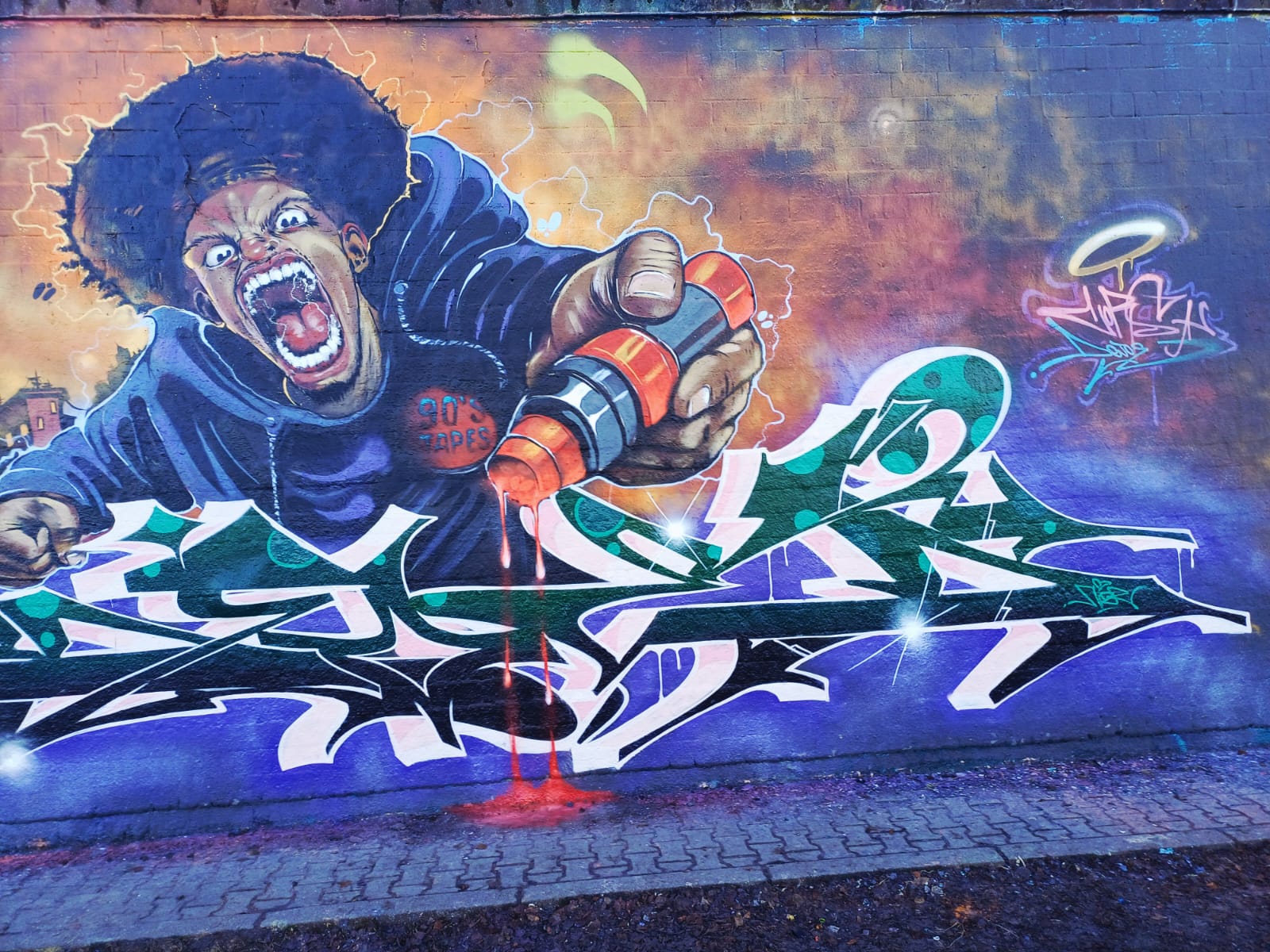 The graffiti on the right are from HEMA and MONKEE, and the dragon on the far right was made by SIMBL