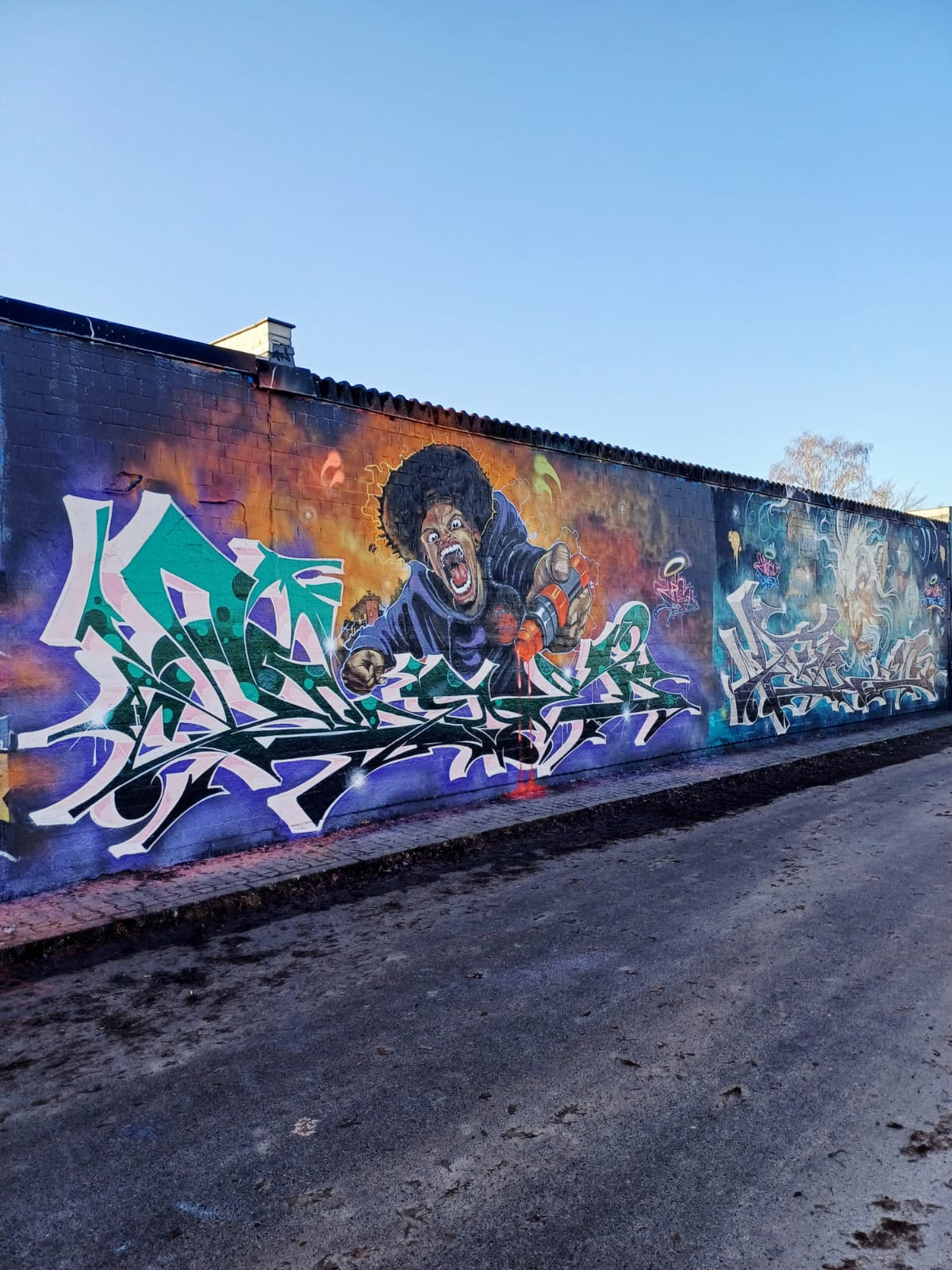 The graffiti on the left are from SAMK and PHOS and the artworks on the right were made by TONCÉ, and OSLO