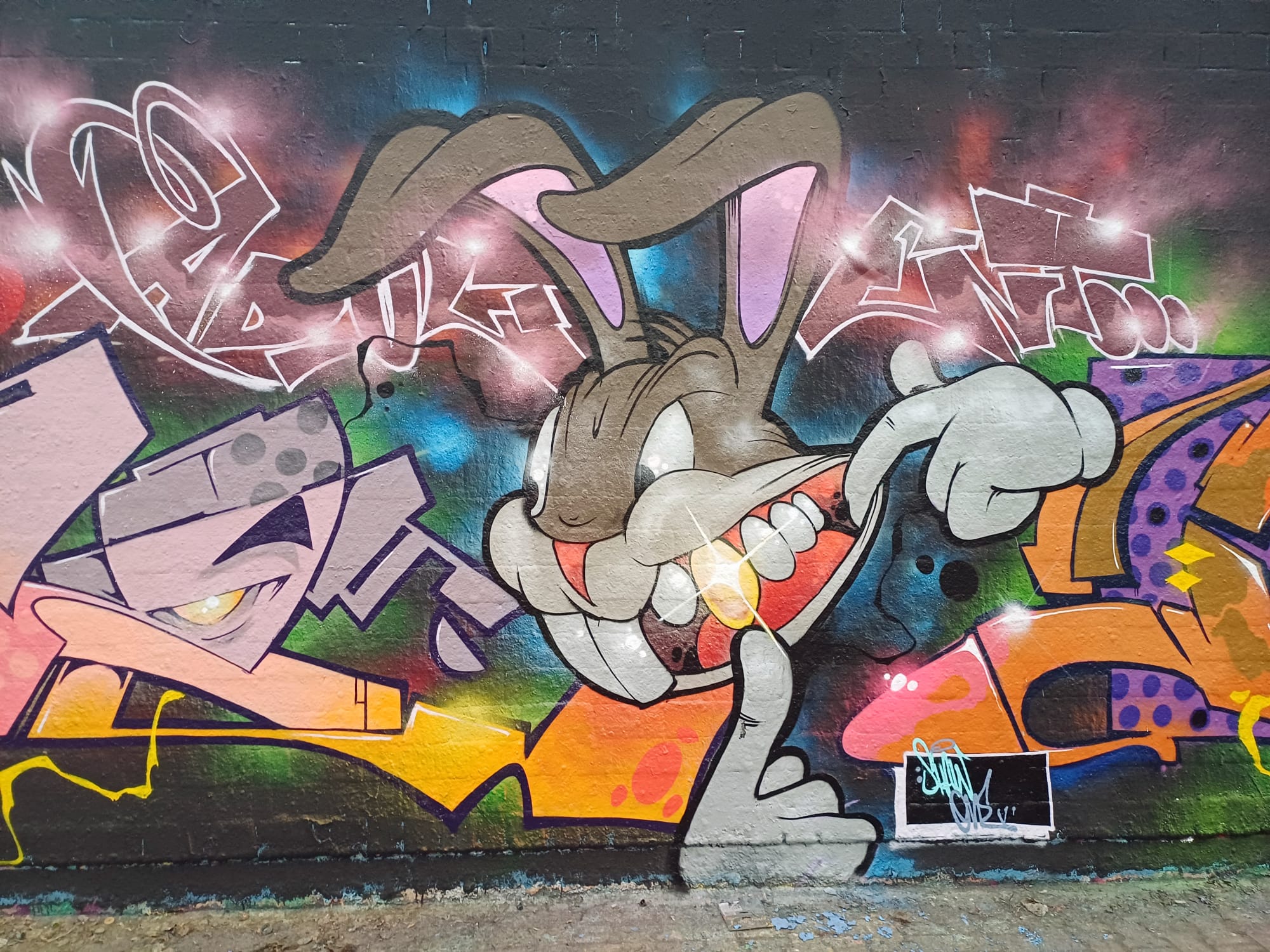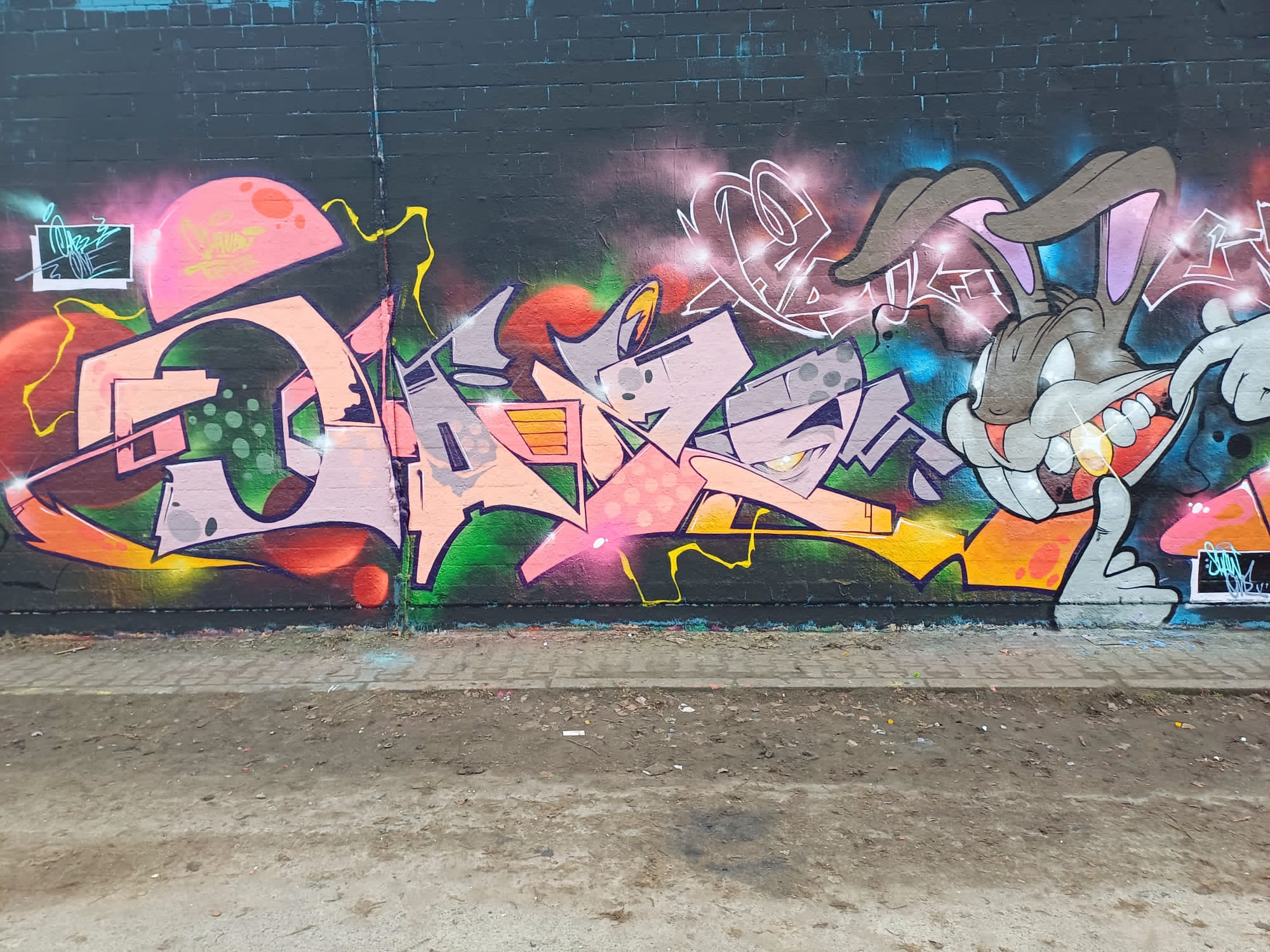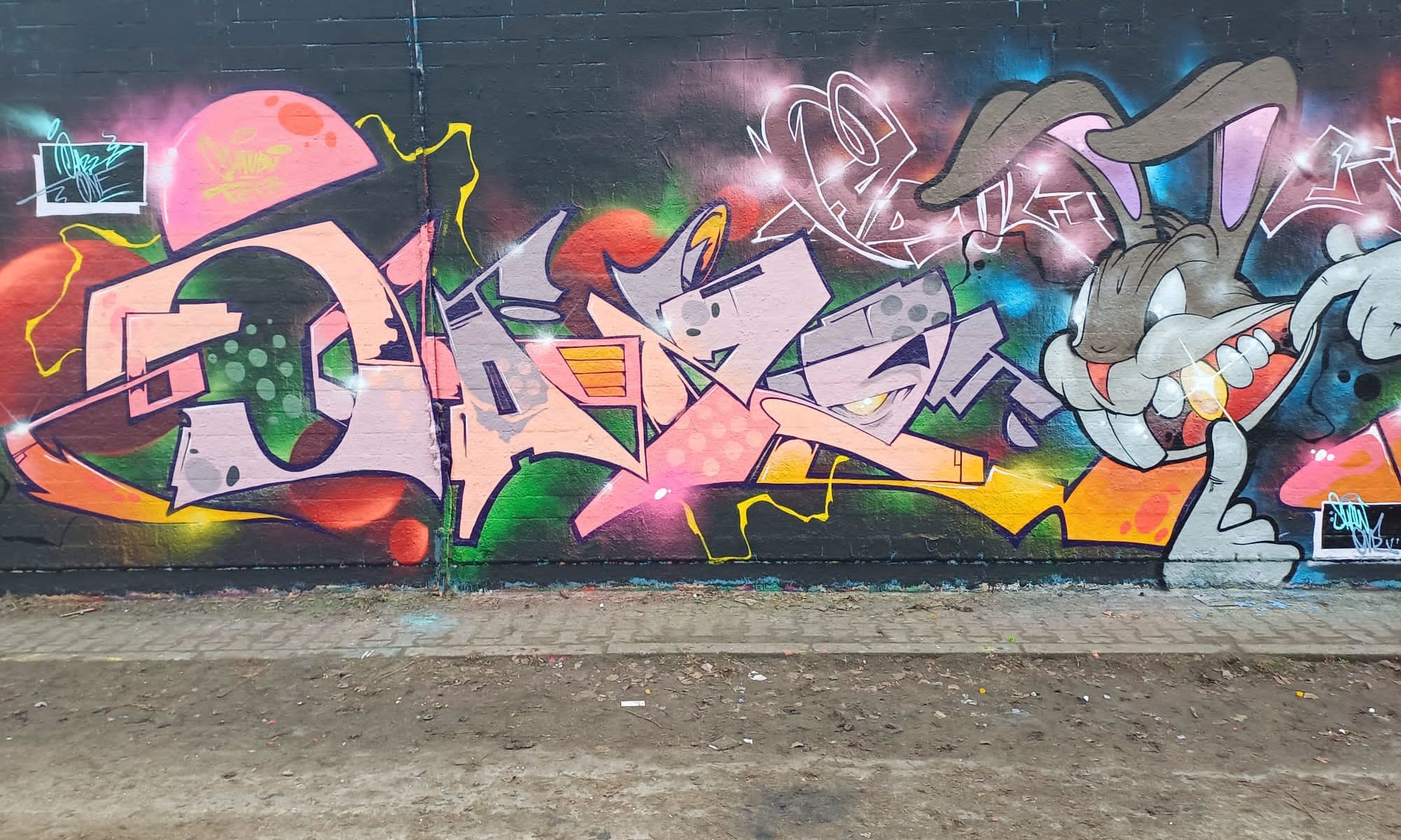 The artworks on the far left are from CORS ONE, DEJOE and INKA, and the graffiti on the far right were made by YASNO, PHOBYA and PHERS