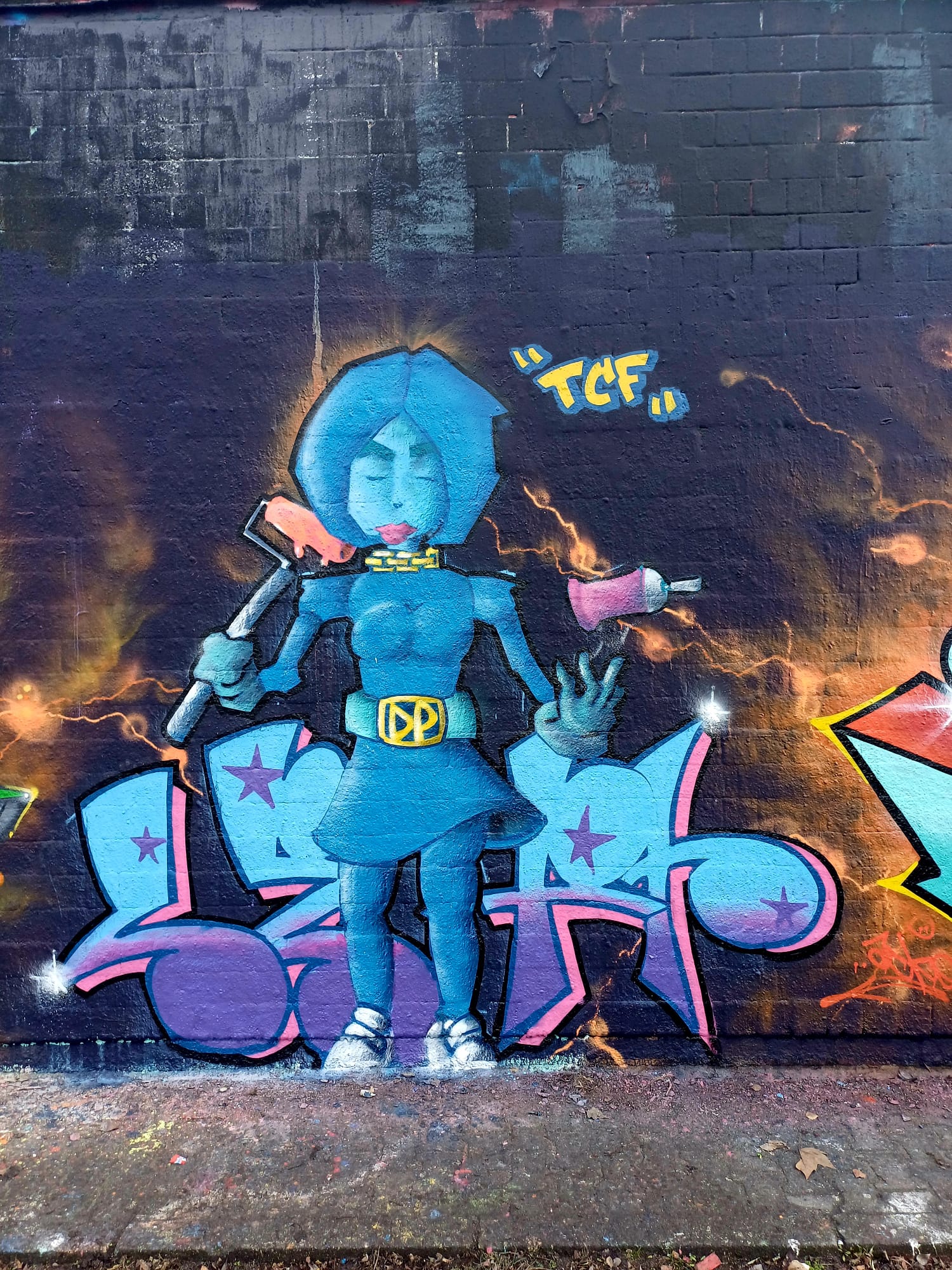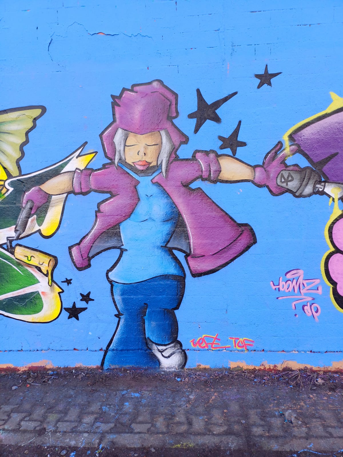 The character was made by LEFT and the graffiti is from ACKO aka LATE aka EF16