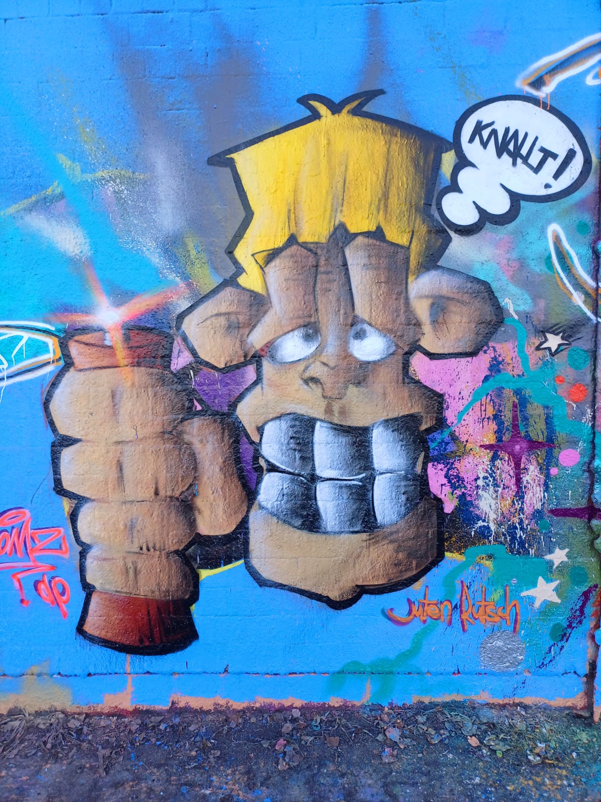 The graffiti to the right with Coyote and Tweety was made by ACKO aka LATE aka EF16