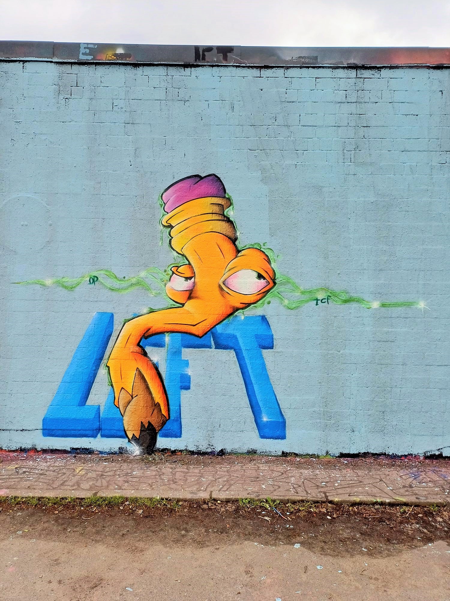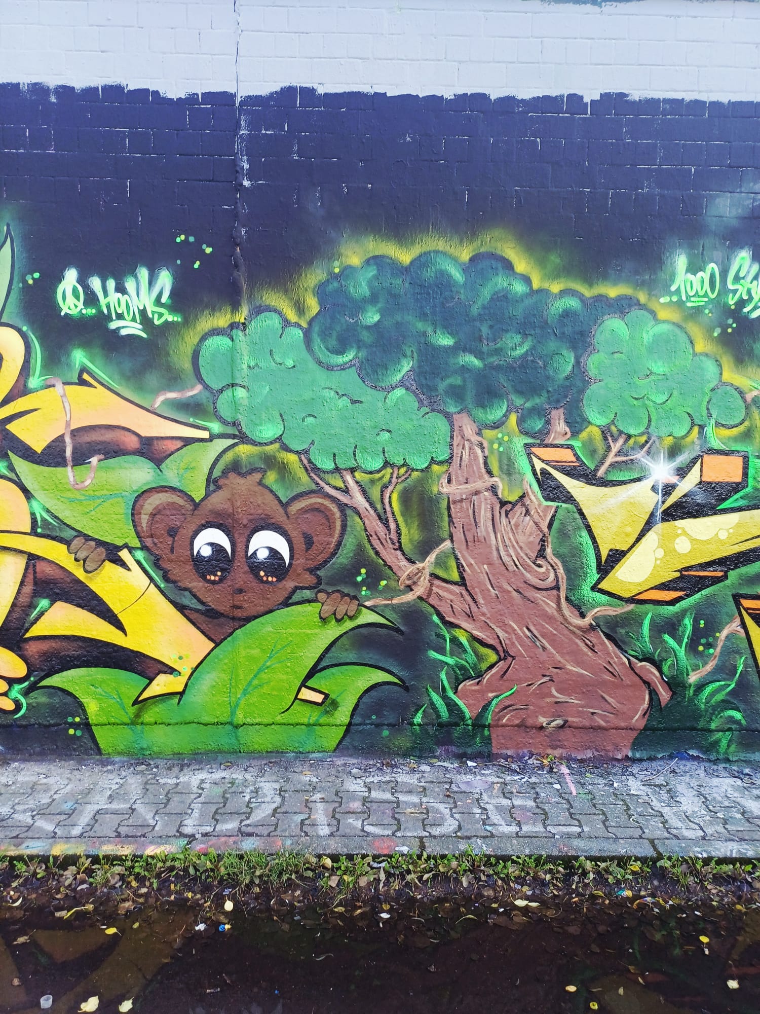 The graffiti on the left is from ACKO and the sheep was made by AMPER