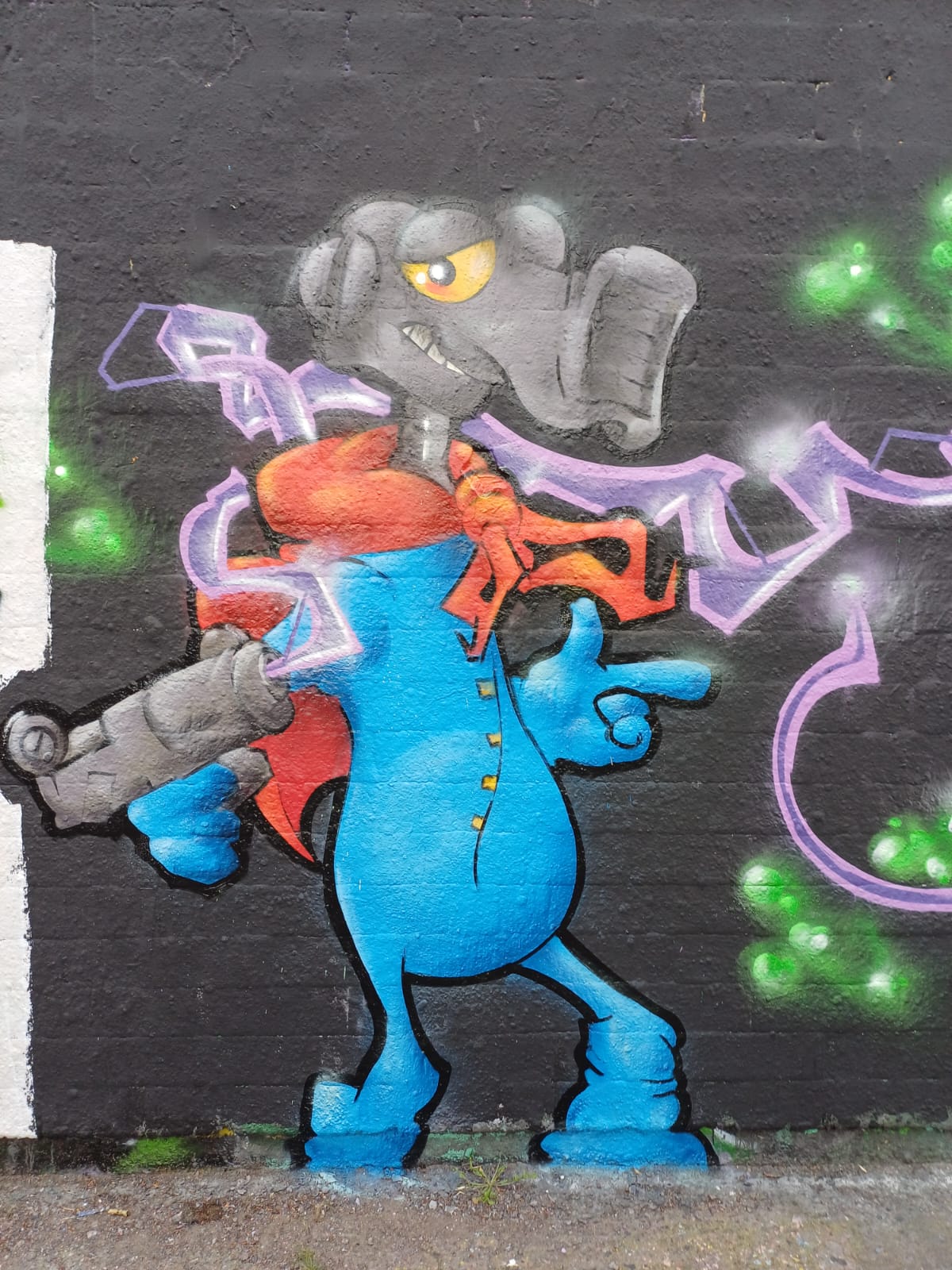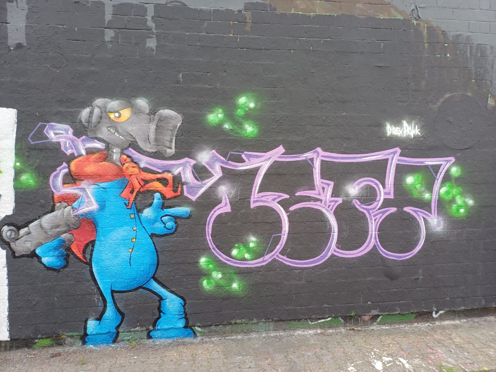 The character is from LEFTONE and the graffiti was made by HOOMZER