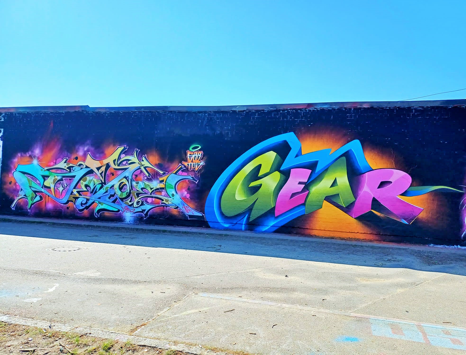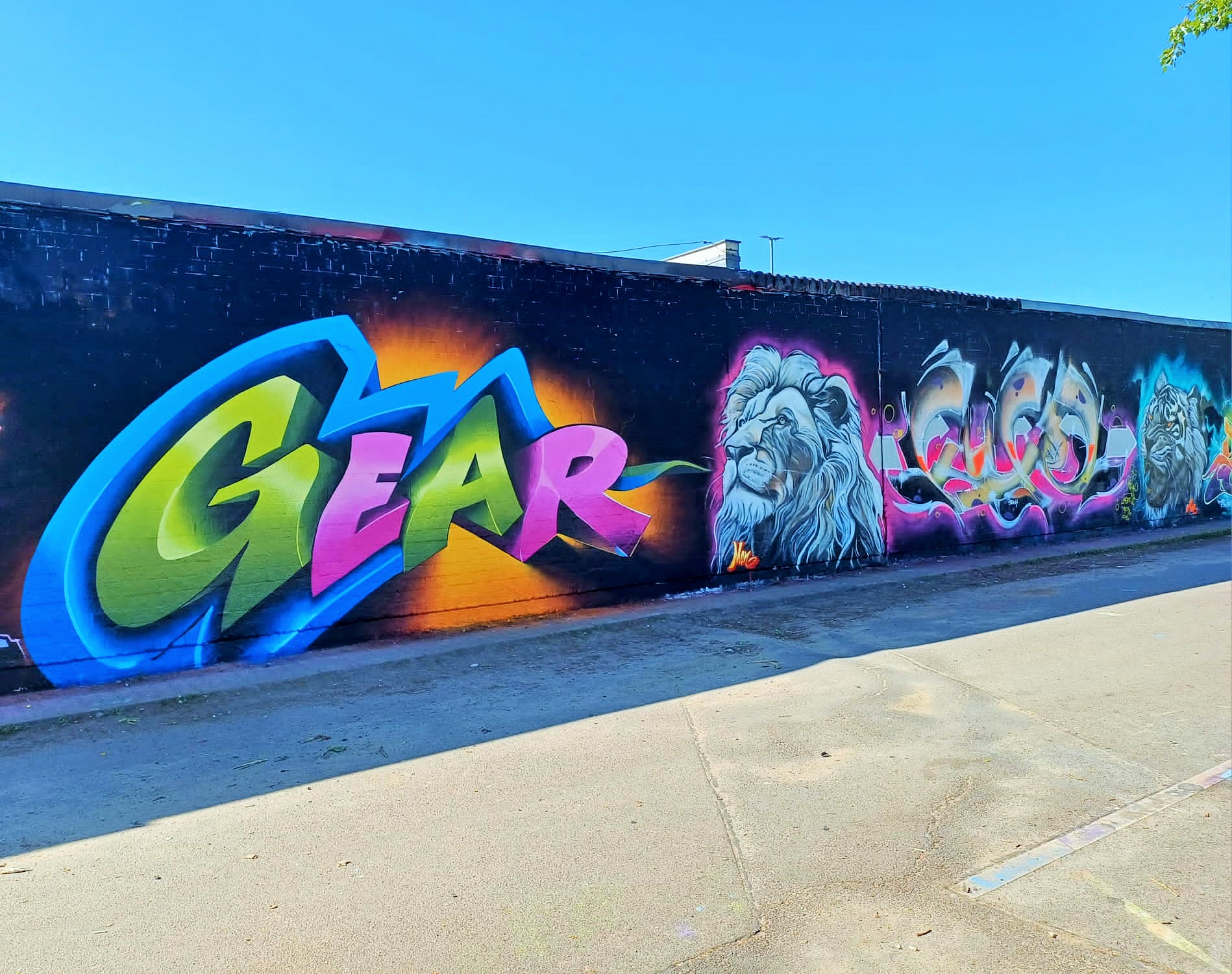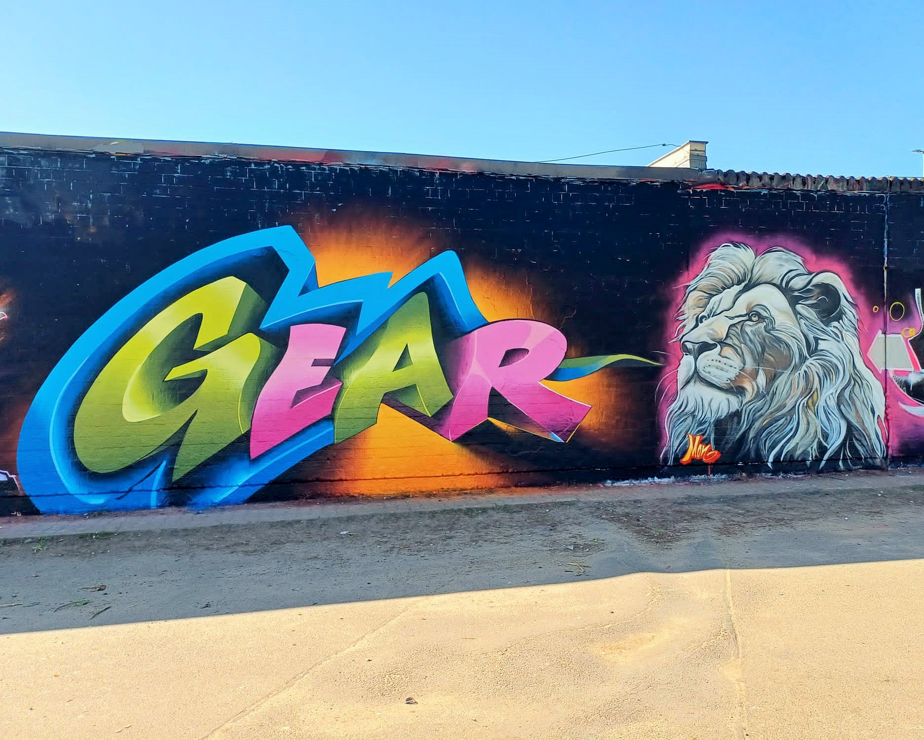 The graffiti on the left is from DEJOE and the lion on the right was made by MON
