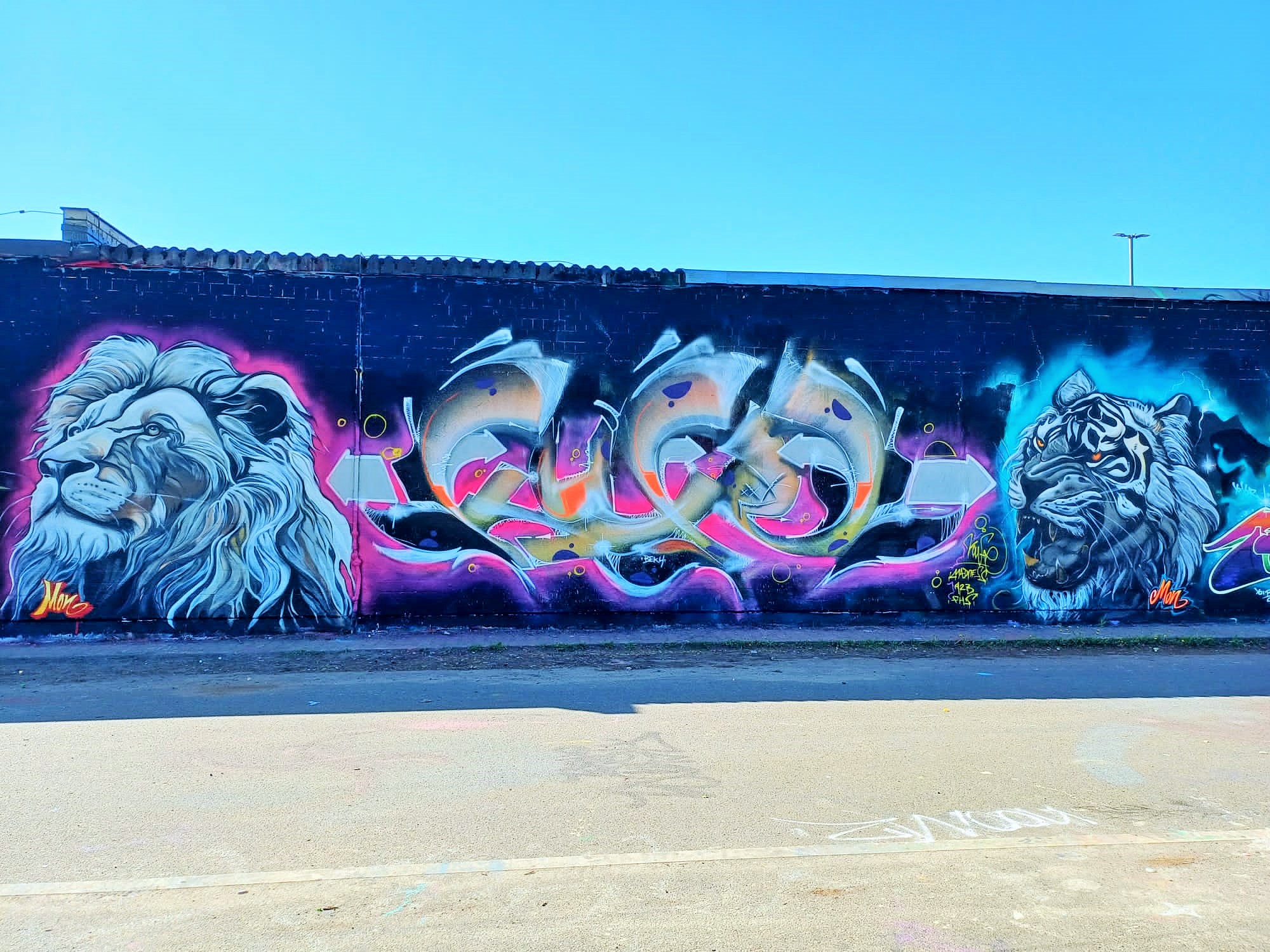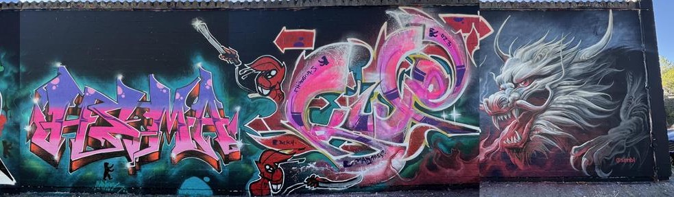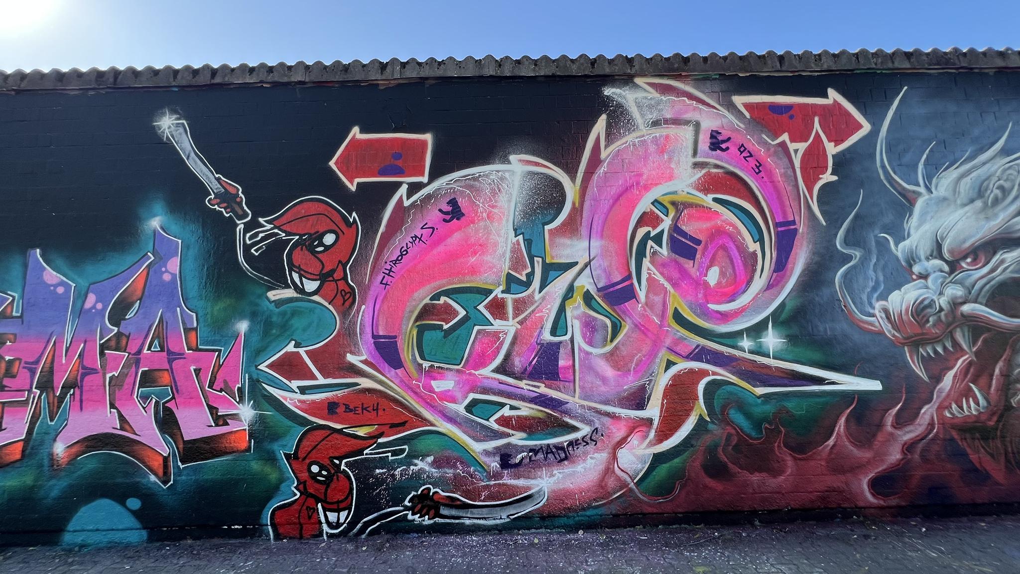 The dragon on the far left is from MON, the following graffiti were made by SWEET, DEJOE and HEMA, and the dragon on the right was made by SIMBL