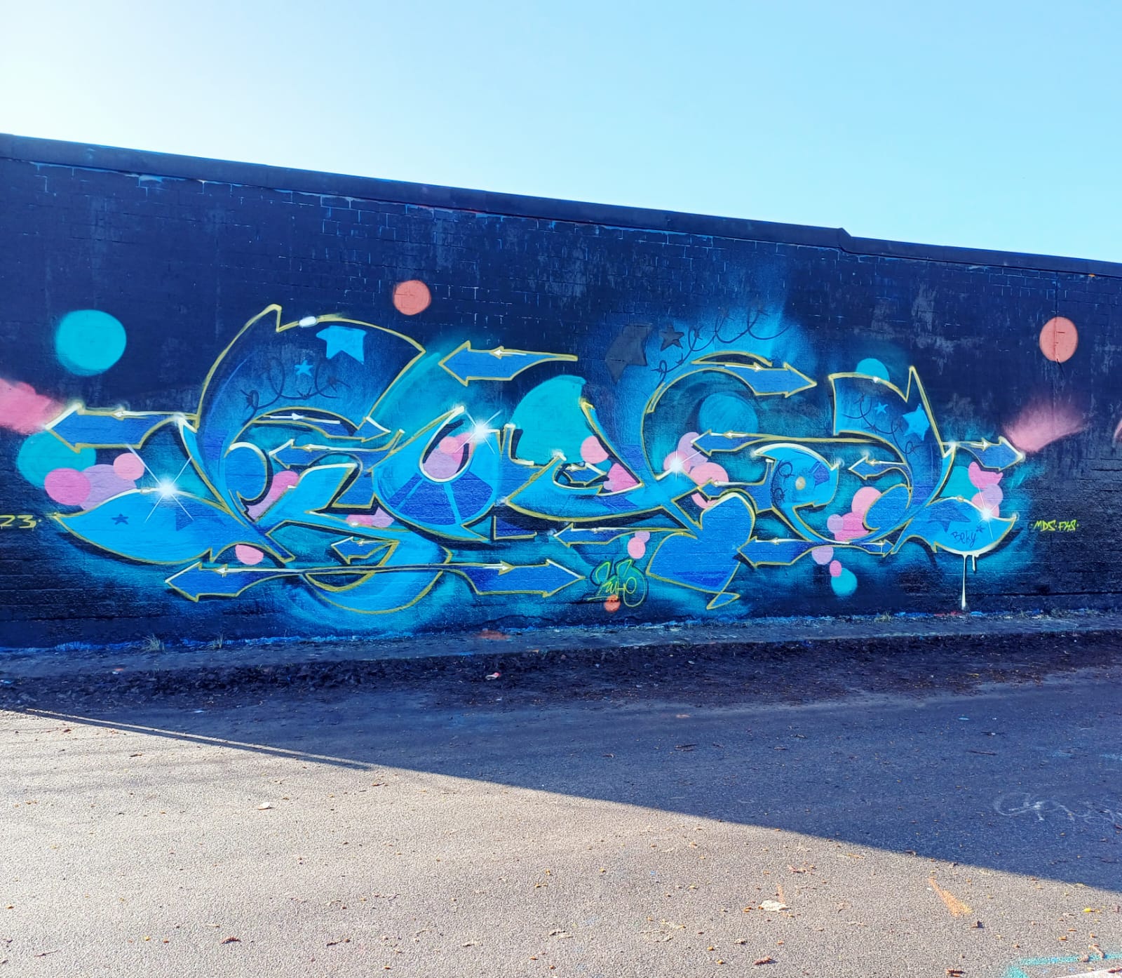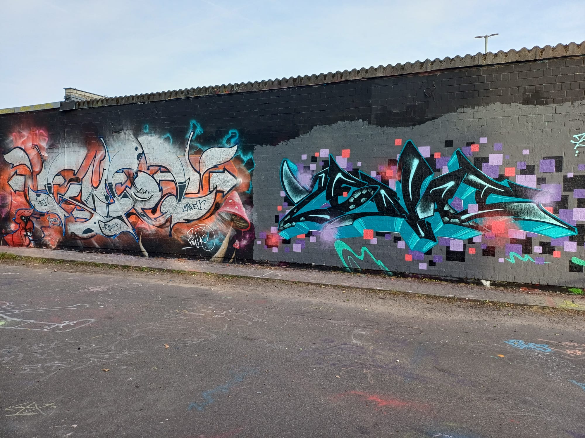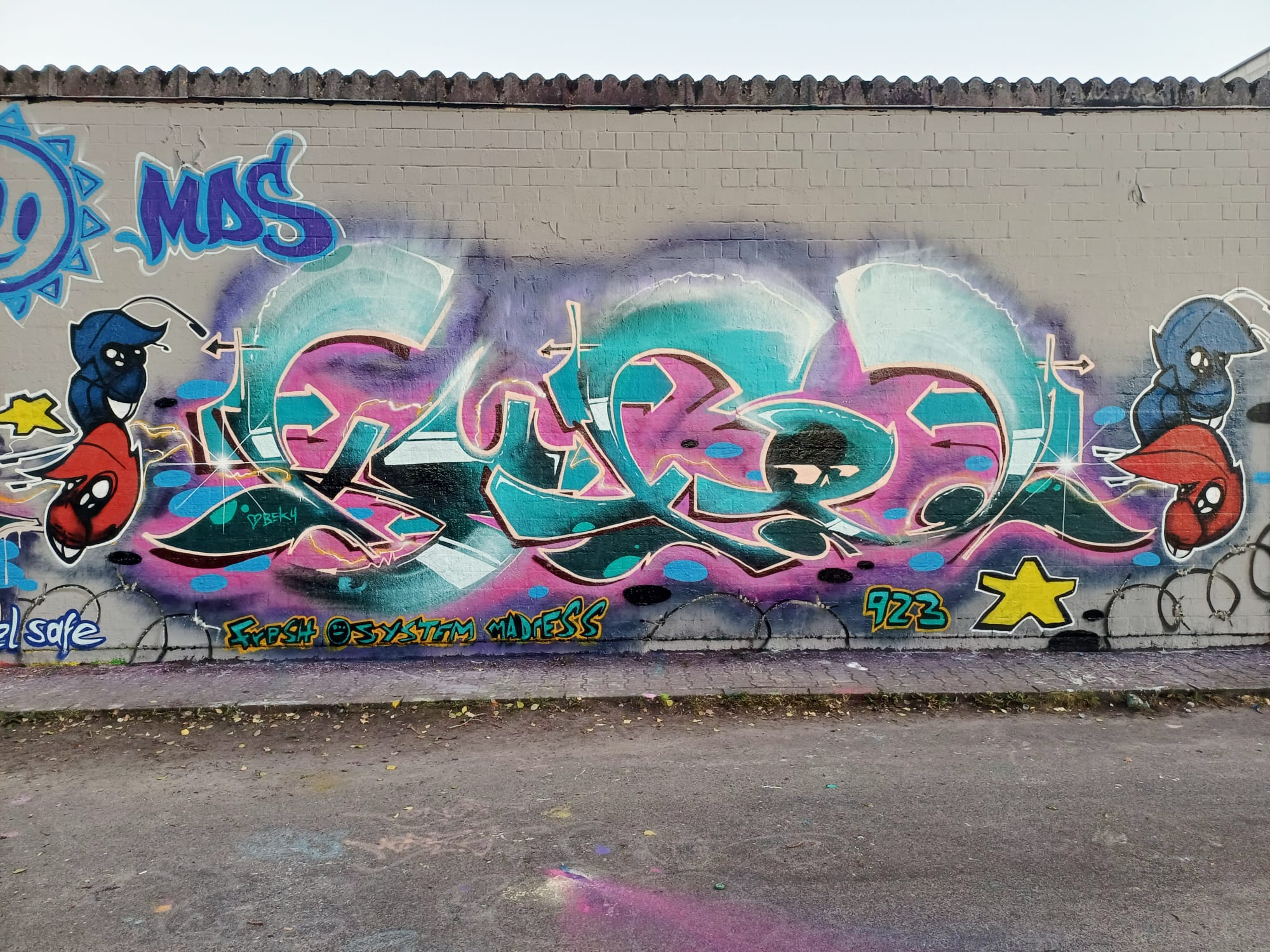 The graffiti on the left are from HEMA 79 and ACKO, and the characters were made by LEFT