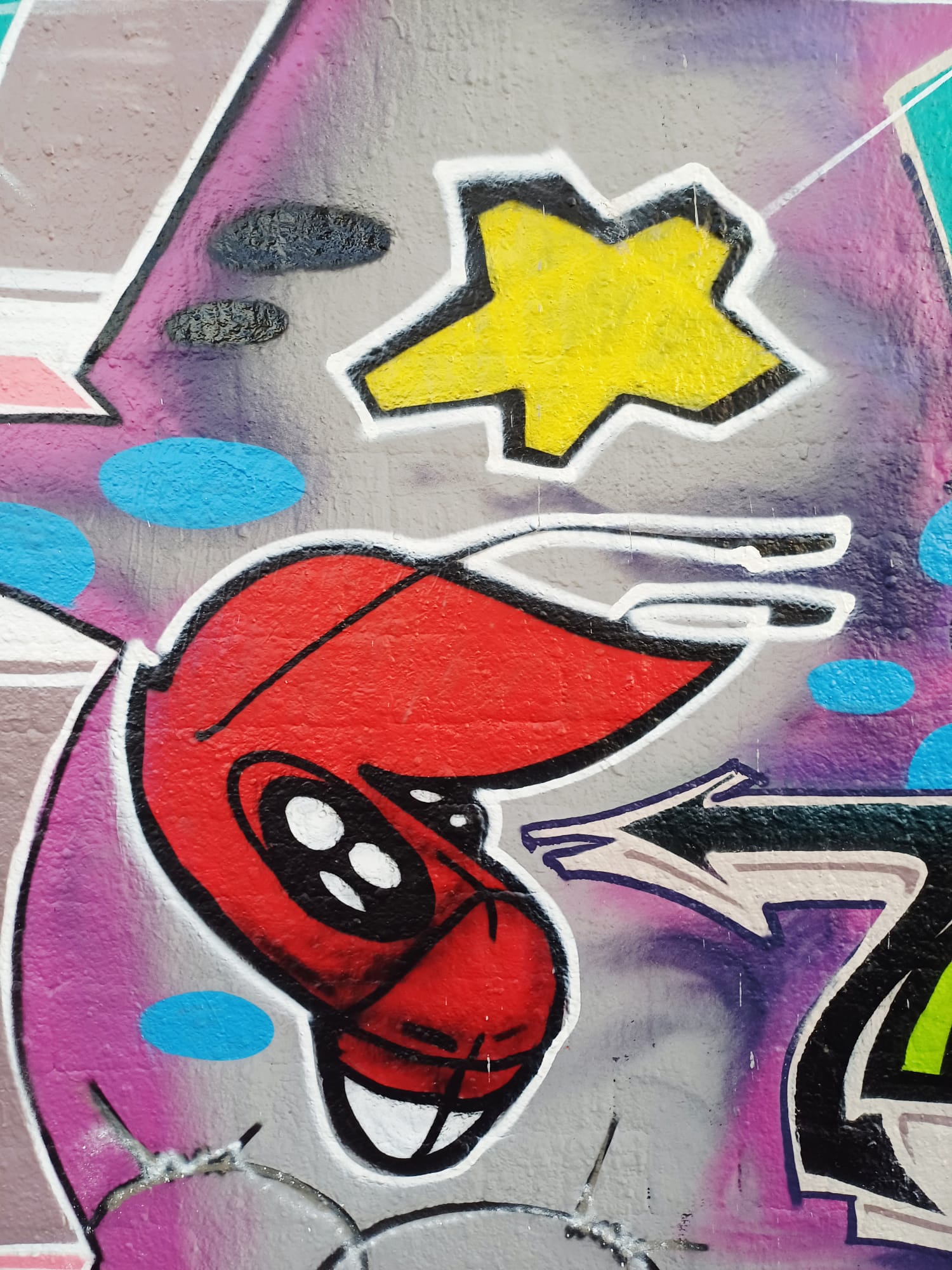 The character on the left is from CORS ONE, the graffiti on the left from DEJOE and the next artwork was made by HEMA79