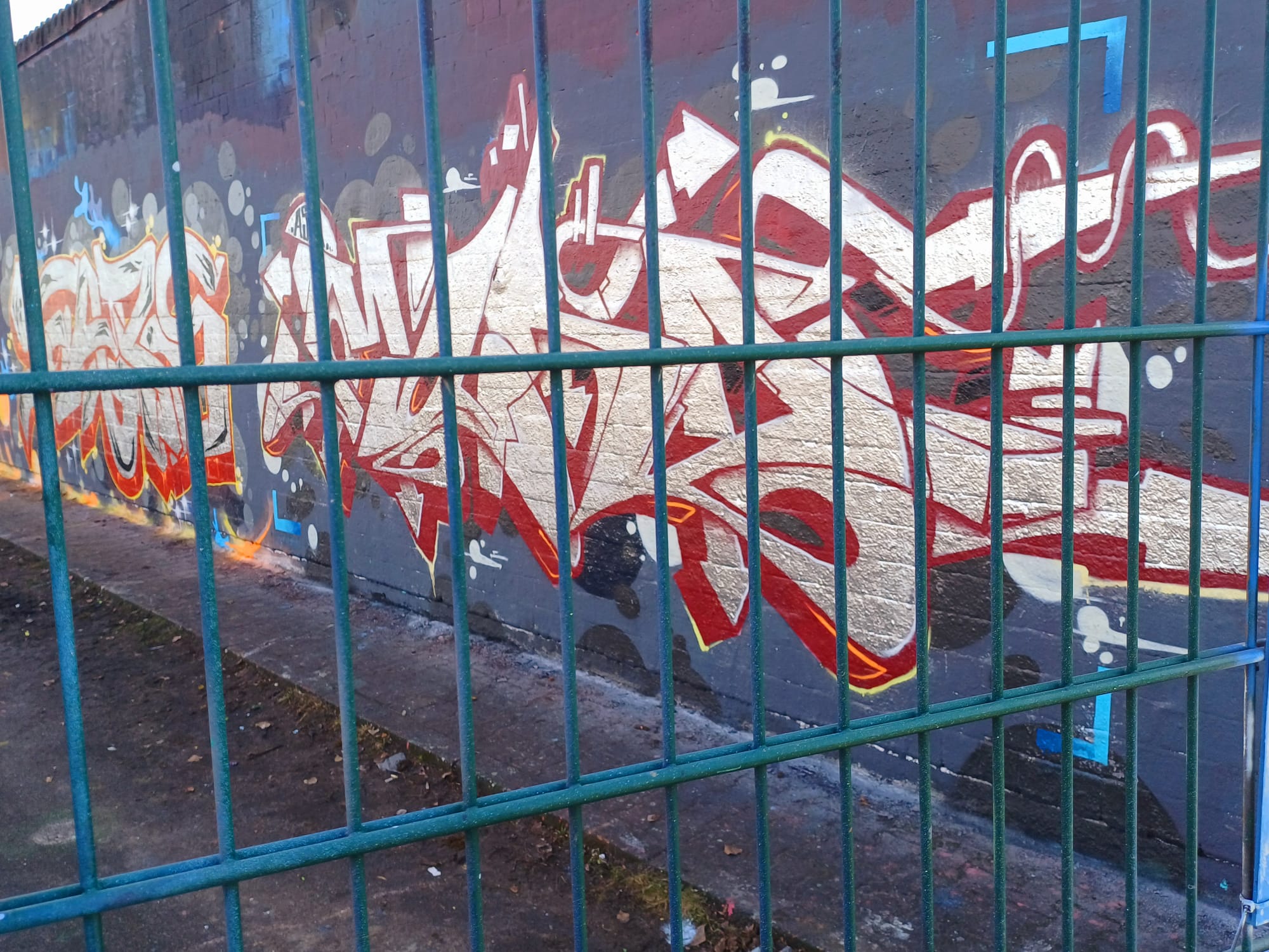 The graffiti on the left is from FABS and the graffiti around the corner to the right was made by SAMK
