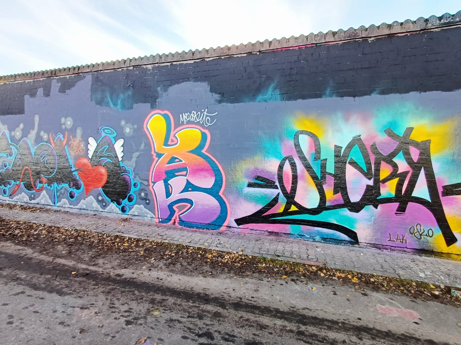The artworks on the left are from ACKO, HOOMS, AMPER, FEIK and  LEFT, and the graffiti on the far right is from WIEK