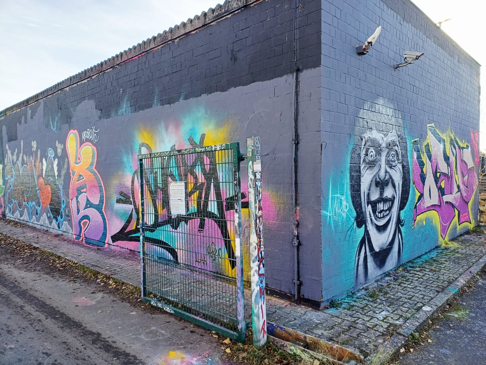 The portrait around the corner to the right is from AMPER and the graffiti was made by OSLO