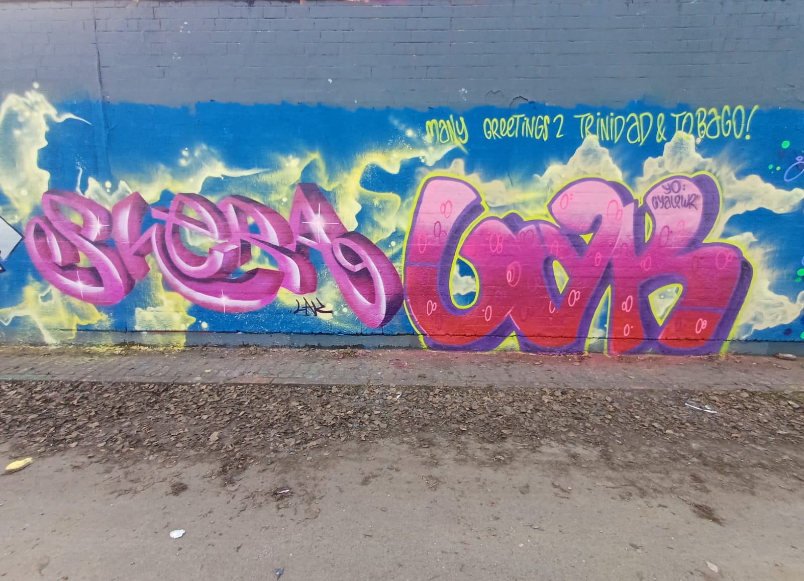This awesome graffiti wall was painted during the Father’s Day Jam on 26th May 2022. In between there is an artwork integrated into the wall by HOOMS and LEFT which they created at a previous spray session. The artworks from left to right were made by REK 53, SOUND, SAMK, MYA, HOOMS & LEFT (from previous event), HOOMS, AMSPEAR PEEKOPS, LEFT, ACKO.