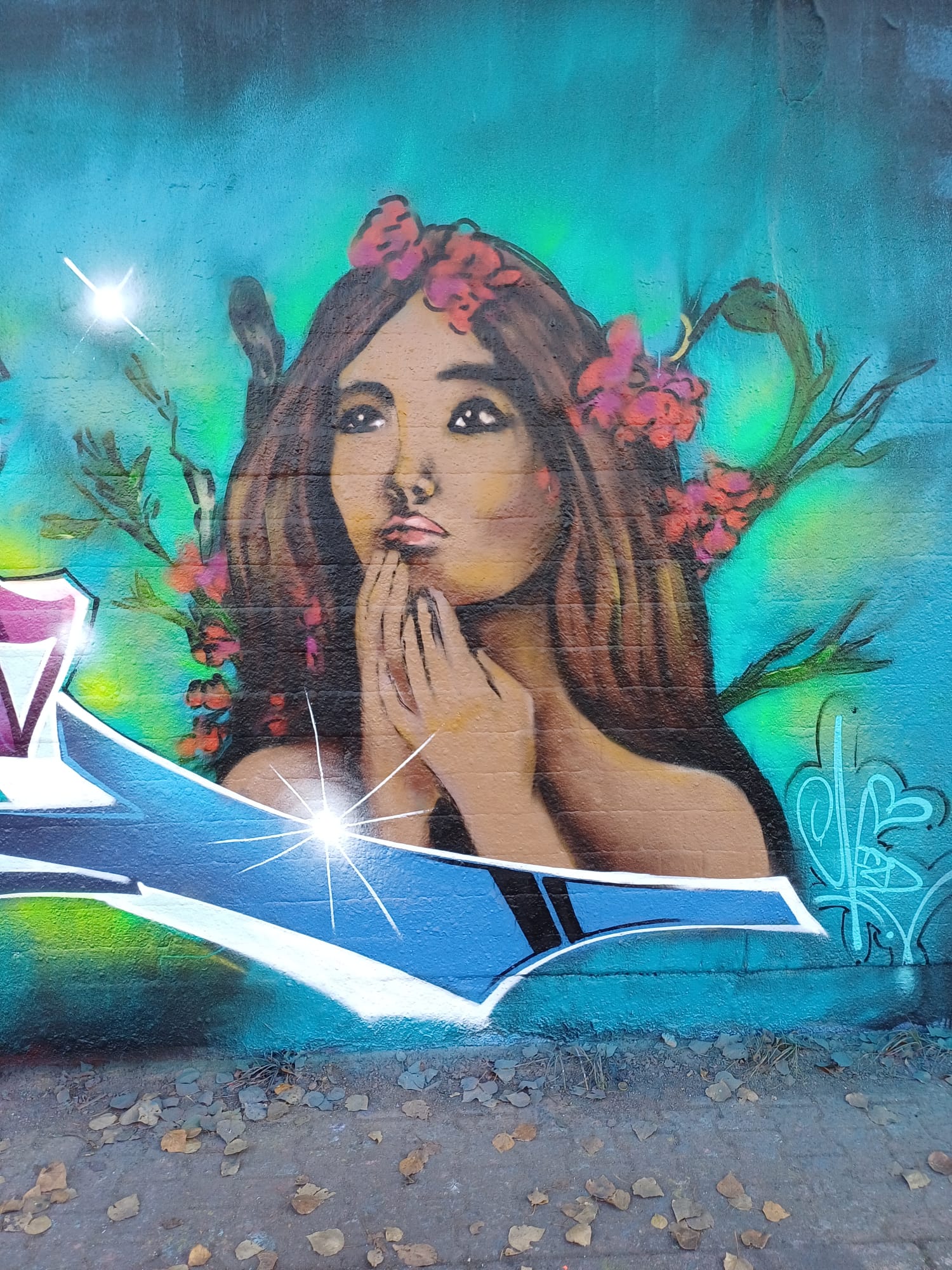 The clowny face on the left is from CORS ONE and the graffiti on the left was made by DEJOE