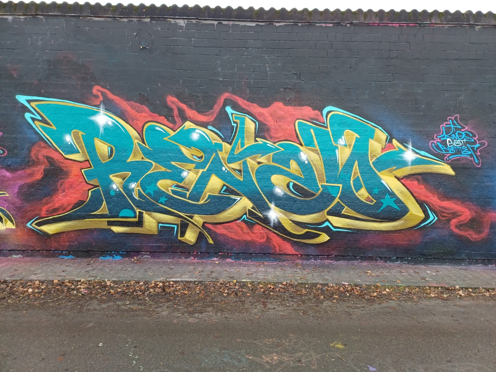 This great Candy Wall was made at the Birthday Jam for STEN 9540. The artworks from left to right were made by RENZO, BLUME, WORD, LAUSI and STEN 9540 and around the corner are two more graffiti from BOND and BKOME. Happy Birthday STEN!