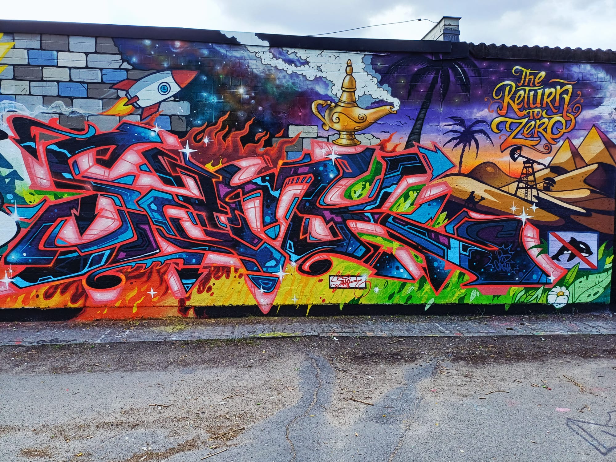 The graffiti on the left was made by ACKO and the bunny character is from AMPER