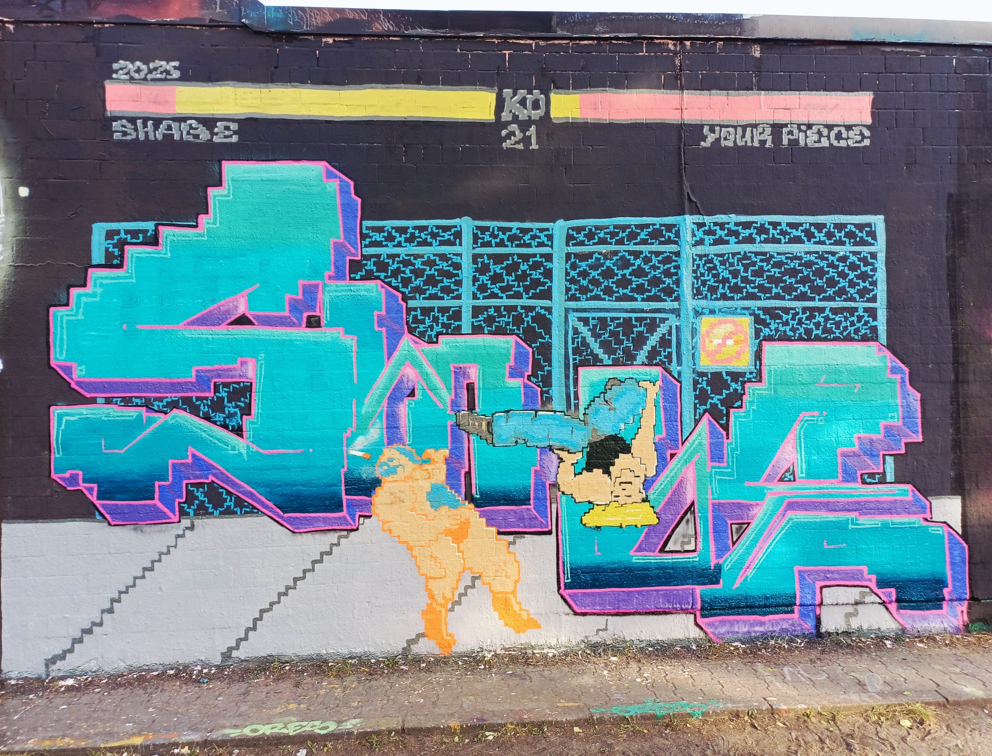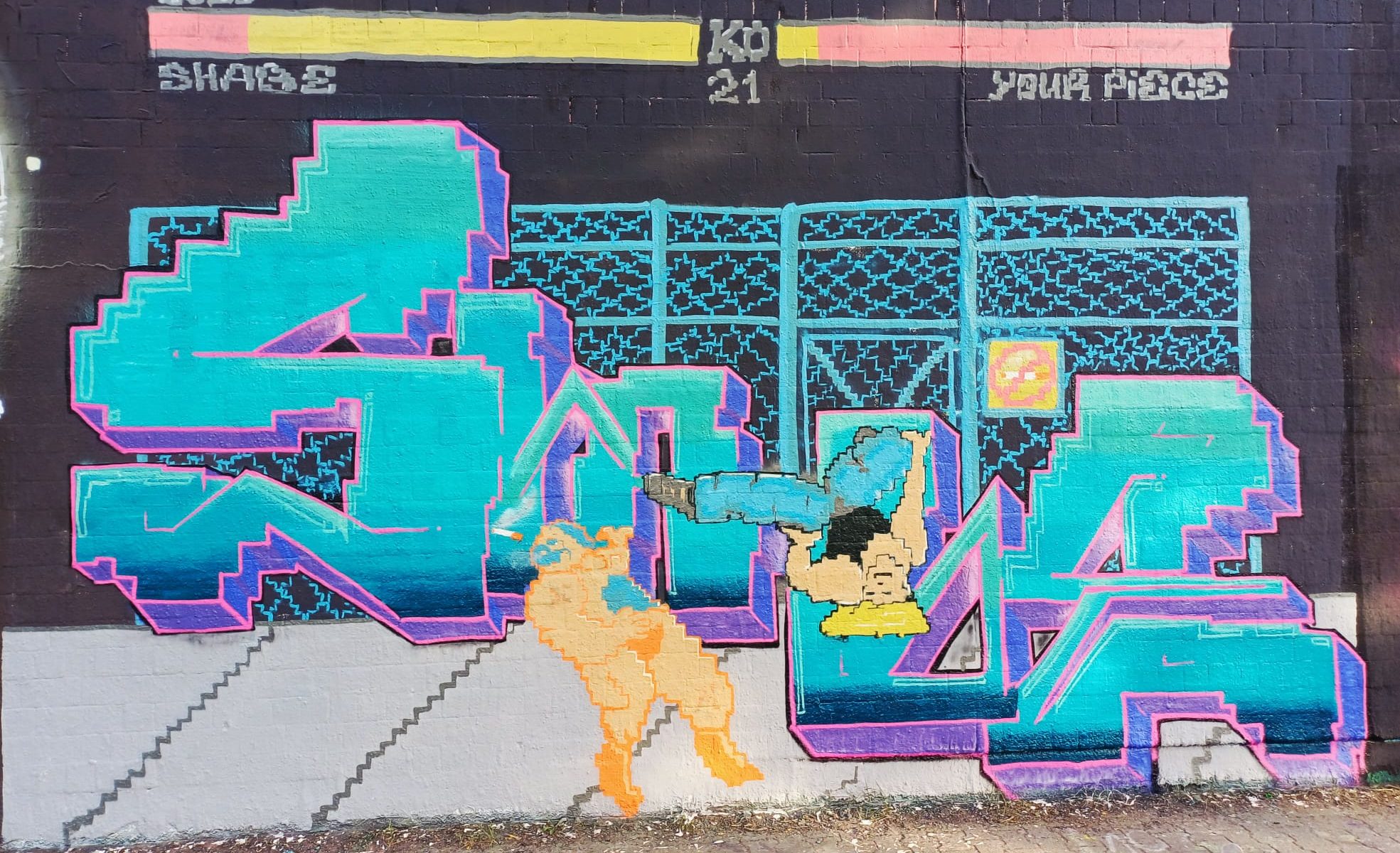 The graffiti on the right are from SHABE, DEJOE, CORS ONE, DANE and ZORA
