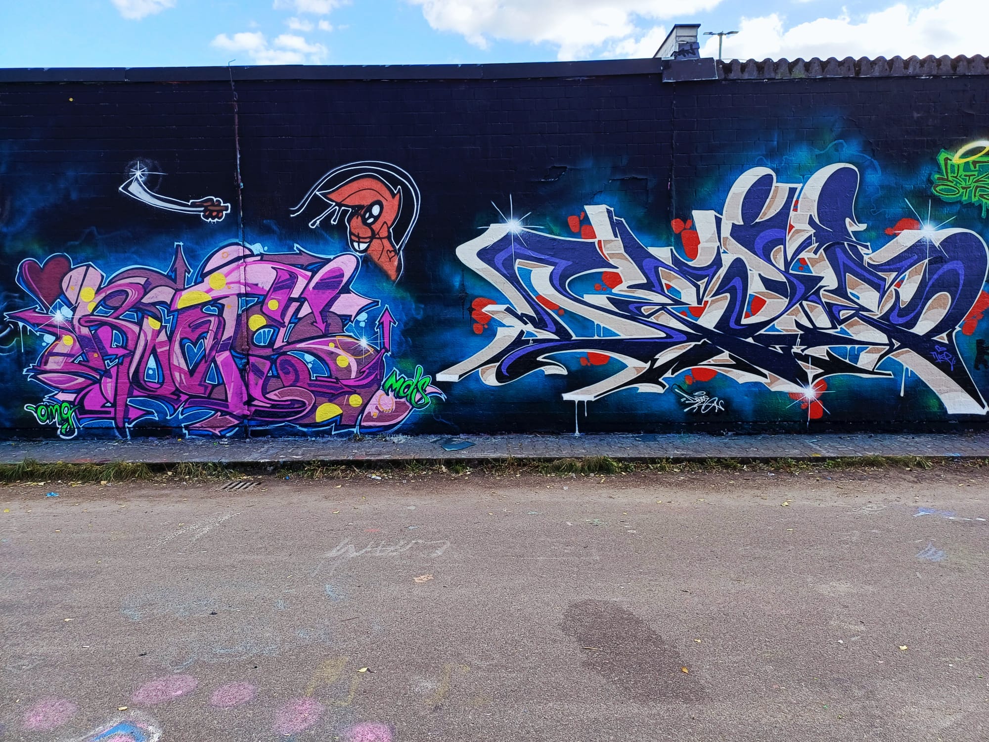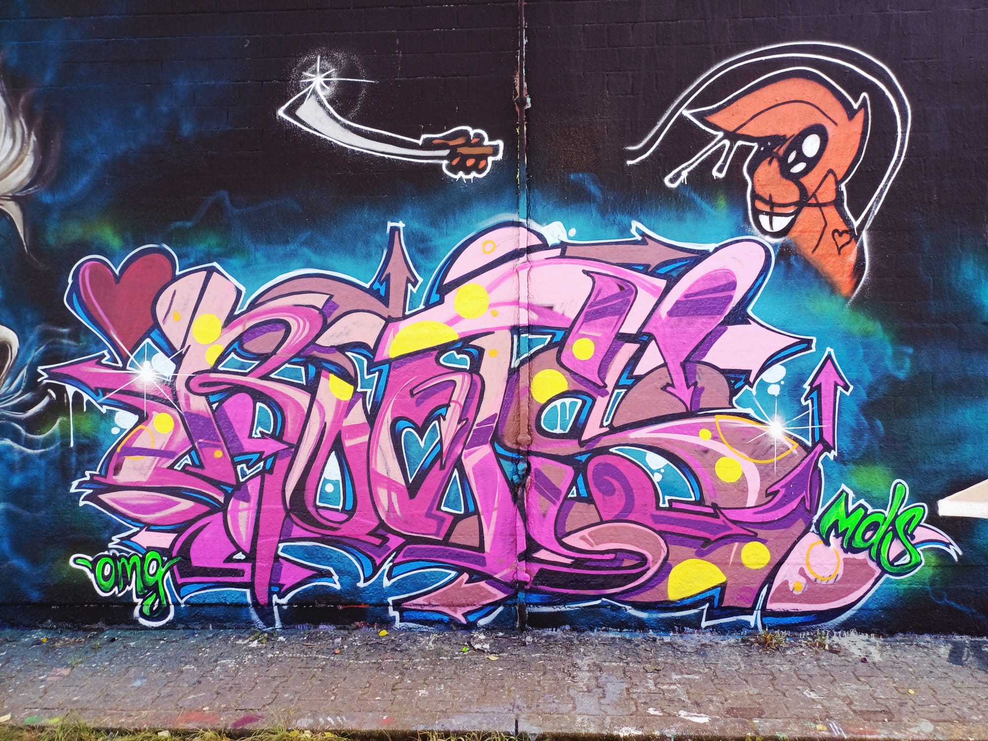 The graffiti on the far right are from HEMA and MONKEE, and the dragon on the far right was made by SIMBL